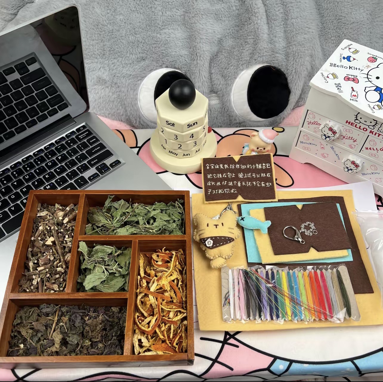 可爱的小猫小鱼香囊背包挂件手工DIY钥匙扣材料包送男生女生礼物