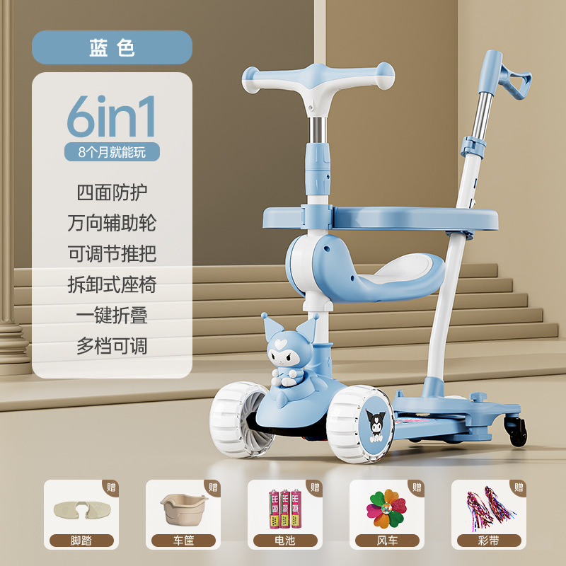 儿童滑板车1-3-6-8岁三合一可坐可骑男女宝宝滑滑车溜溜车防翻