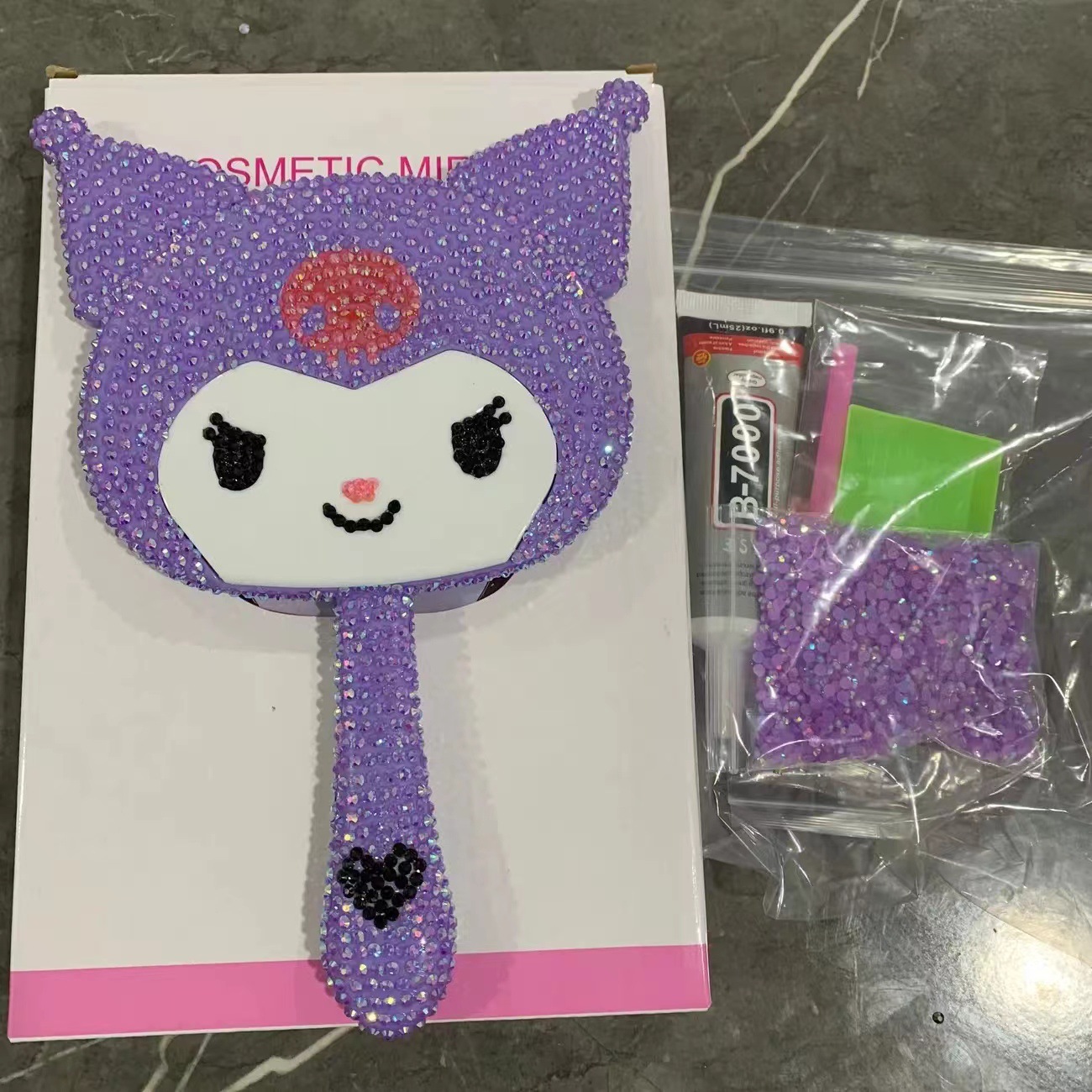 diy手工贴满钻手持库洛米化妆镜闪钻镜子材料包闺蜜朋友生日礼物