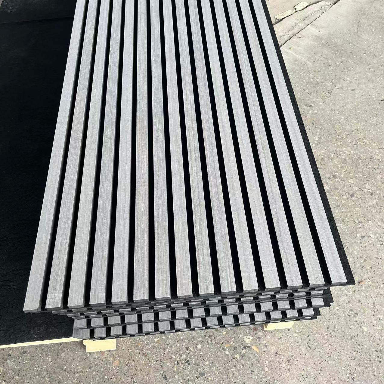 批发定制带背胶木条格栅吸音毡 影剧院装饰黑橡木条格栅隔音板