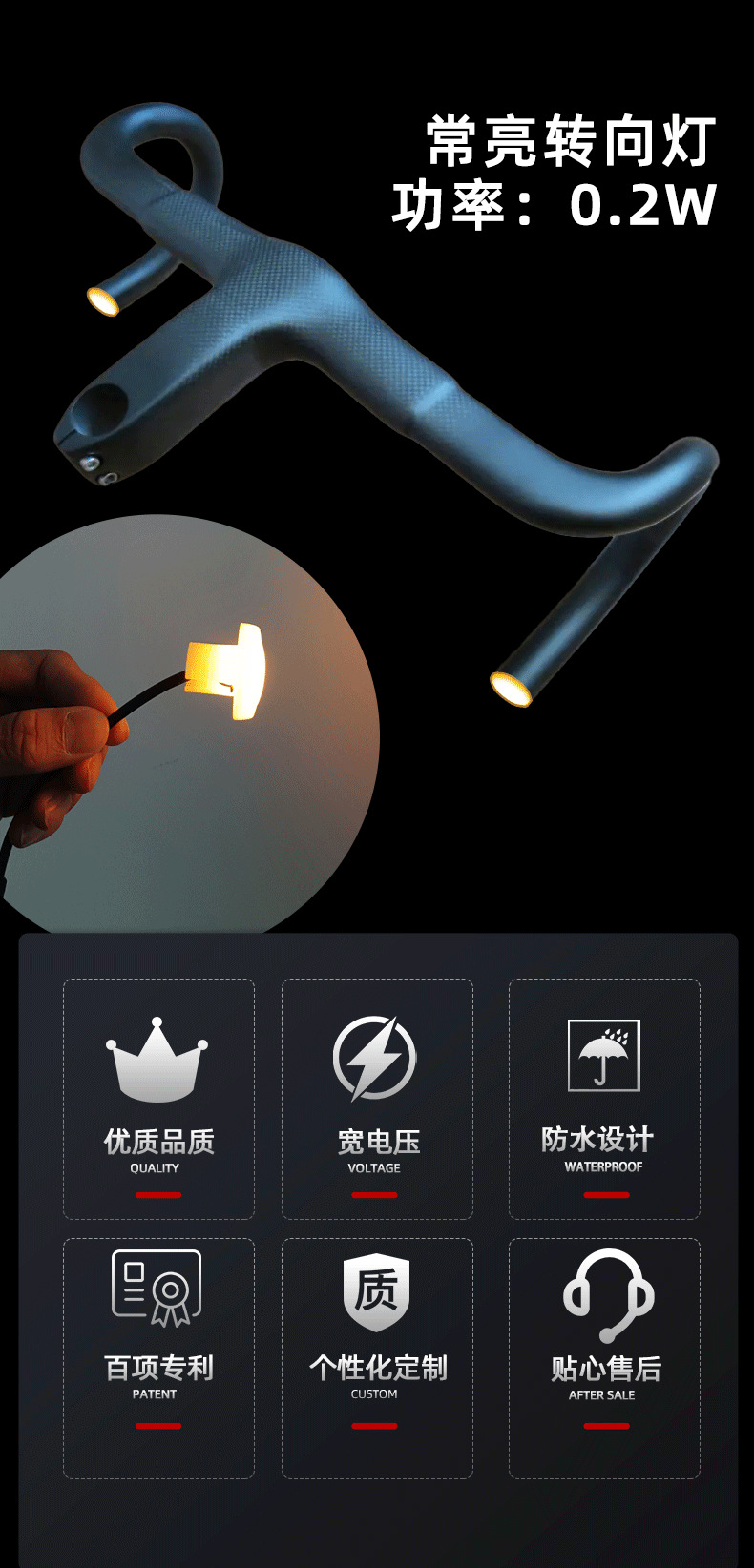 高亮LED电动自行车山地车指示转向灯代驾折叠滑板车T把夜骑警示灯