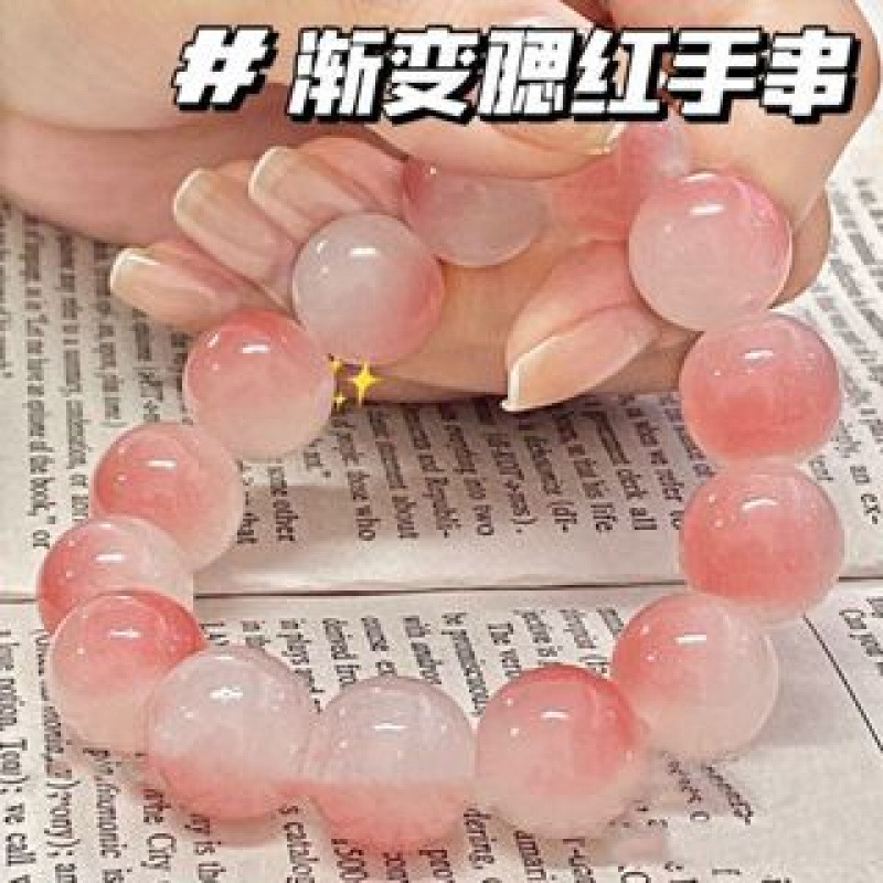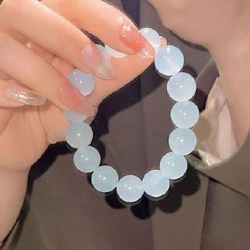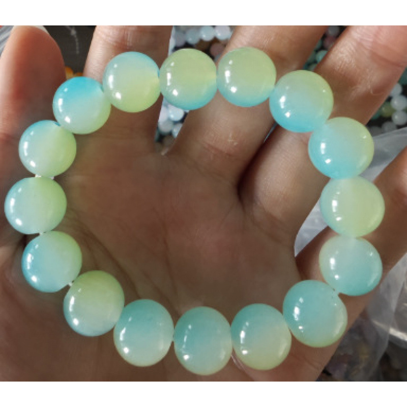 冰透玻璃白玉色手串绕指仿菩提果冻渐变盘珠手串批发琉璃水晶弹力