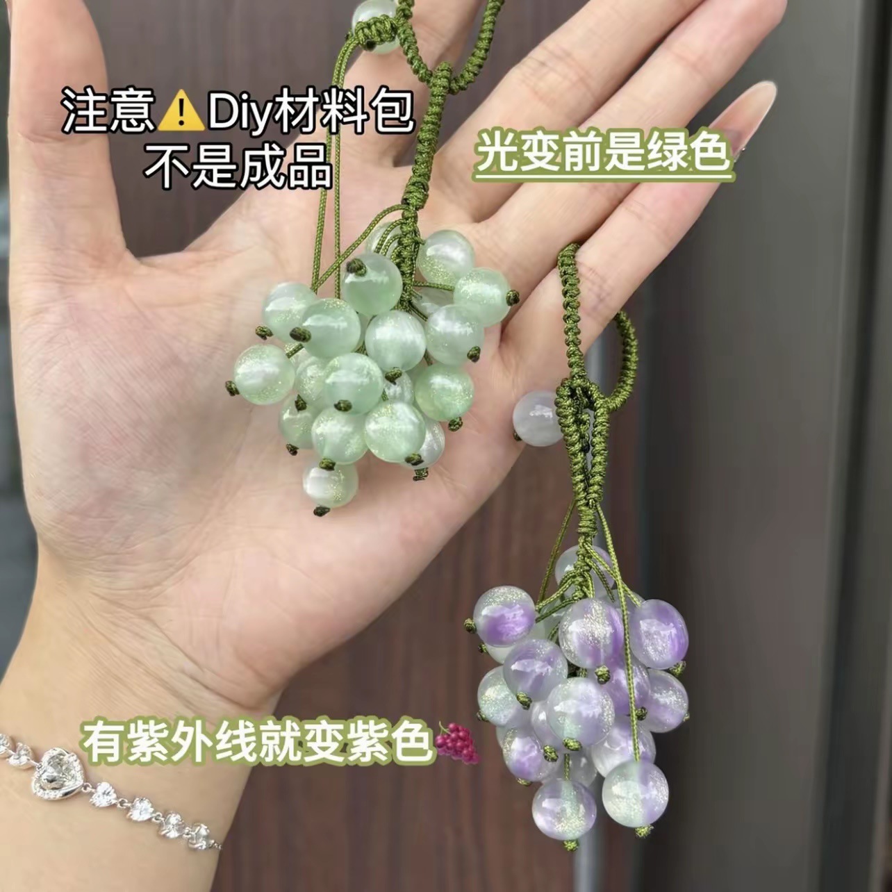 遇光变色葡萄挂件手工diy清新编织包包挂件钥匙扣送男女朋友闺蜜
