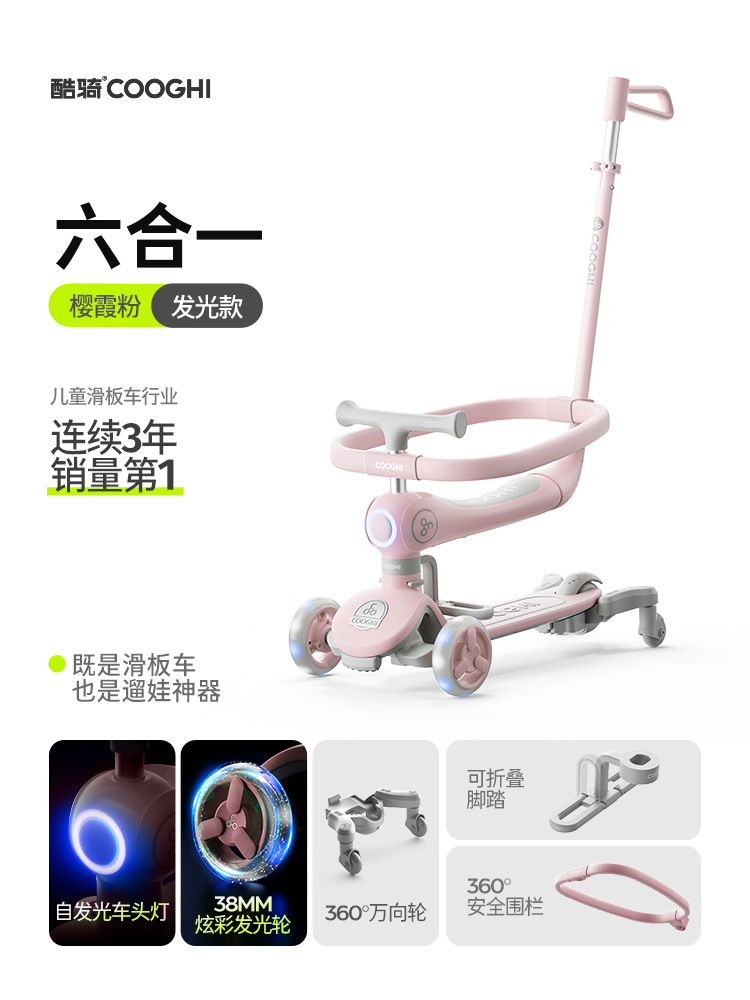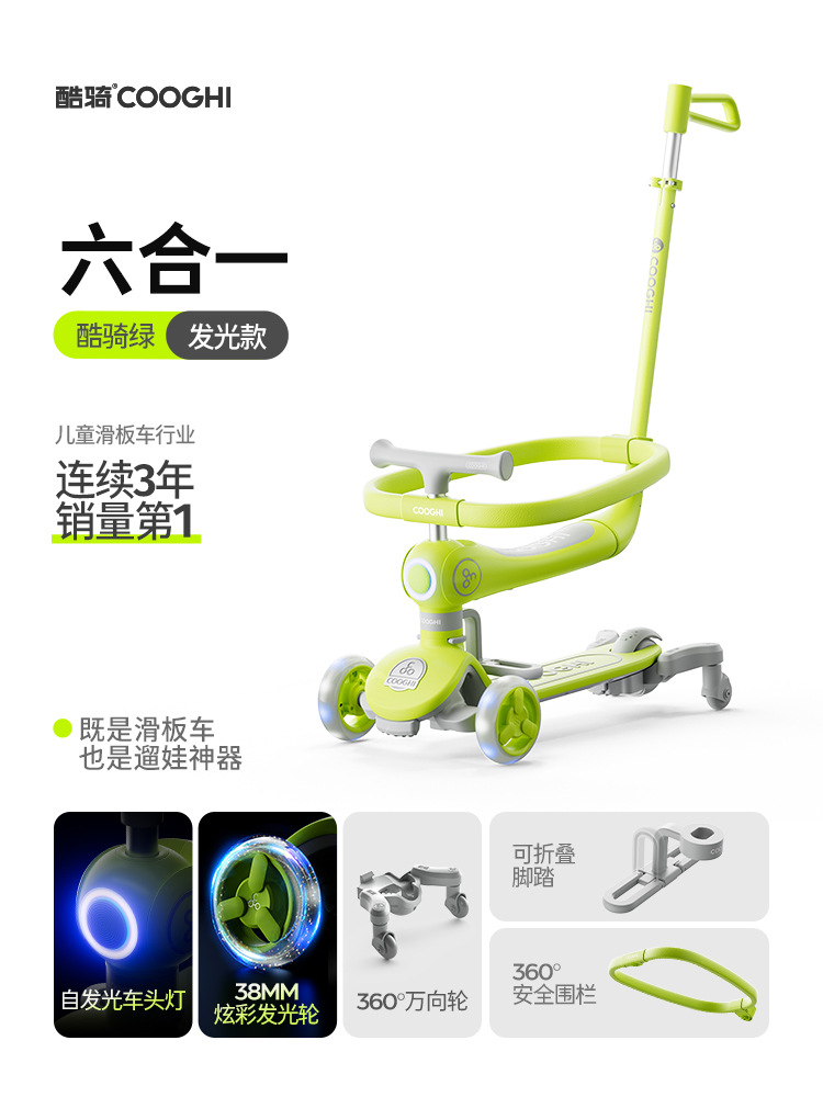 酷骑二合一儿童滑板车六合一平衡车1-3-6岁宝宝折叠学步车周岁礼