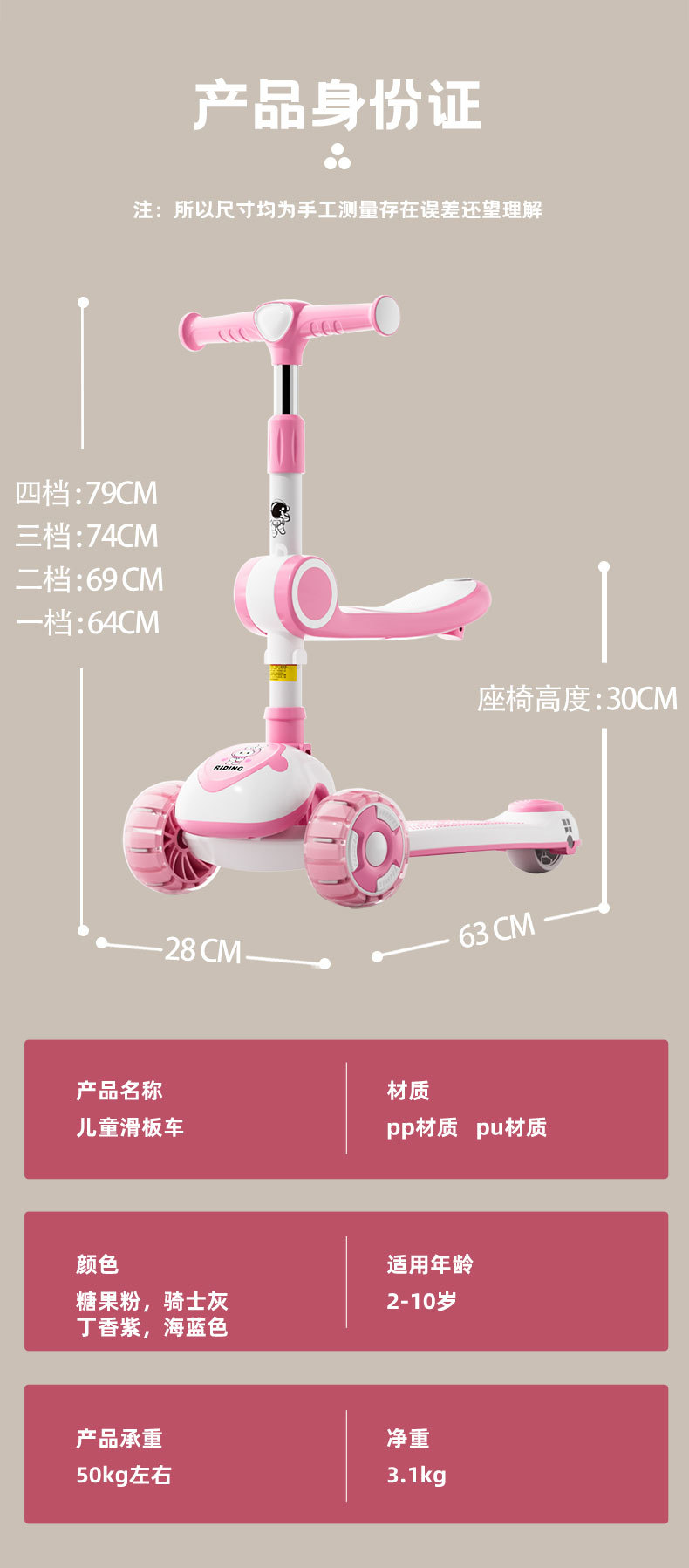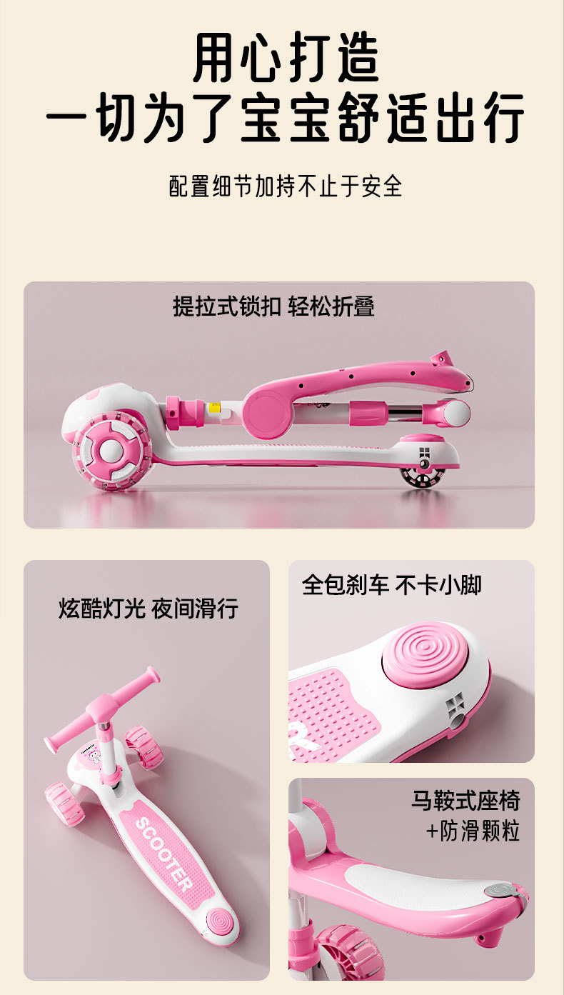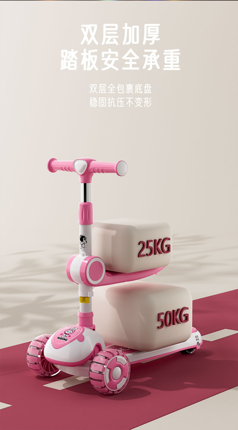 滑板车儿童1一3-6一12岁三合一宝宝男女孩踏板可坐可骑儿童滑板车