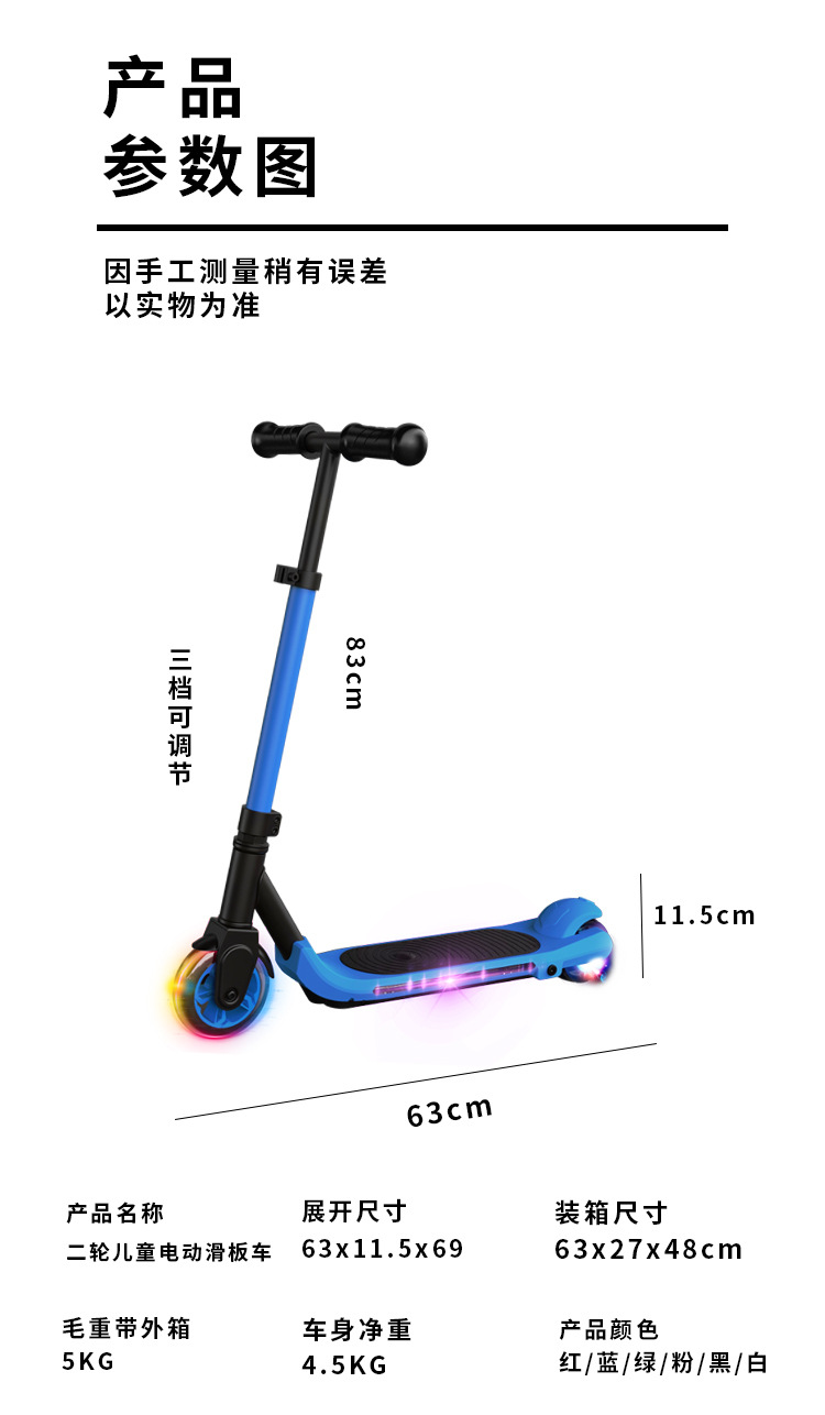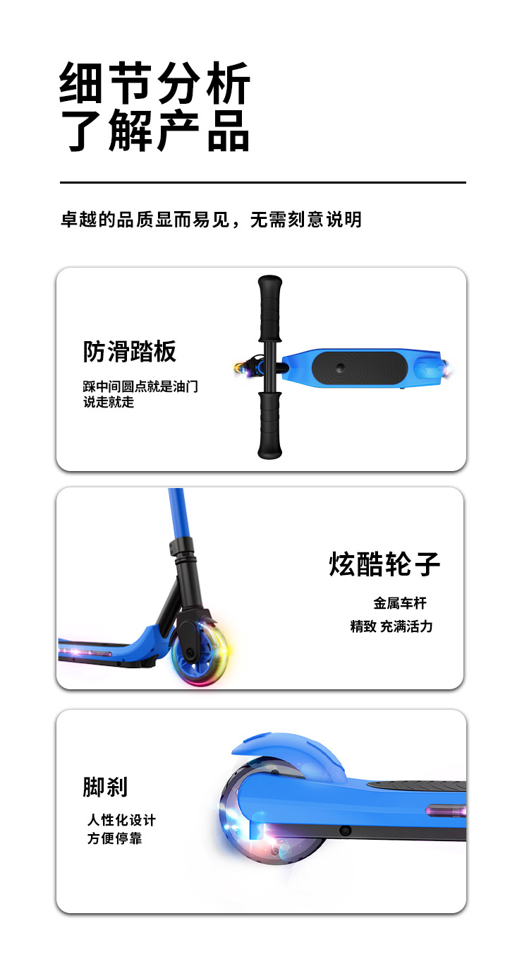跨境助力儿童电动滑板车大中童校园scooter两轮滑板充电款玩具车