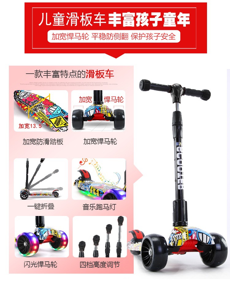 滑板车儿童1-3-6-12岁8小孩踏板车男女宝宝闪光轮单脚滑滑溜溜车