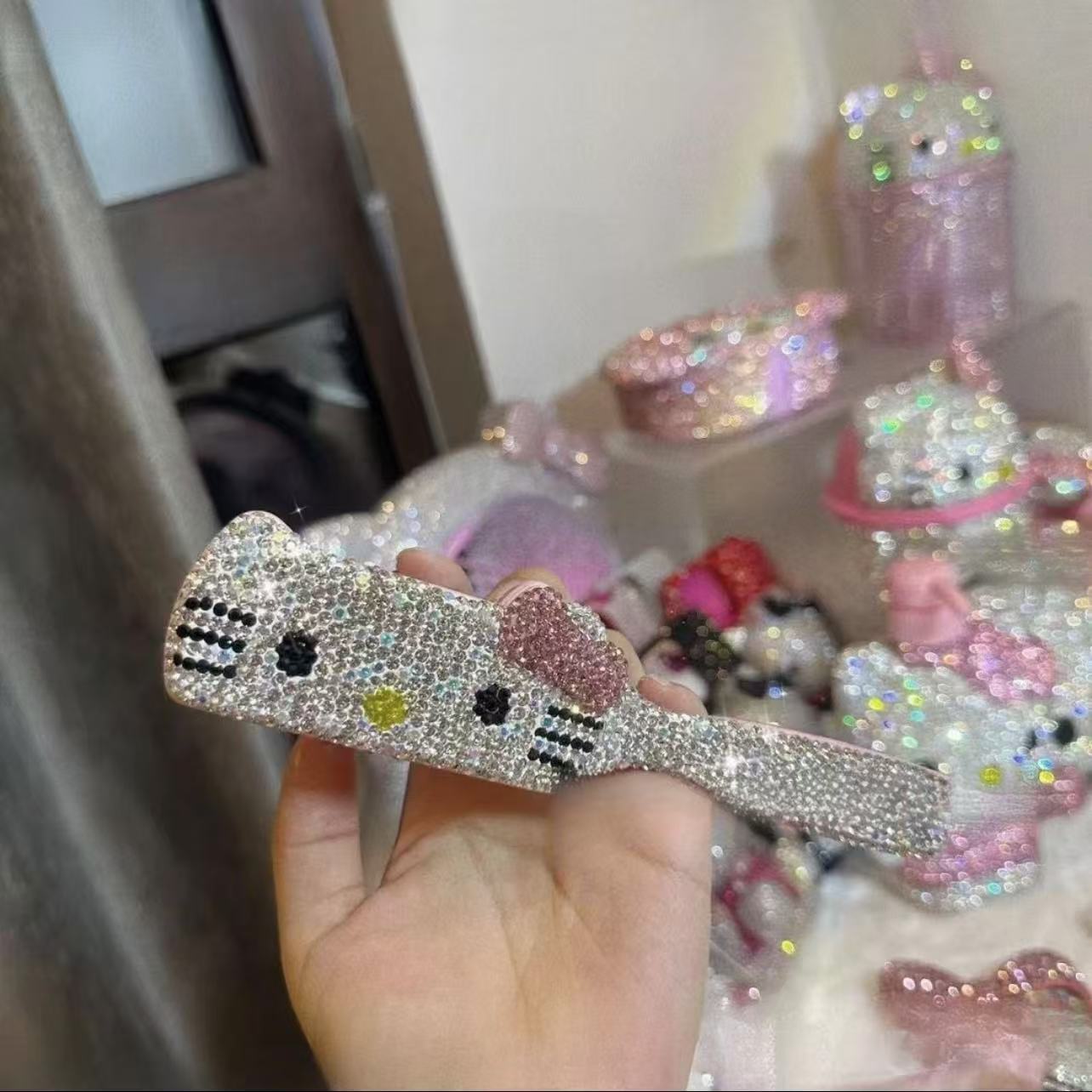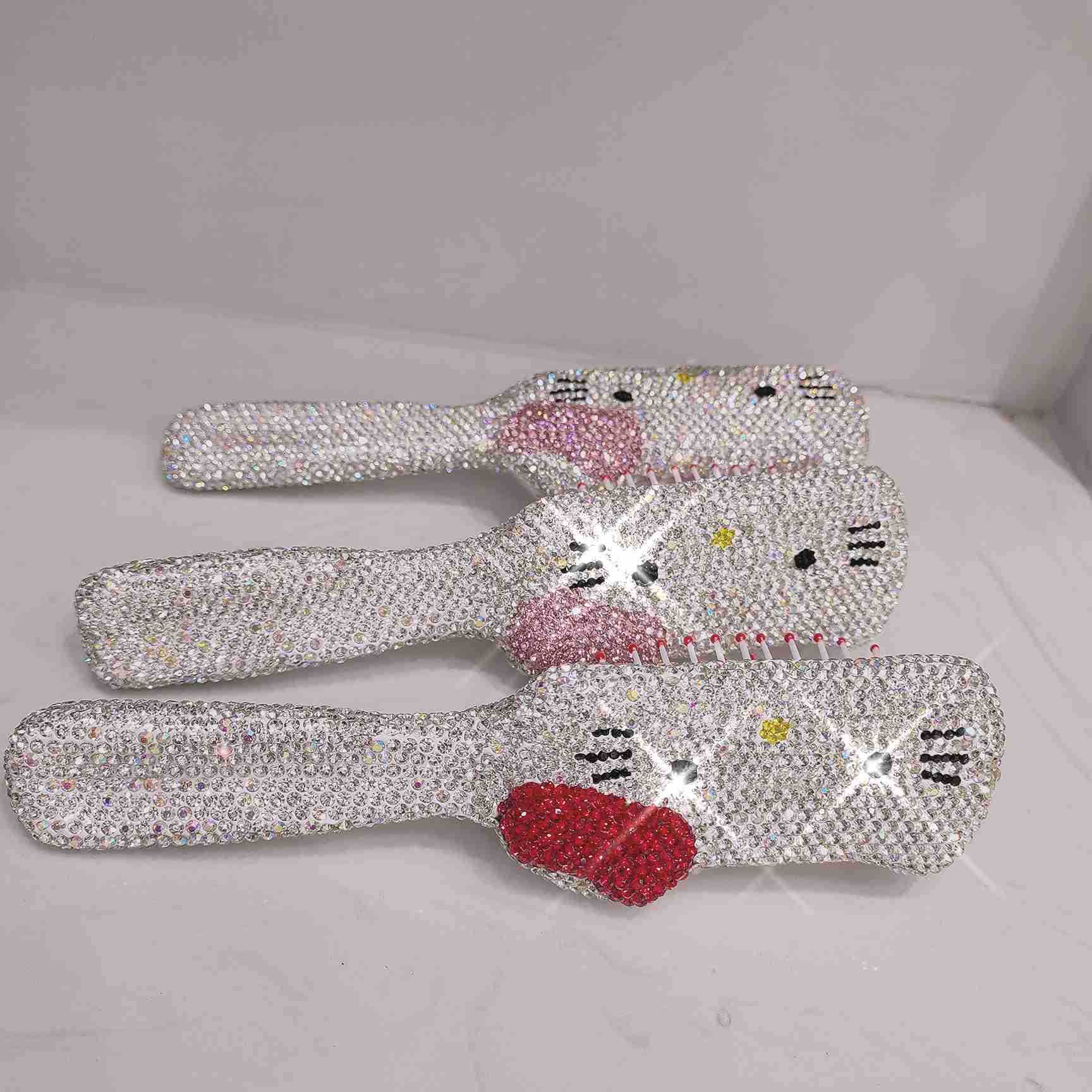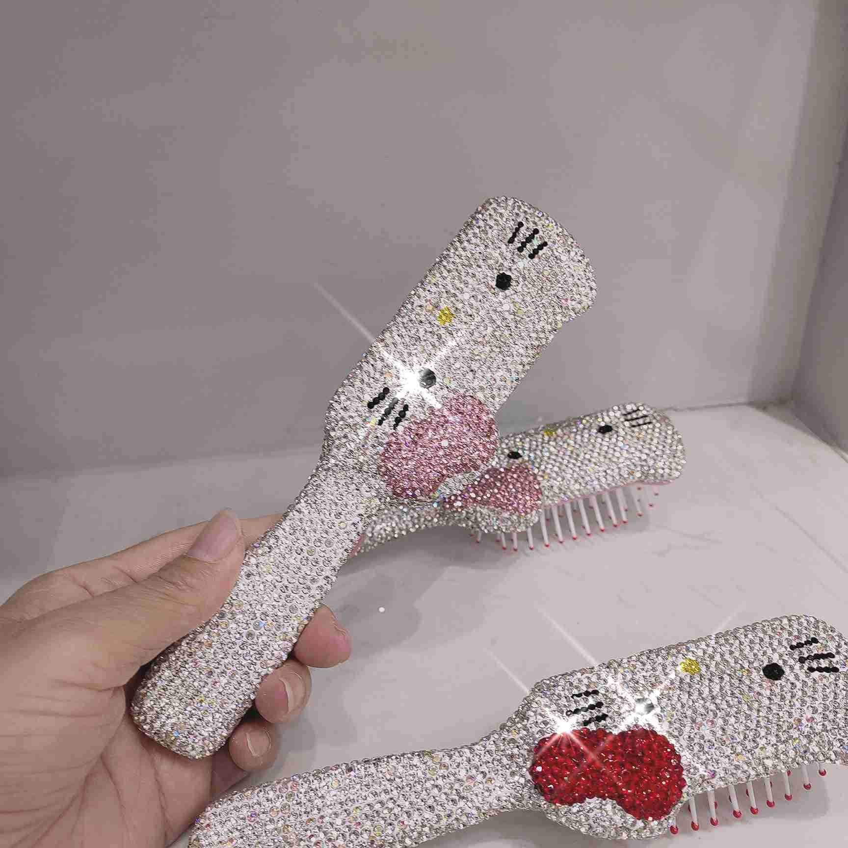 hellokity卡通KT猫公主便携梳子可爱气囊按摩镶钻diy化妆梳送女友