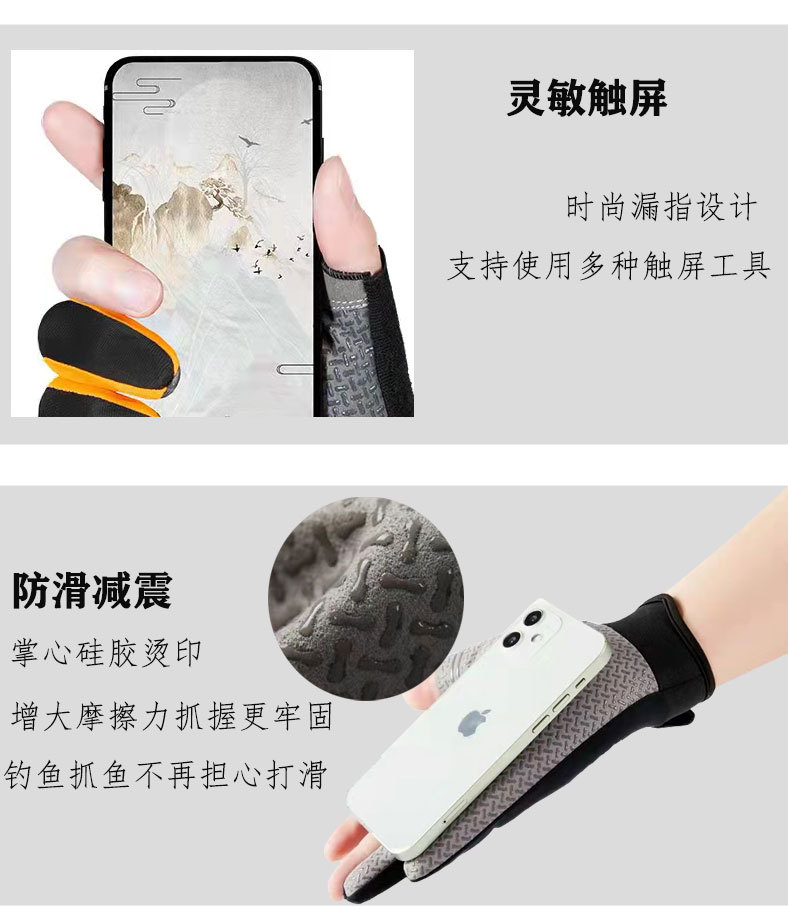 夏季骑行薄手套冰丝防晒骑行防紫外线钓鱼漏三指外卖快递防滑触屏