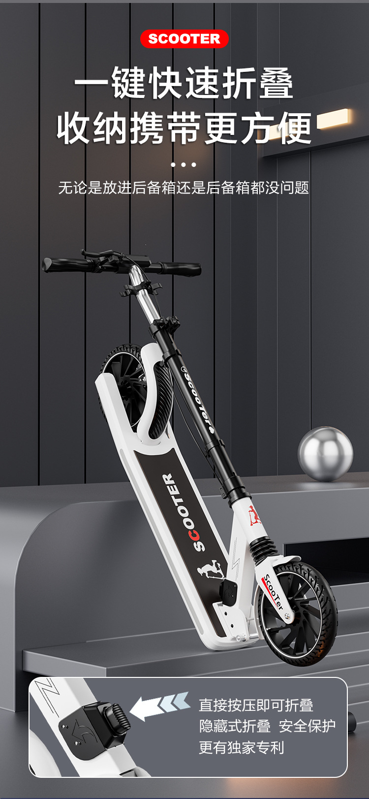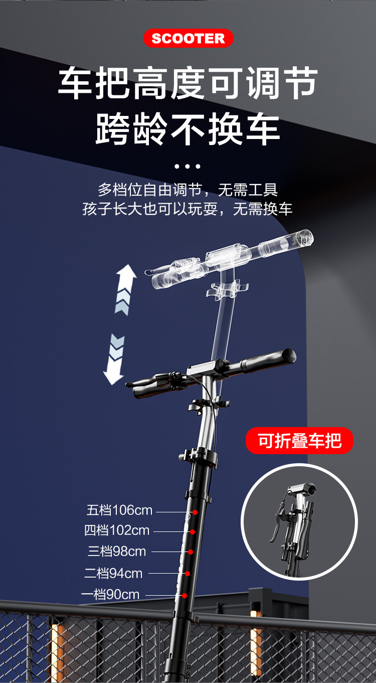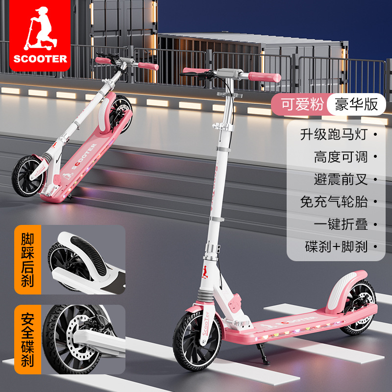 儿童青少年成人滑板车5-12岁两轮二轮可折叠男女孩校园代步车跨境