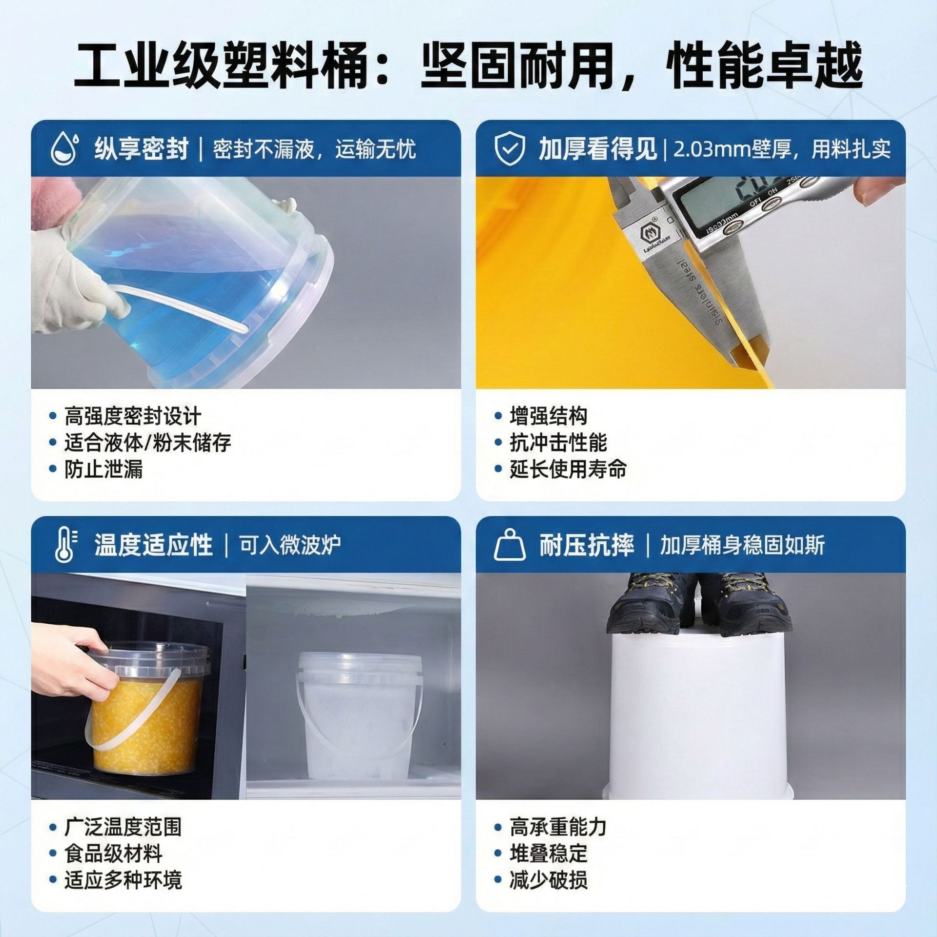 密封pp桶刻度20公斤白色塑料桶食品级透明桶50l20升冰淇淋酸奶桶