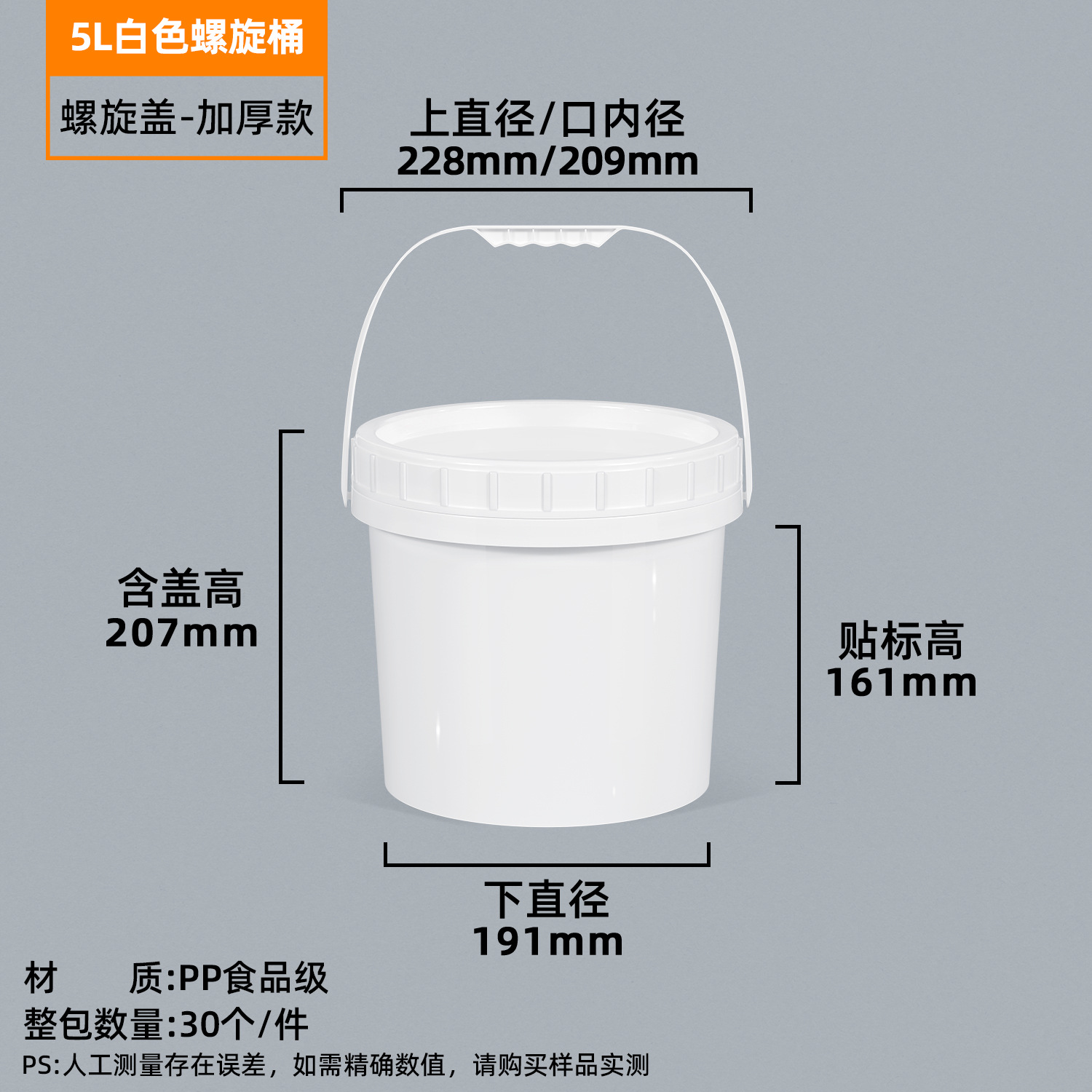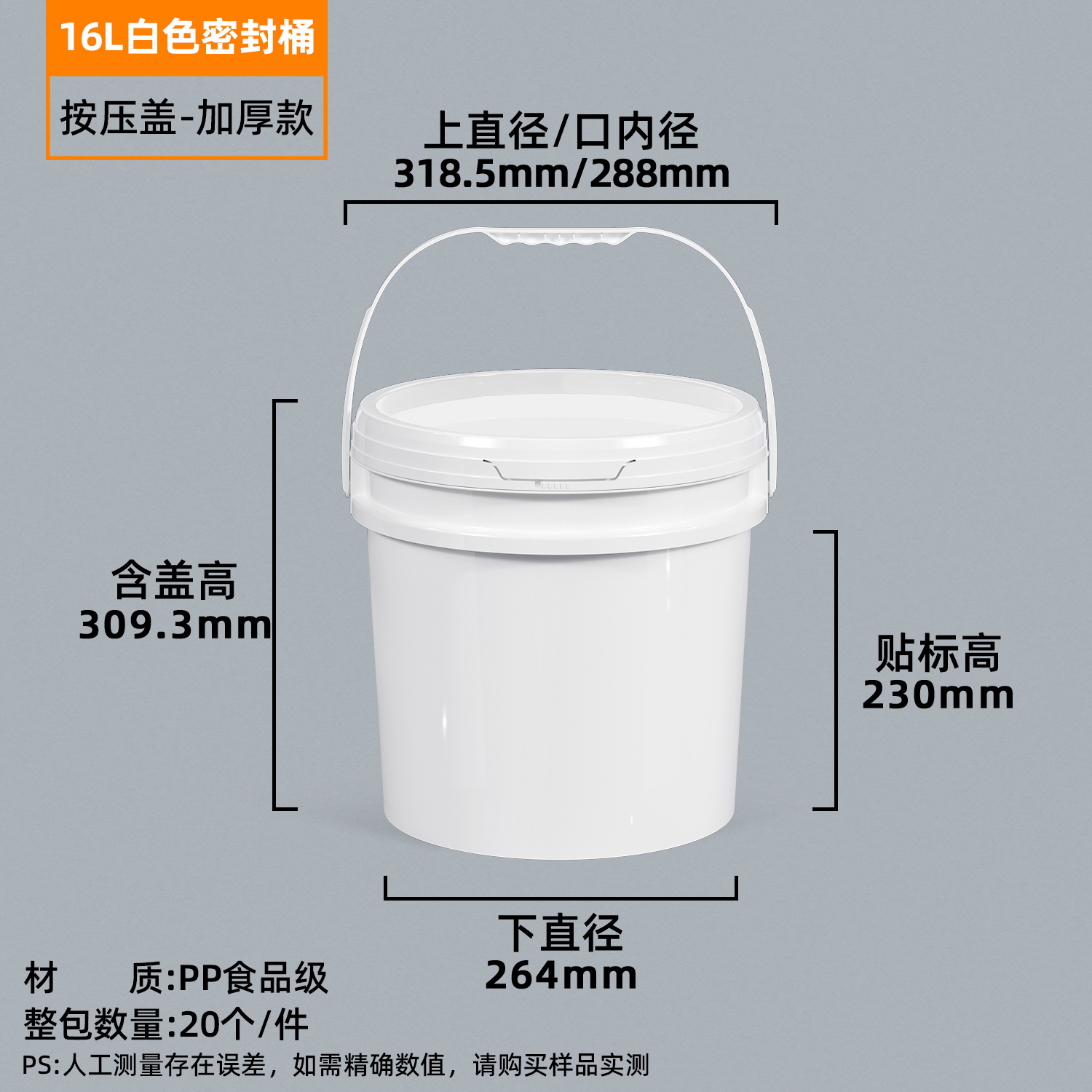 pp食品级加厚塑料包装桶圆桶带盖白色化工油漆桶5升20l密封桶大桶