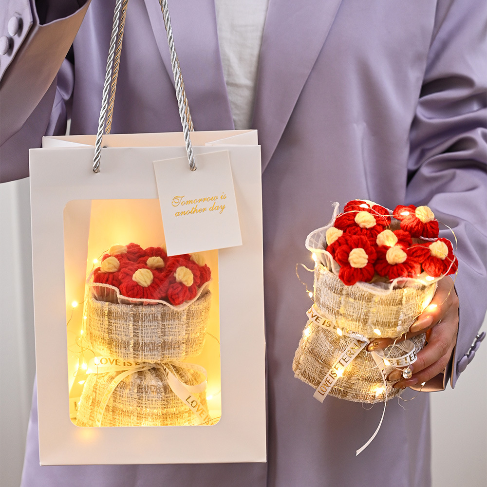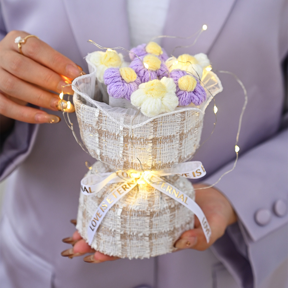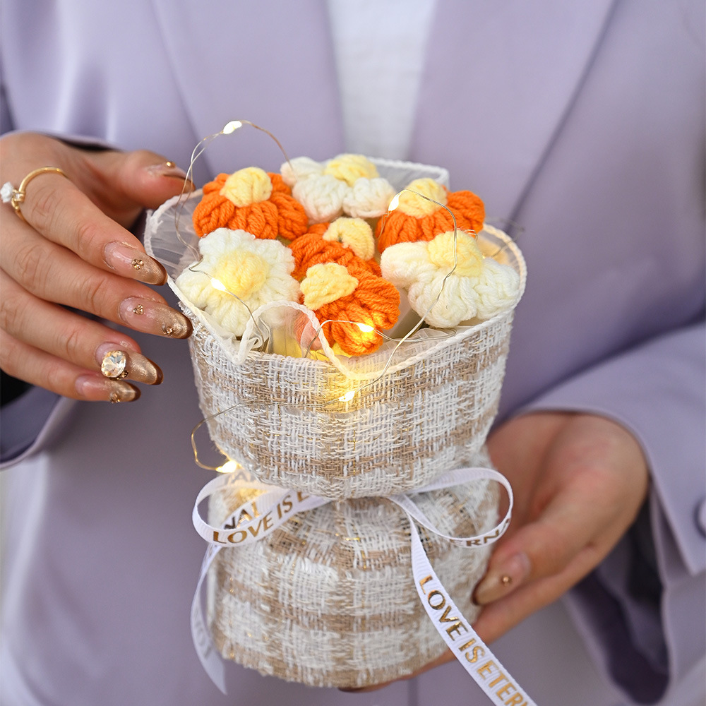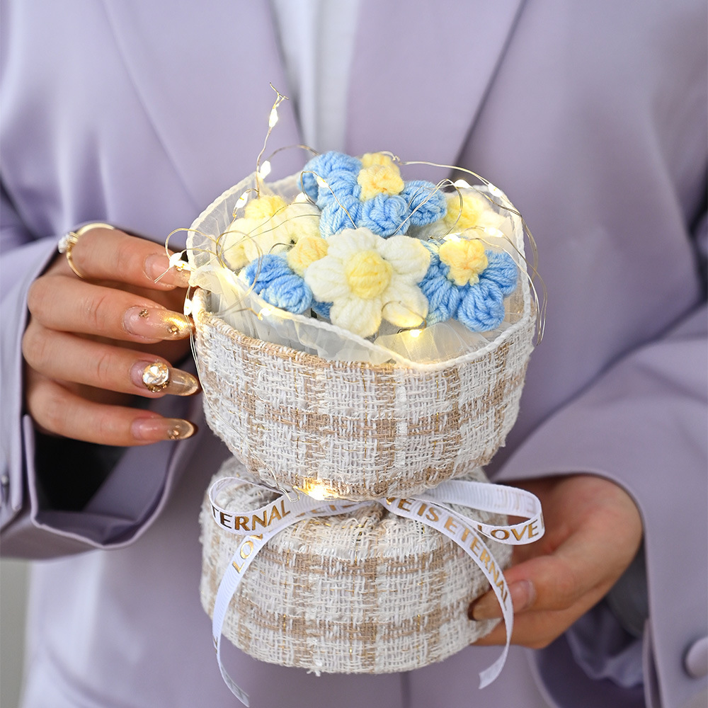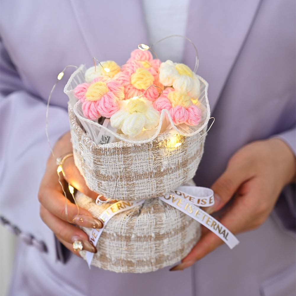 情人节圣诞节小香风针织泡芙花手工成品毛线小花束礼物批发跨境伴
