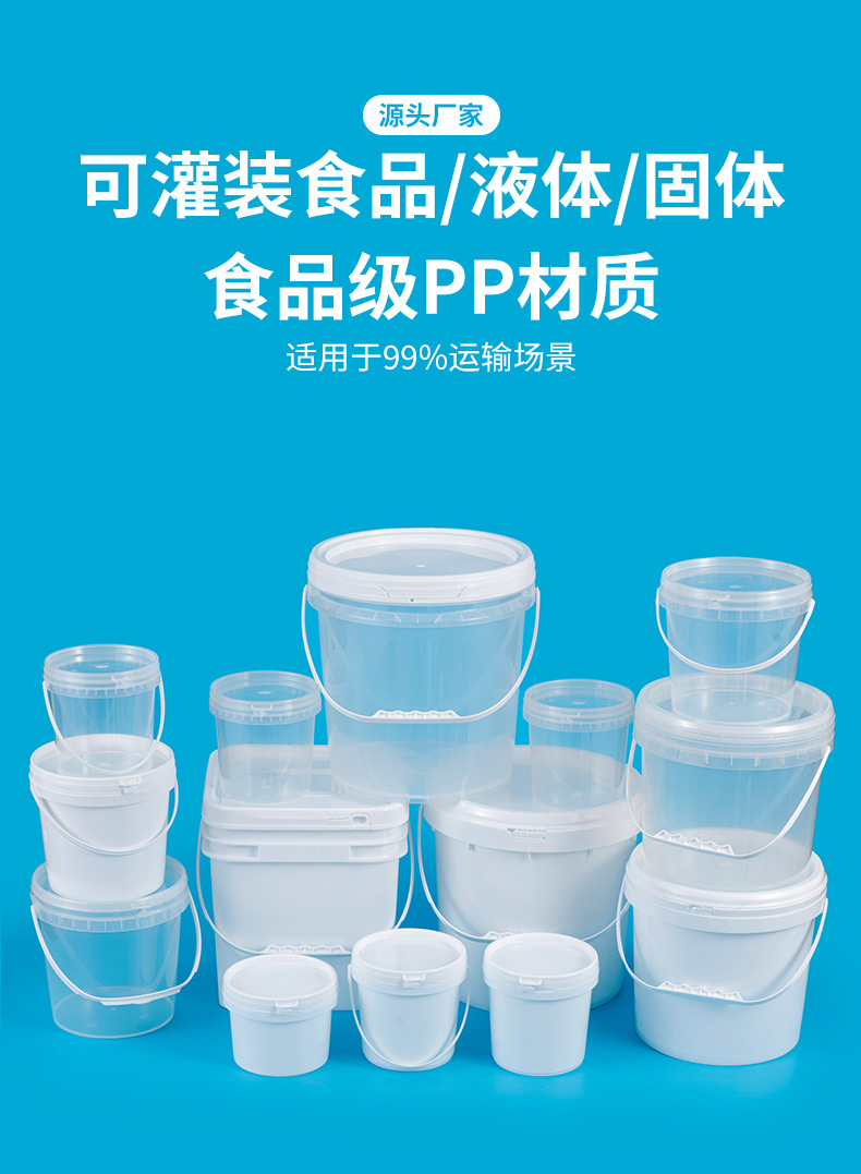 食品级塑料包装桶圆桶方形带盖子化工油漆桶5升20l透明大桶密封桶
