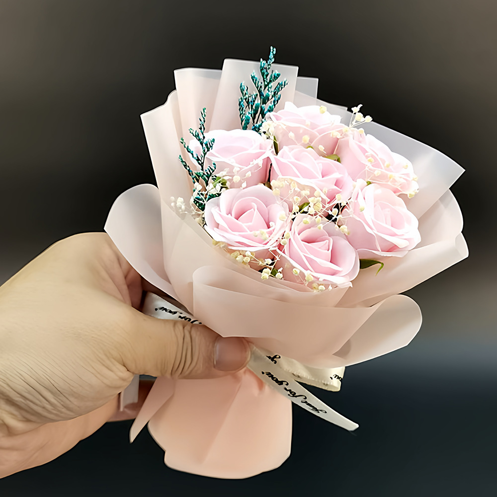 情人节7朵香皂花迷你满天星干花小花束玫瑰花桌面摆件伴手礼批发