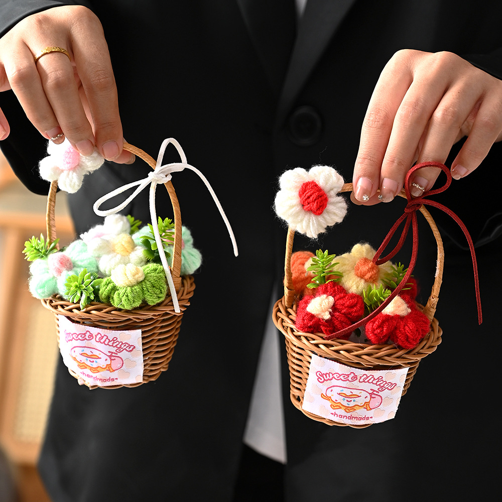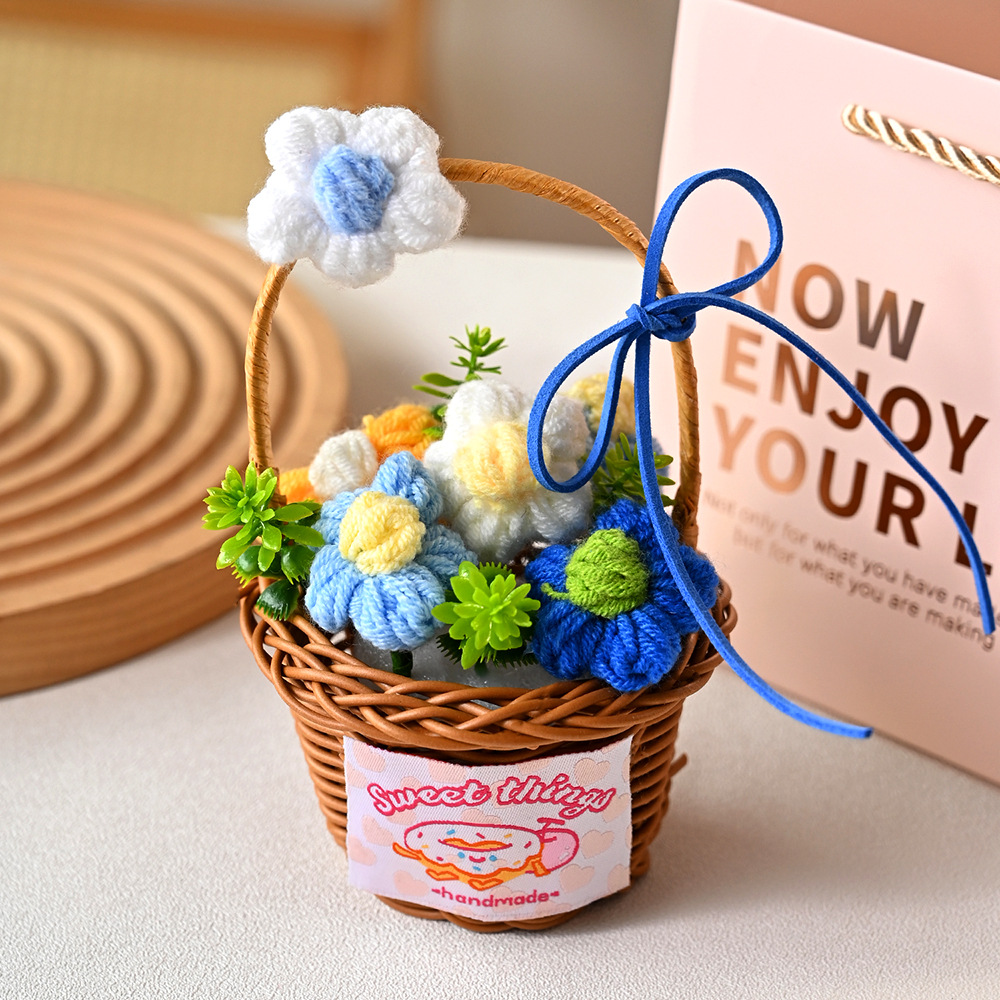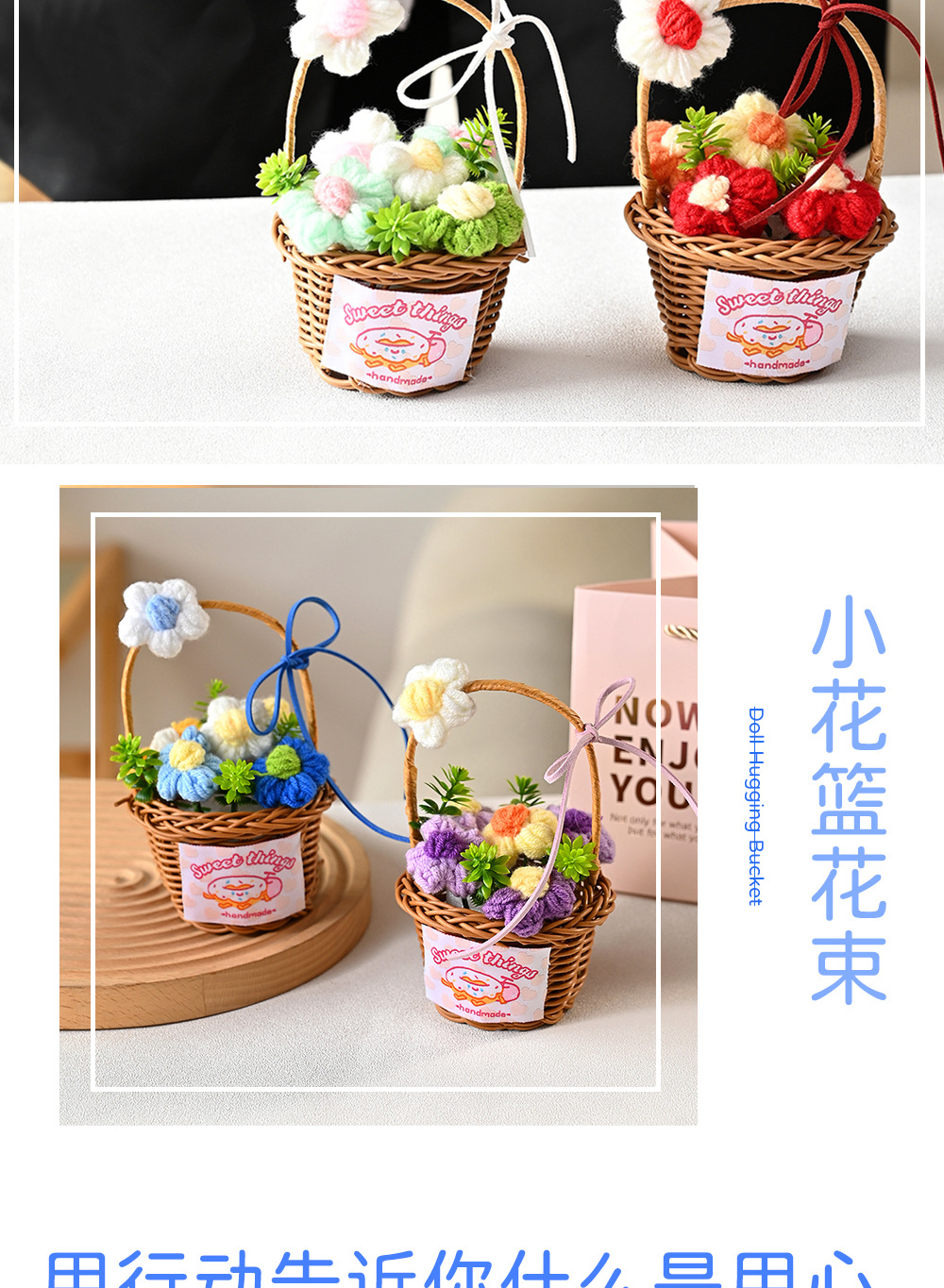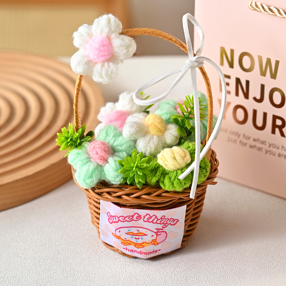 仿真花假花新款针织泡芙花束小雏菊手提篮配饰跨境批发礼品伴手礼
