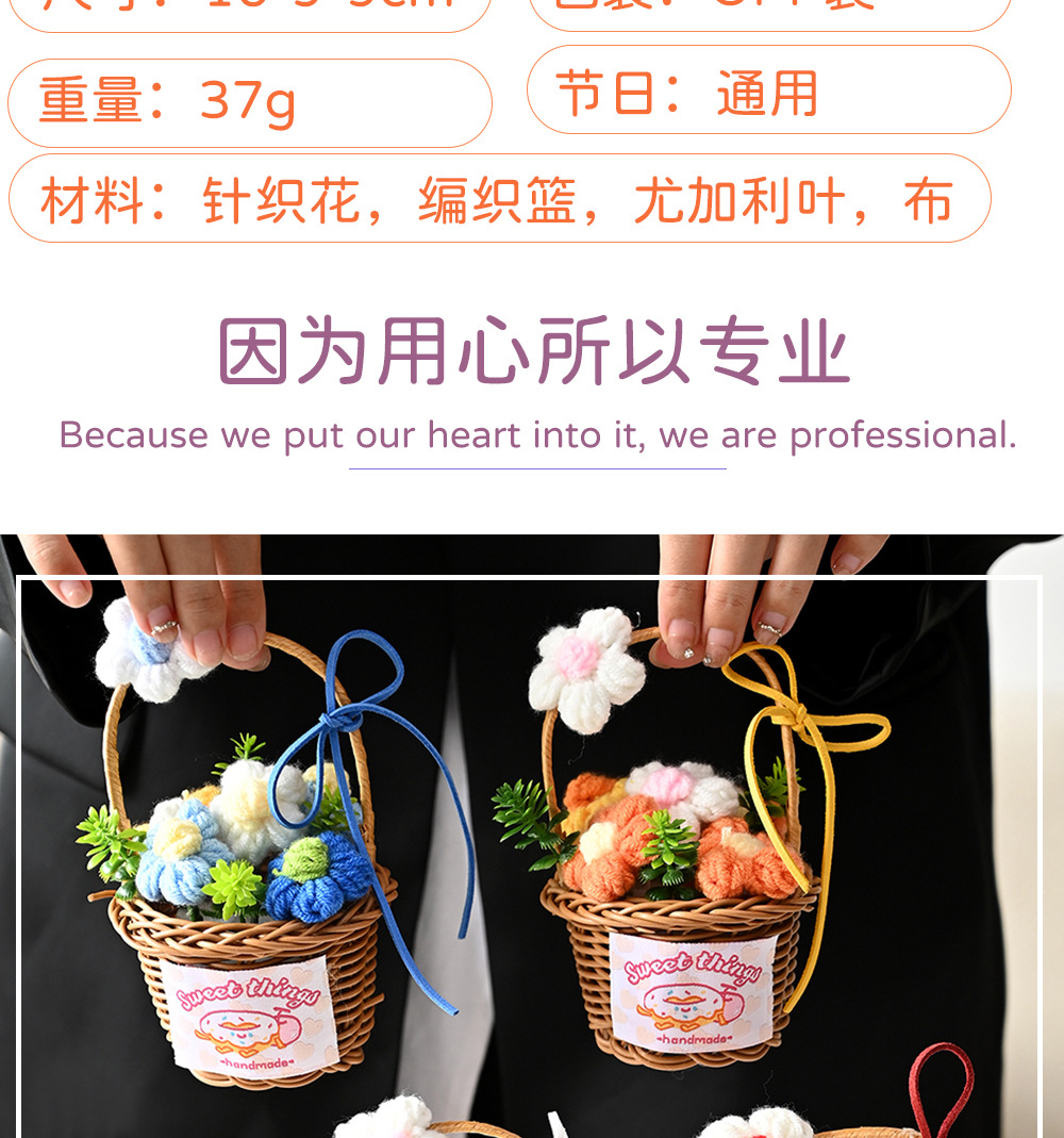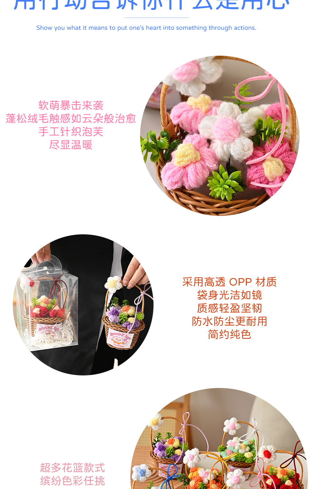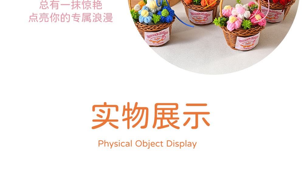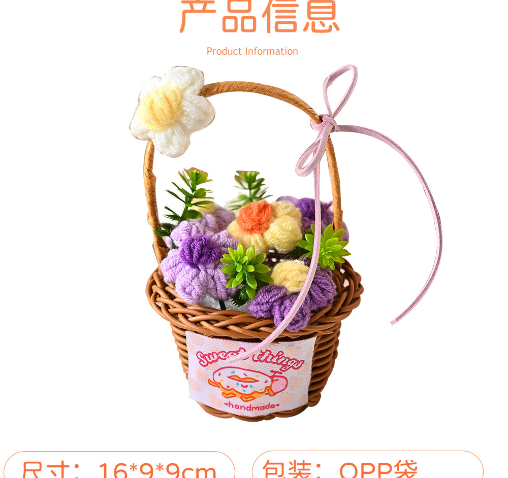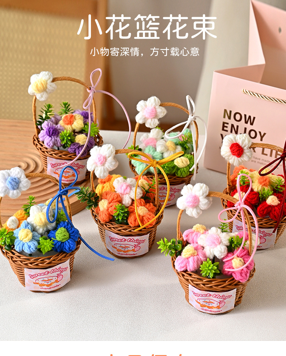 仿真花假花新款针织泡芙花束小雏菊手提篮配饰跨境批发礼品伴手礼