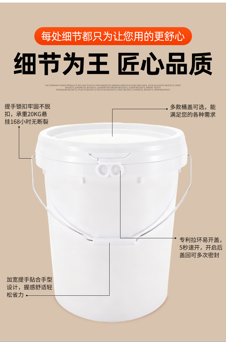 20L食品级加厚塑料桶带盖子5加仑油漆密封塑料大桶乳胶漆包装桶圆