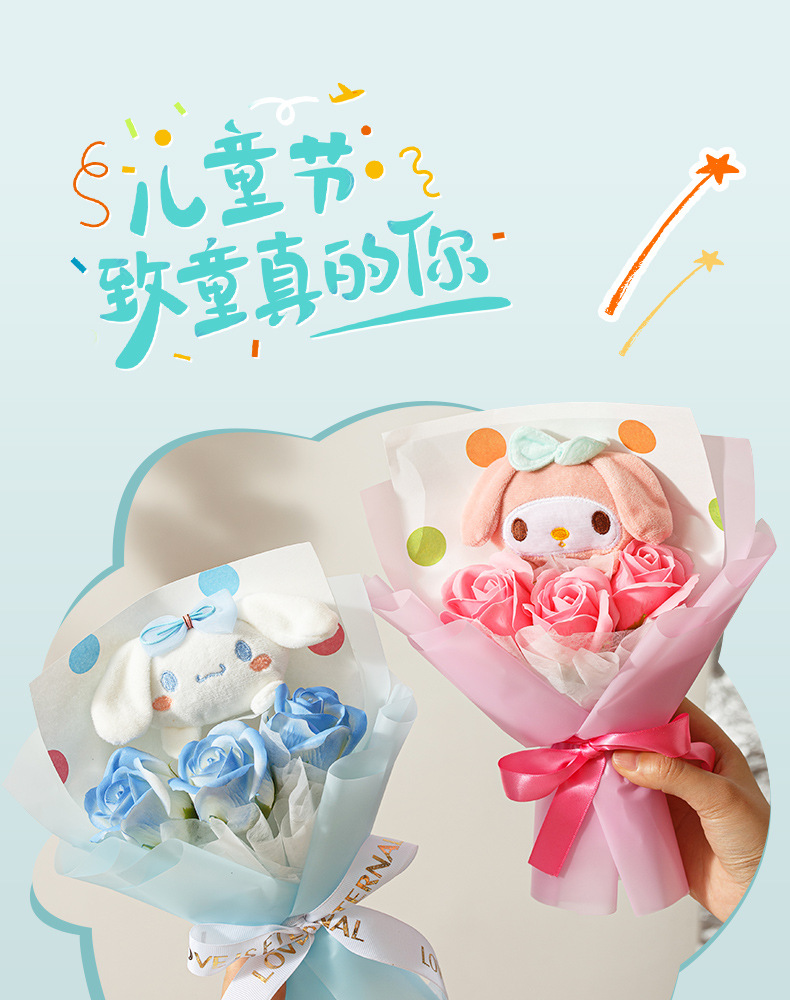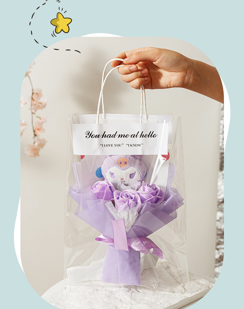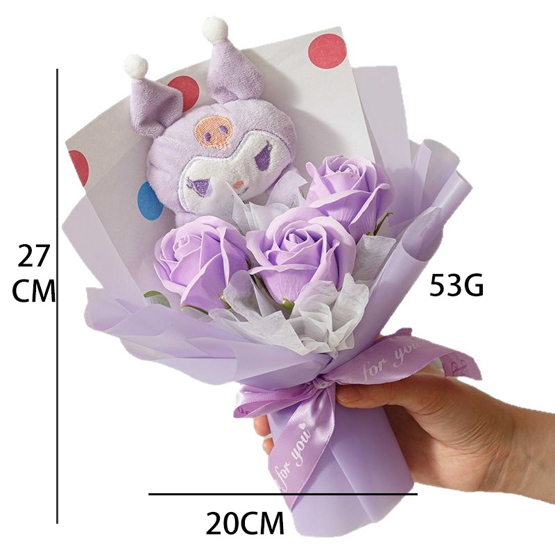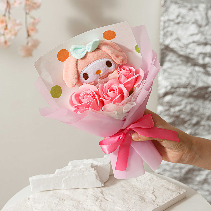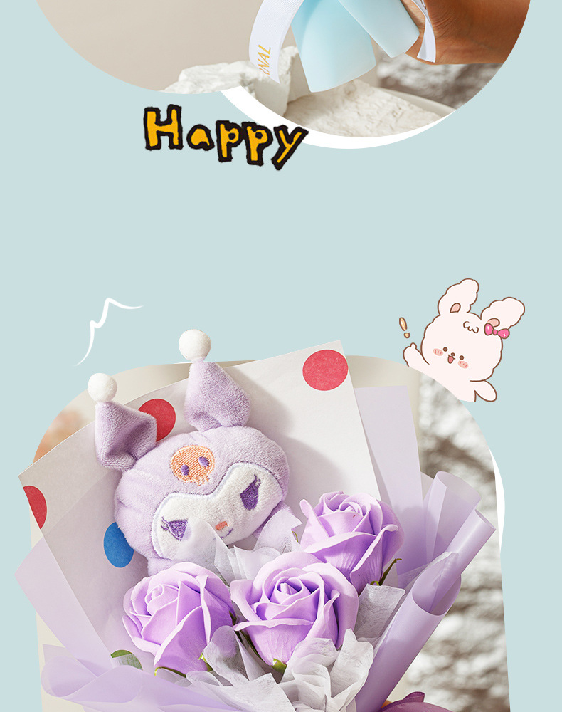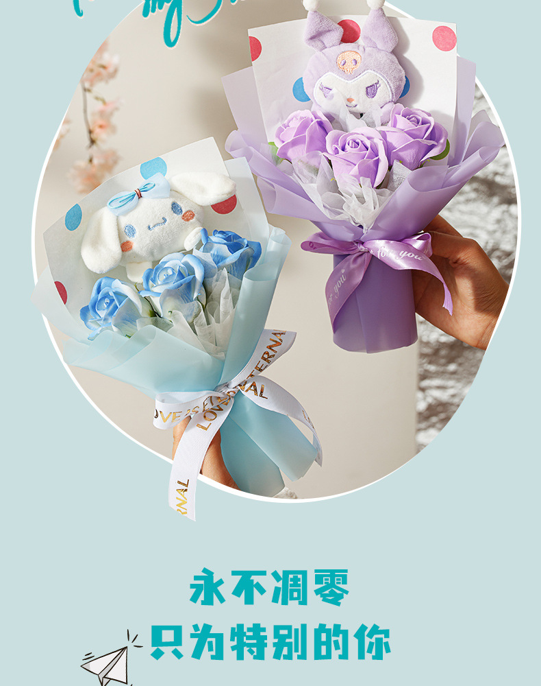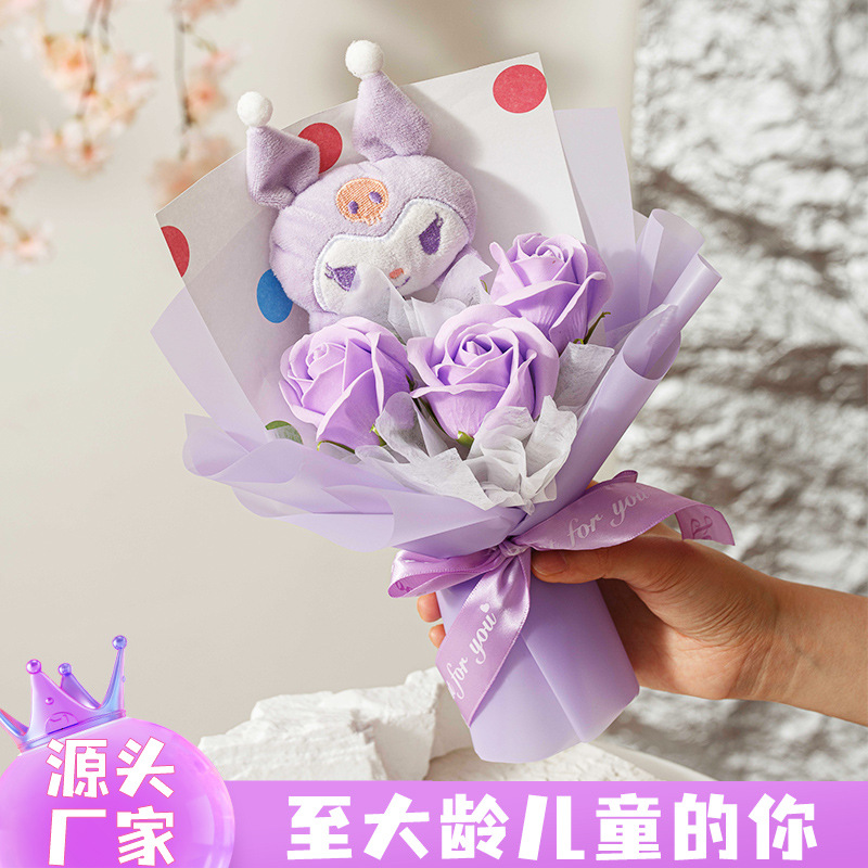 伴手礼假花三丽鸥库洛米玫瑰手捧香皂花束娃娃玩偶跨境批发仿真花