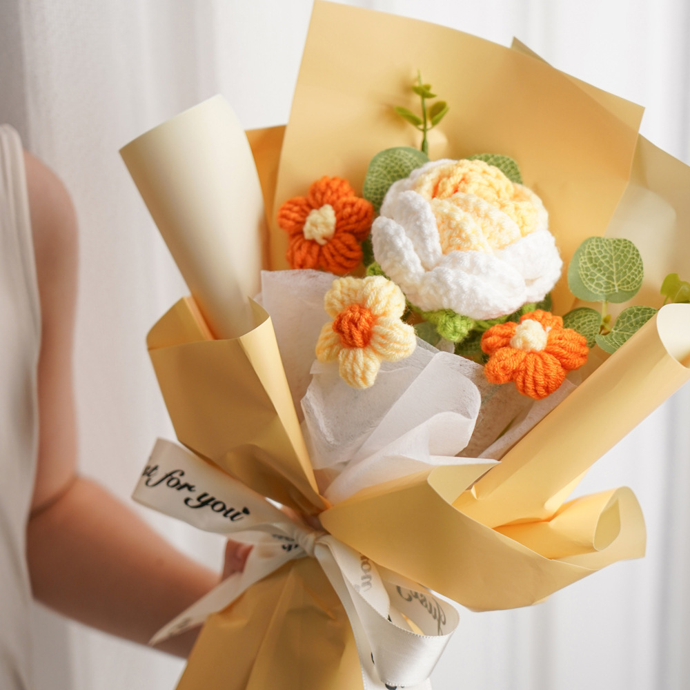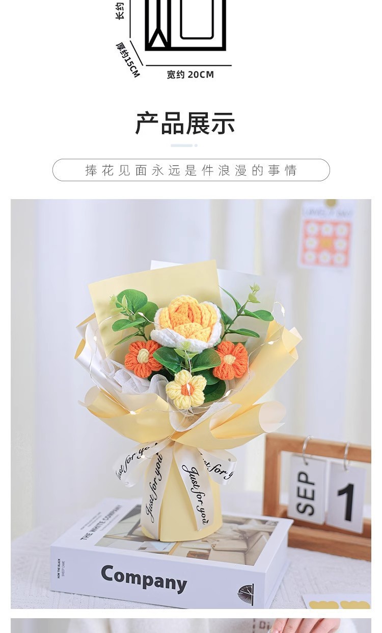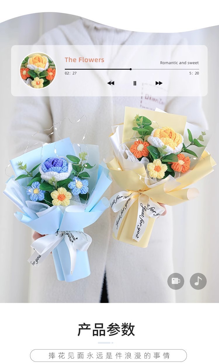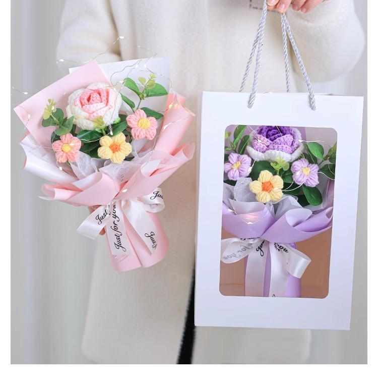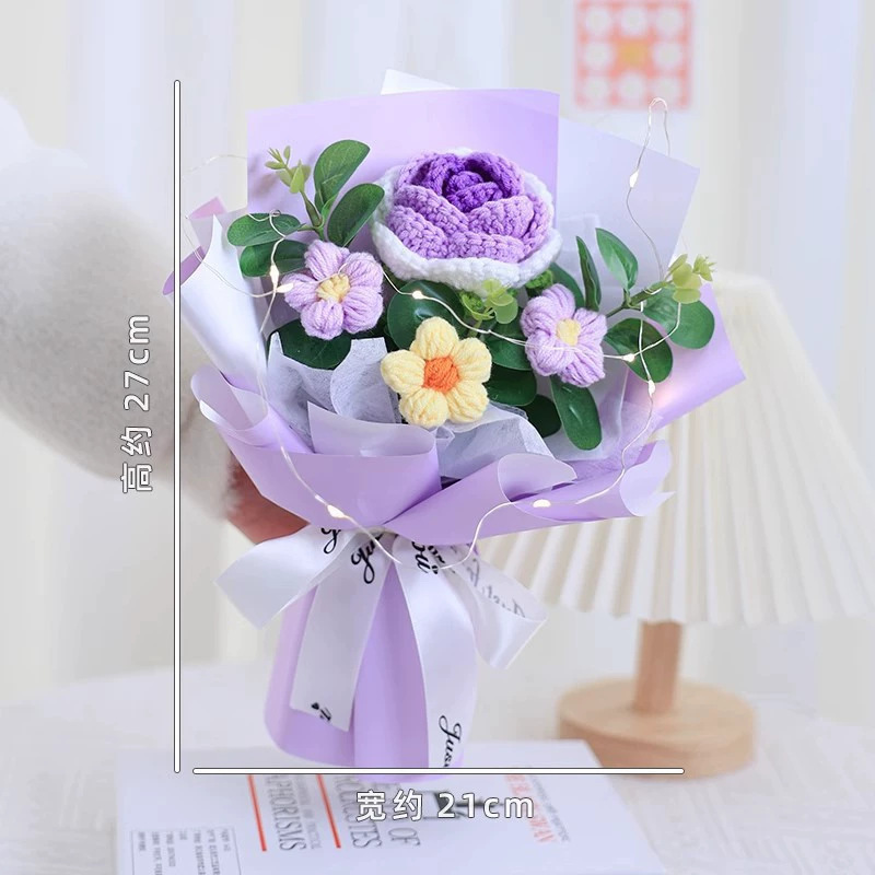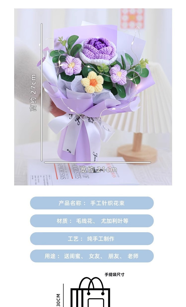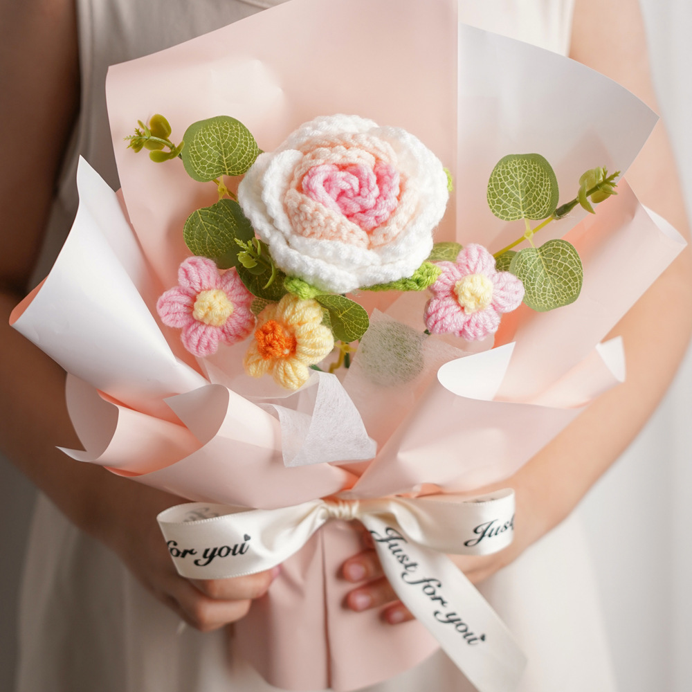 情人节礼物成品针织泡芙玫瑰毛线花束手捧花送女生伴手礼礼品批发