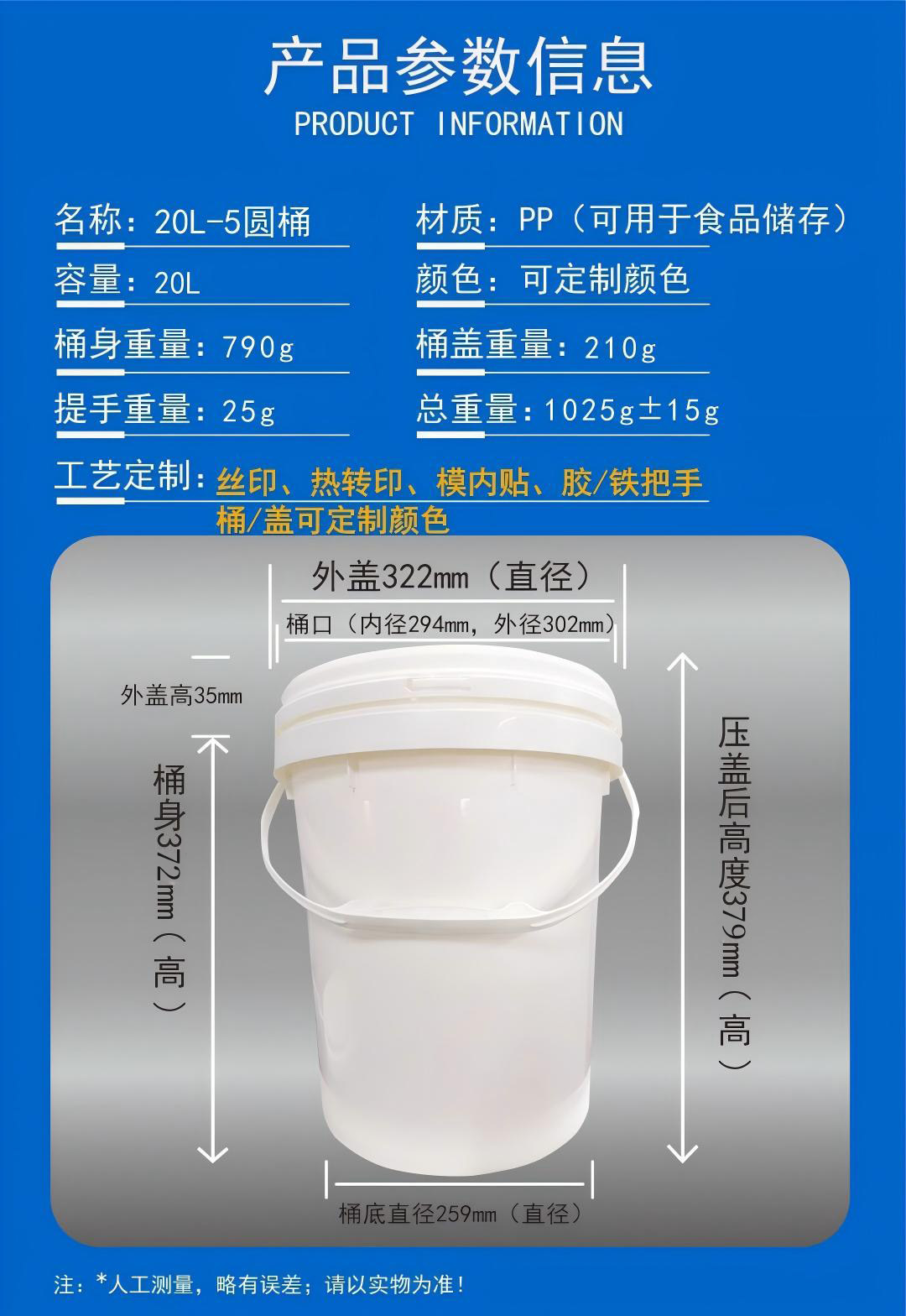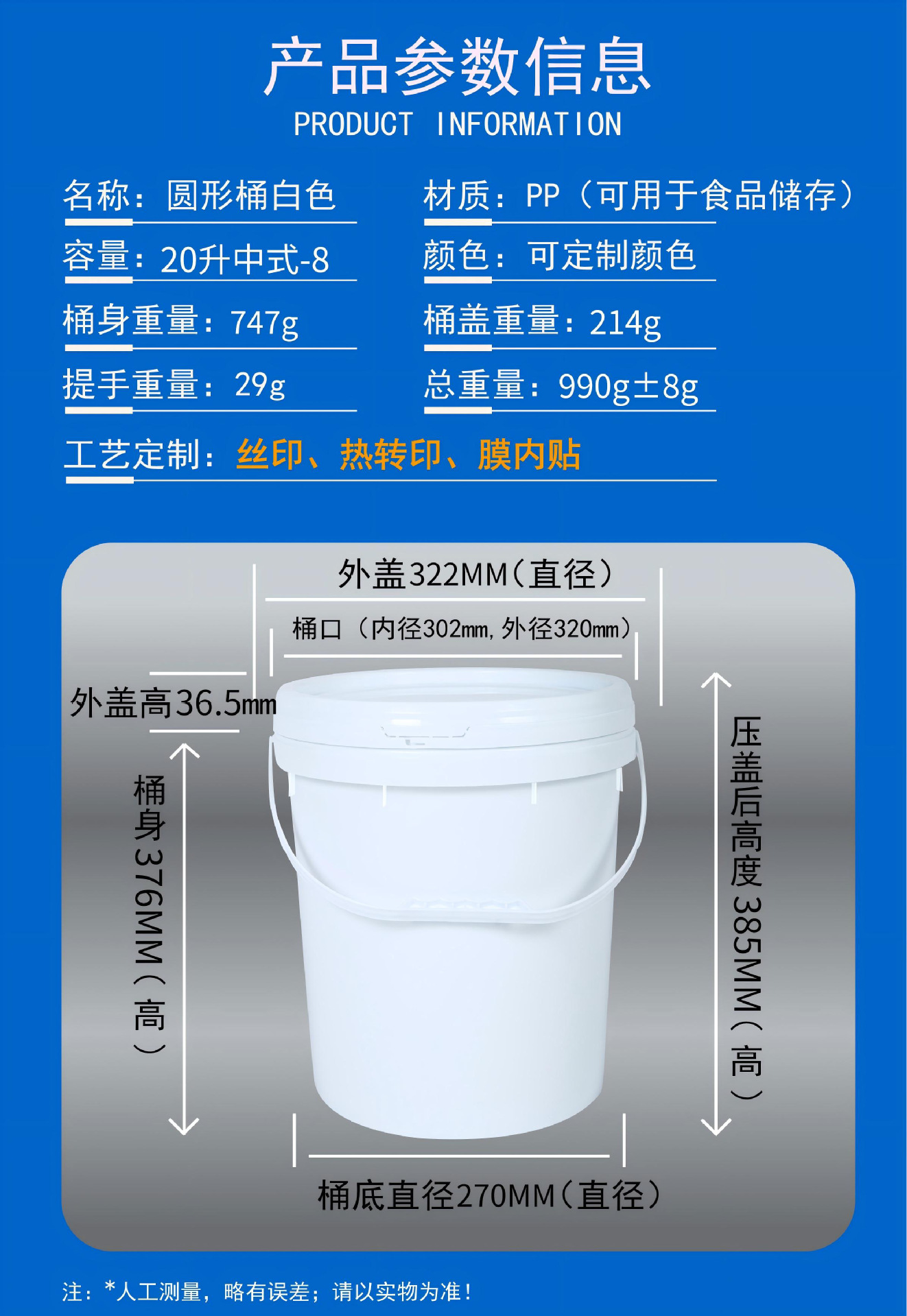 塑料水桶18kg涂料桶10升肥料包装桶20kg化工桶铁把手机油盖油漆桶