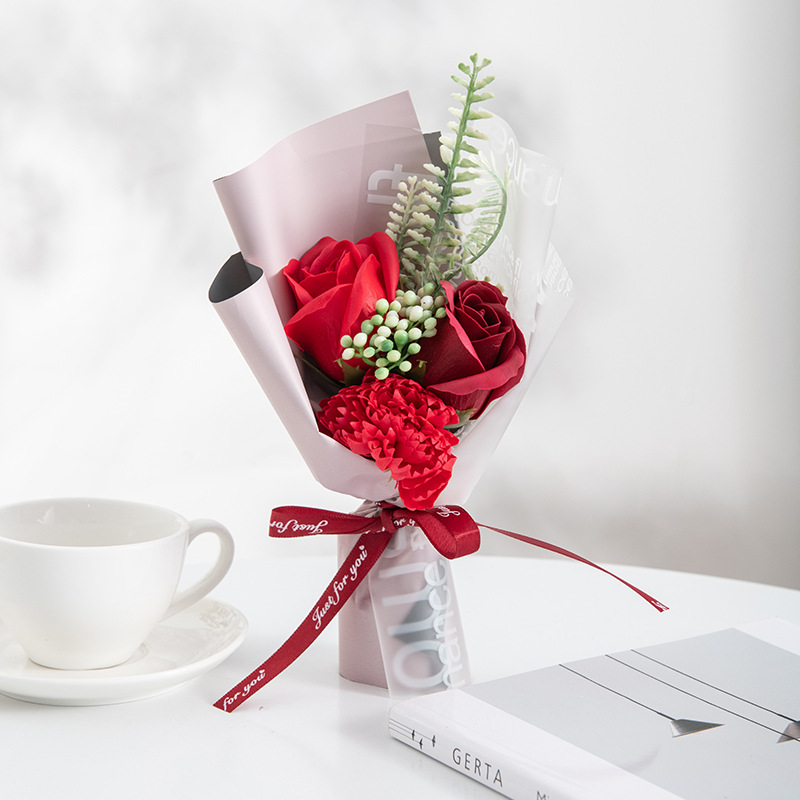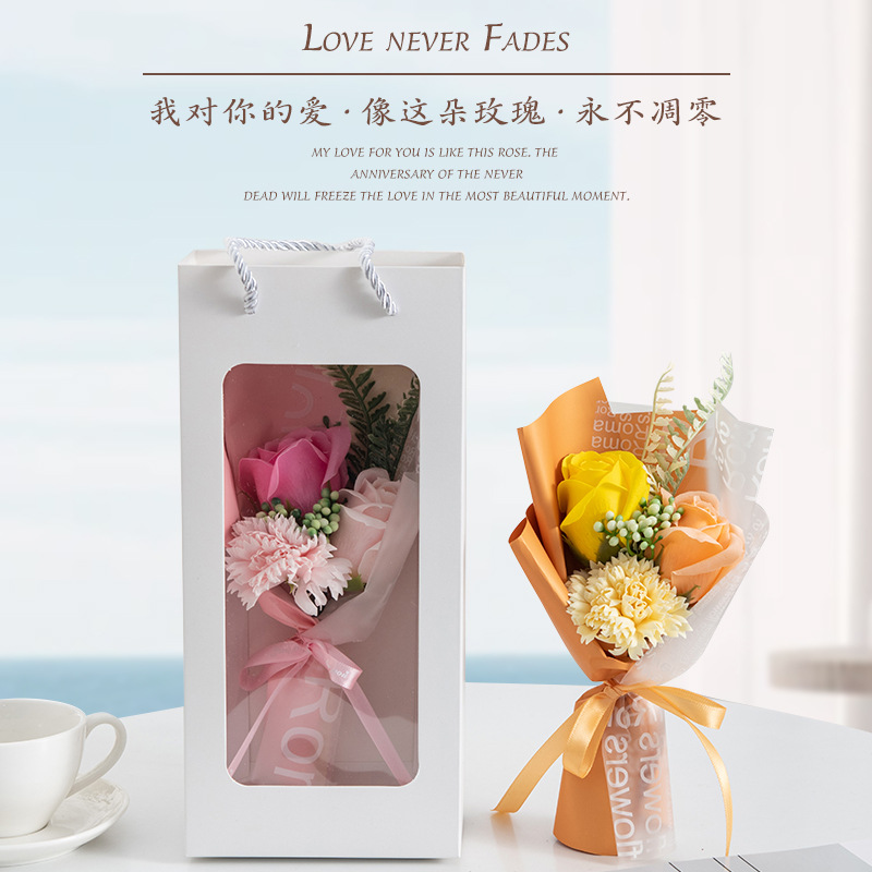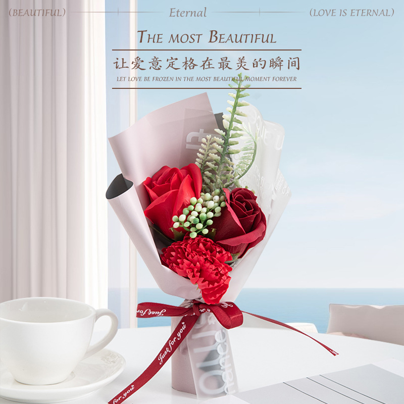 仿真花假花新款高级感康乃馨玫瑰香皂花永生花跨境工厂批发伴手礼