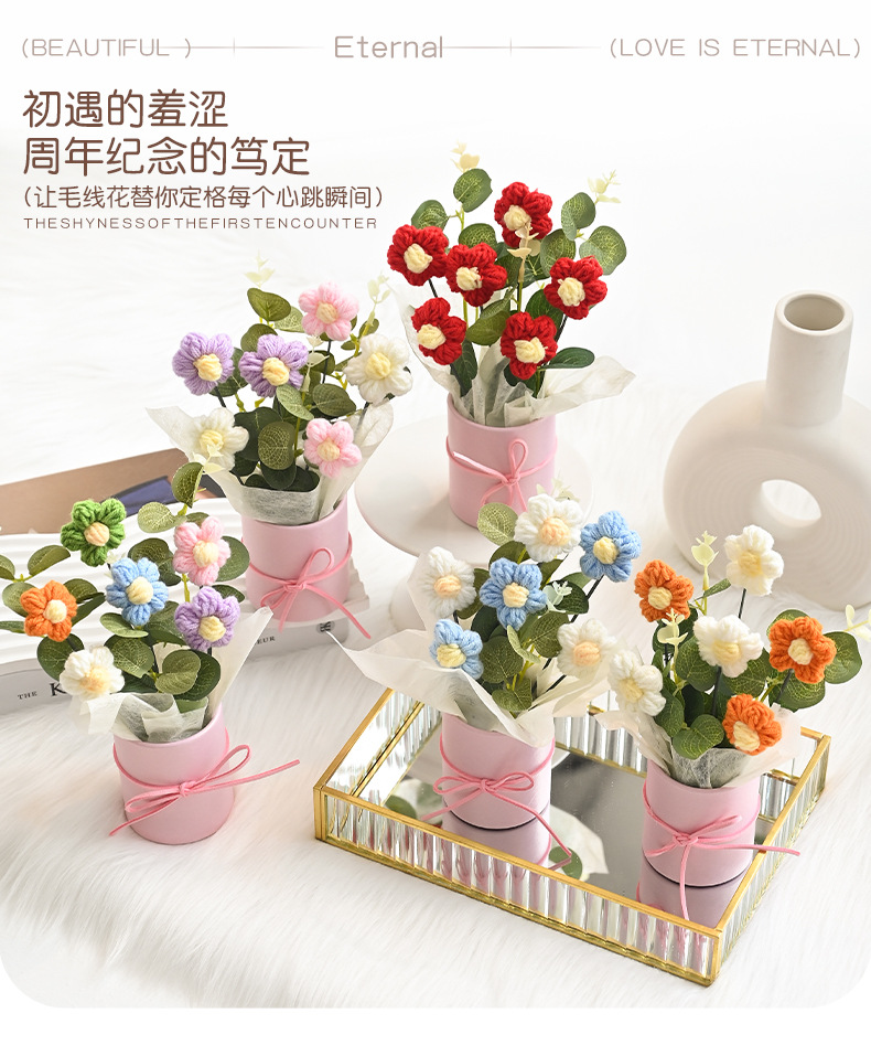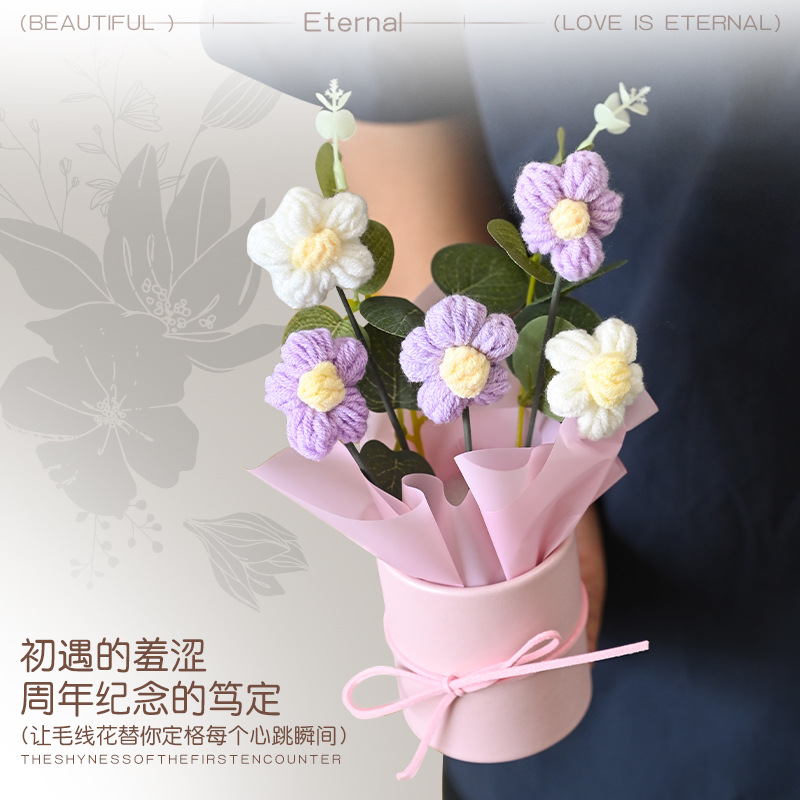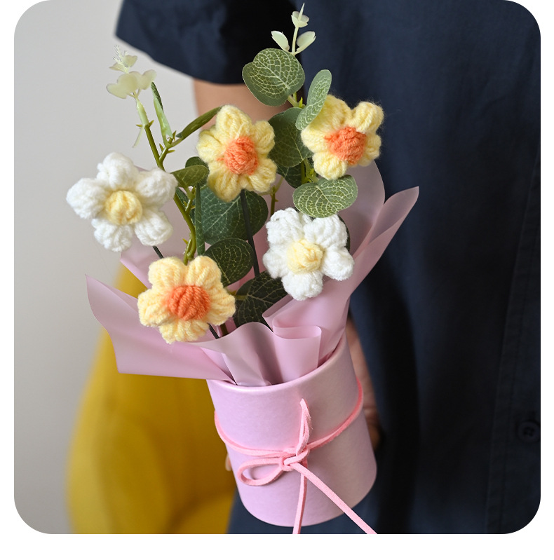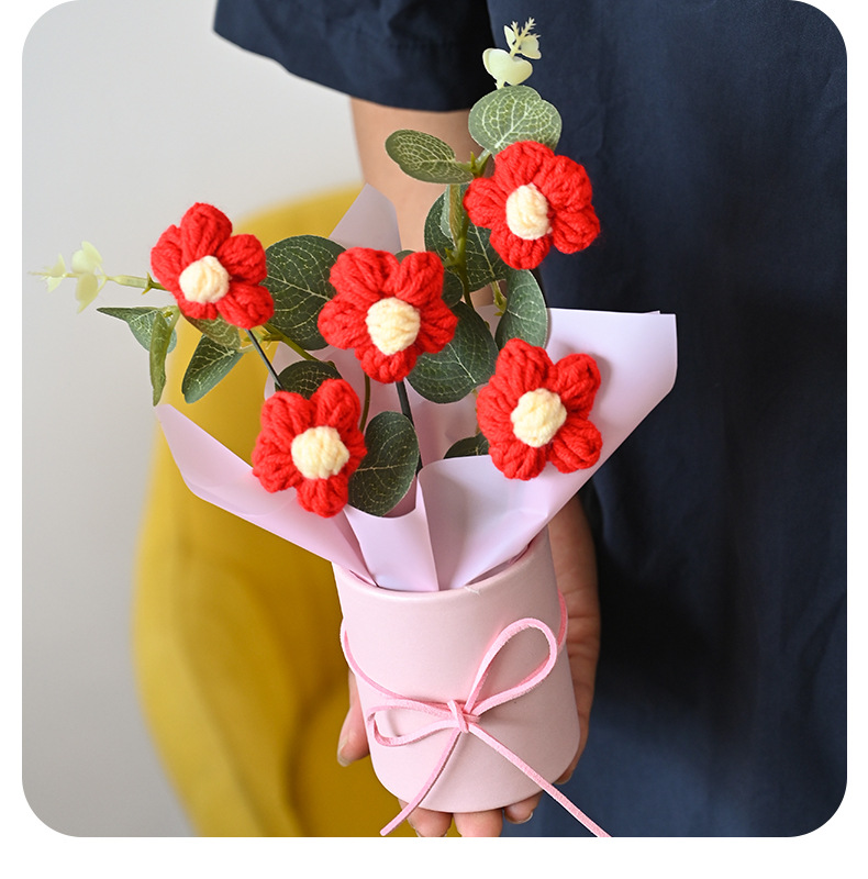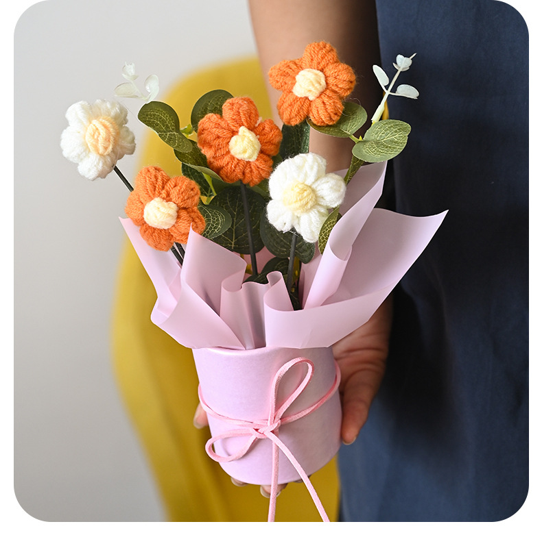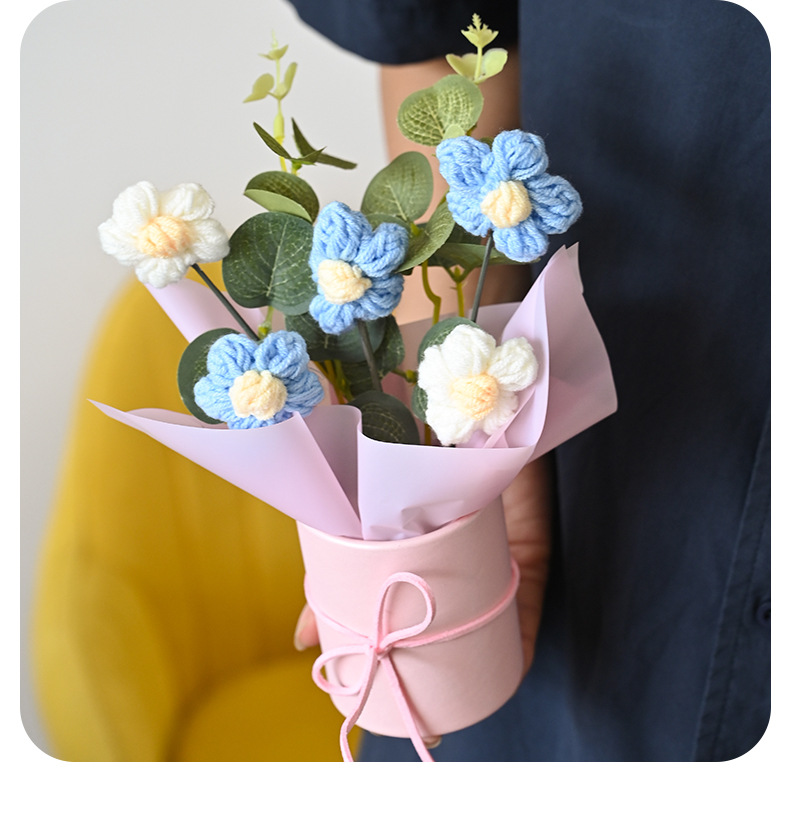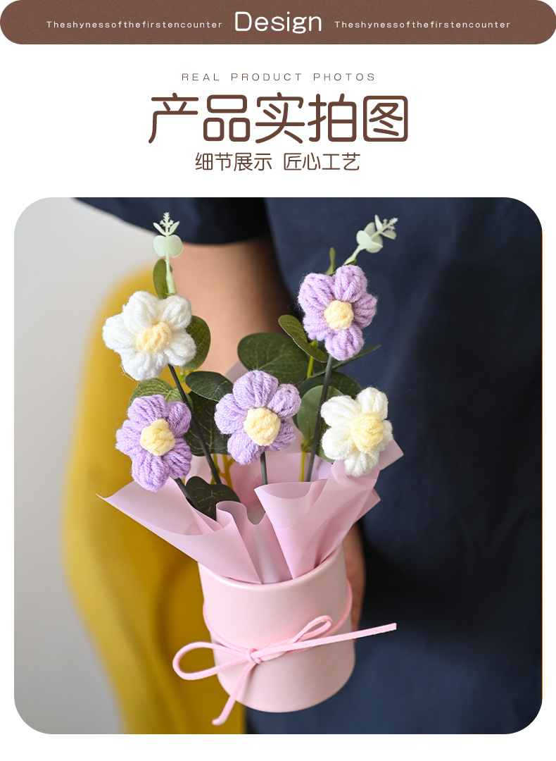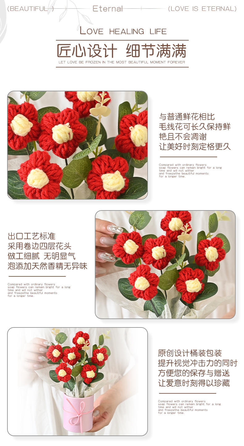 仿真花假花高级感香皂花手工泡芙针织花束装饰跨境批发礼物伴手礼