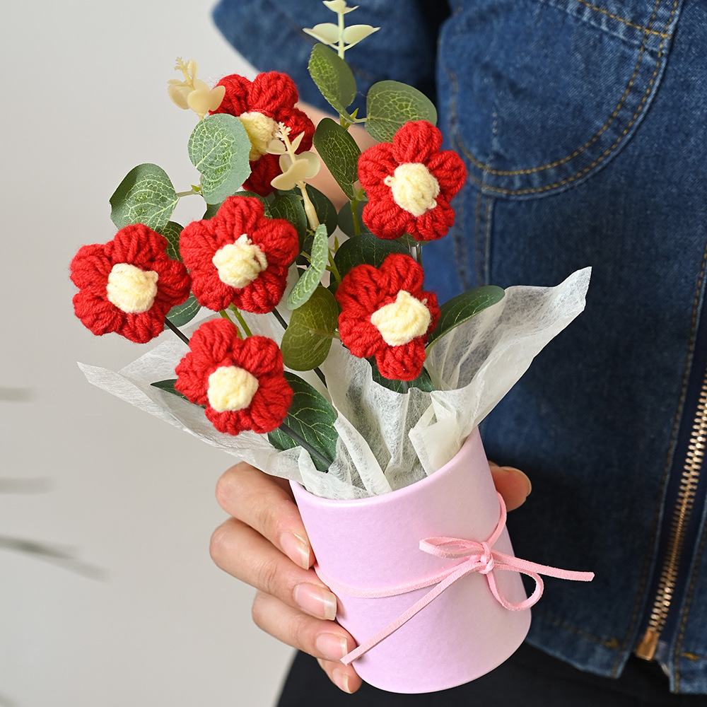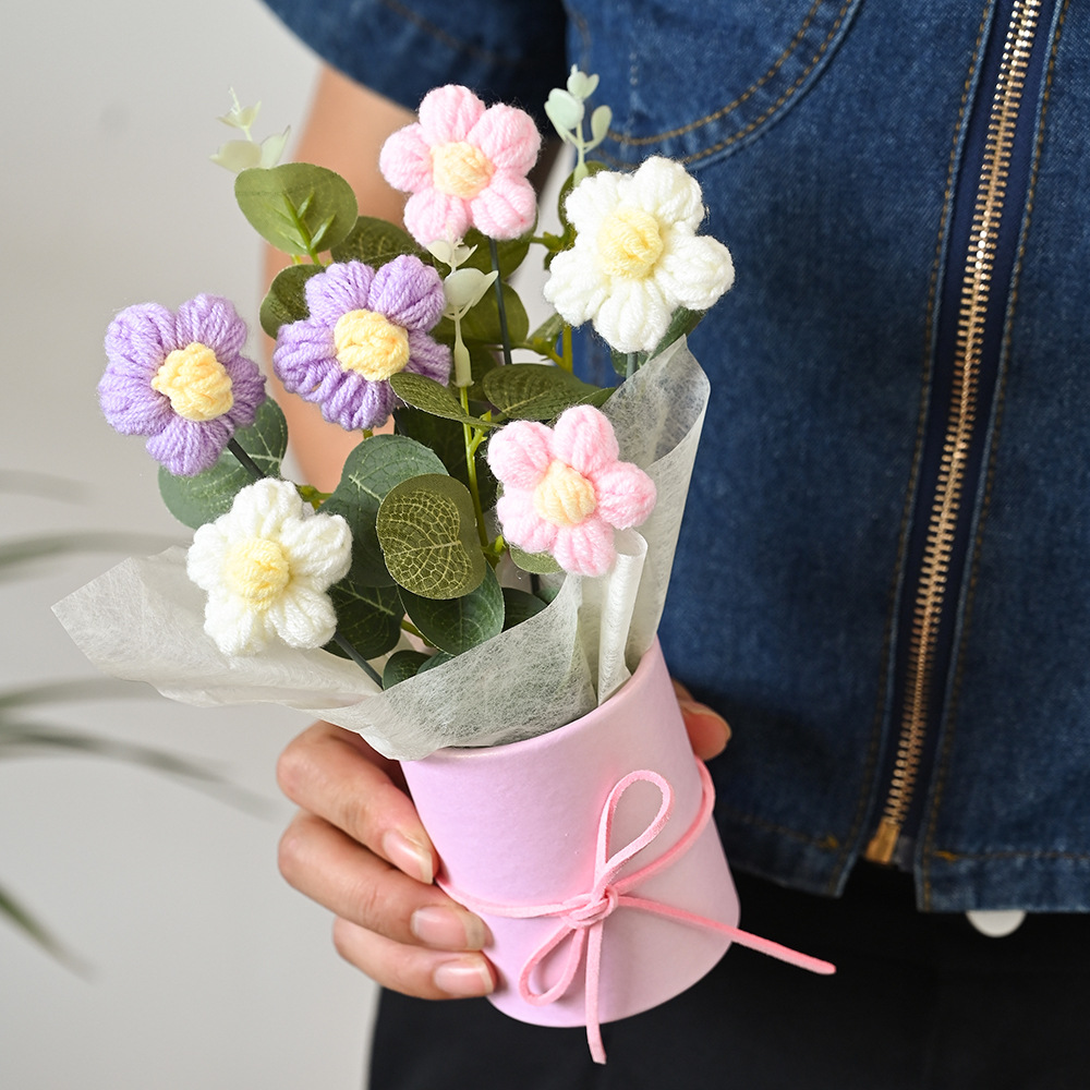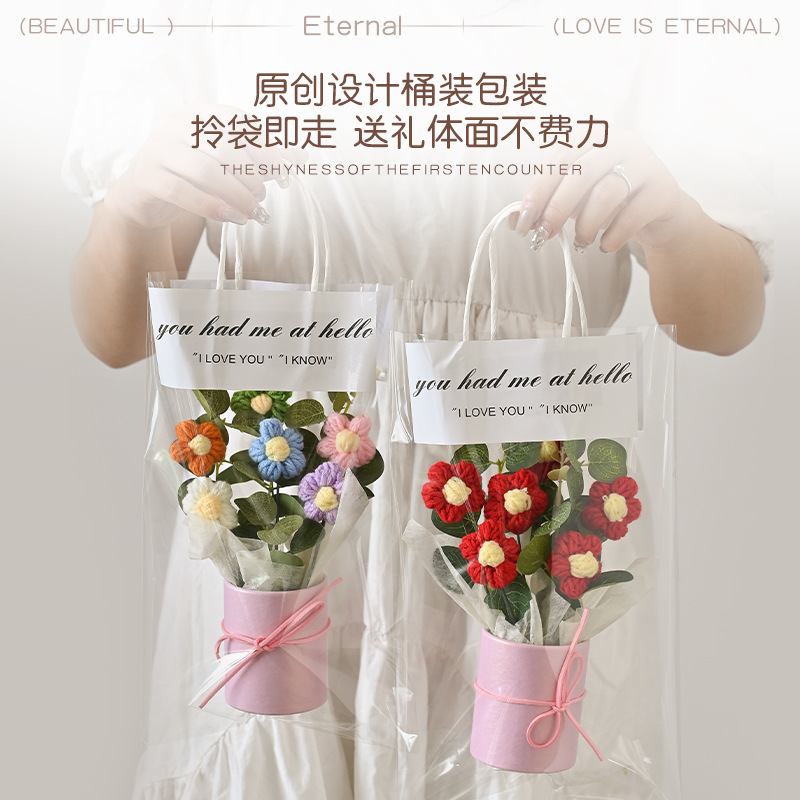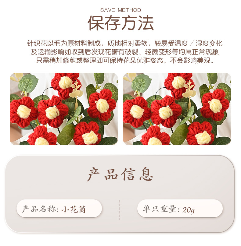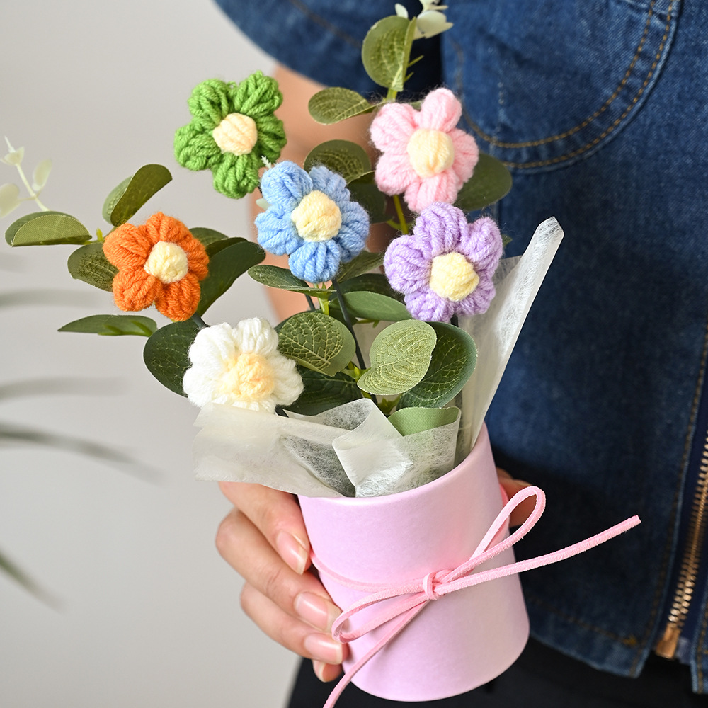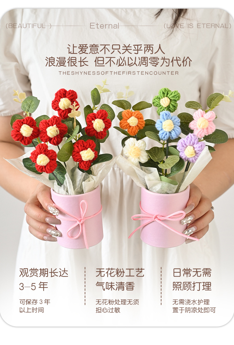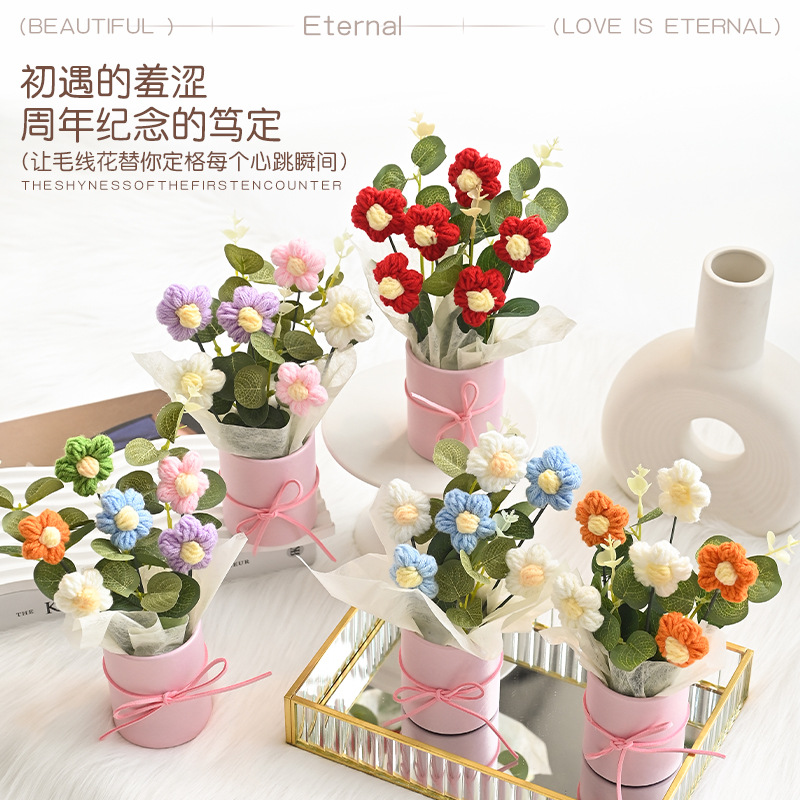 仿真花假花高级感香皂花手工泡芙针织花束装饰跨境批发礼物伴手礼