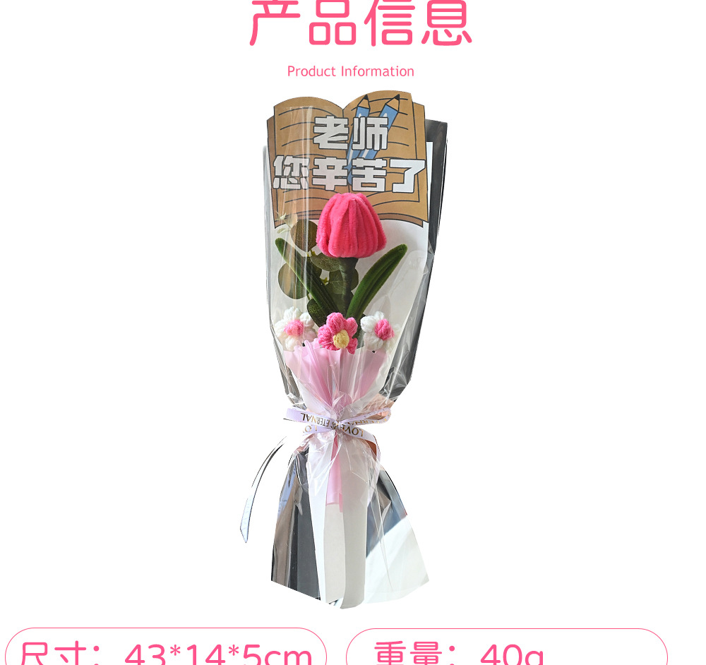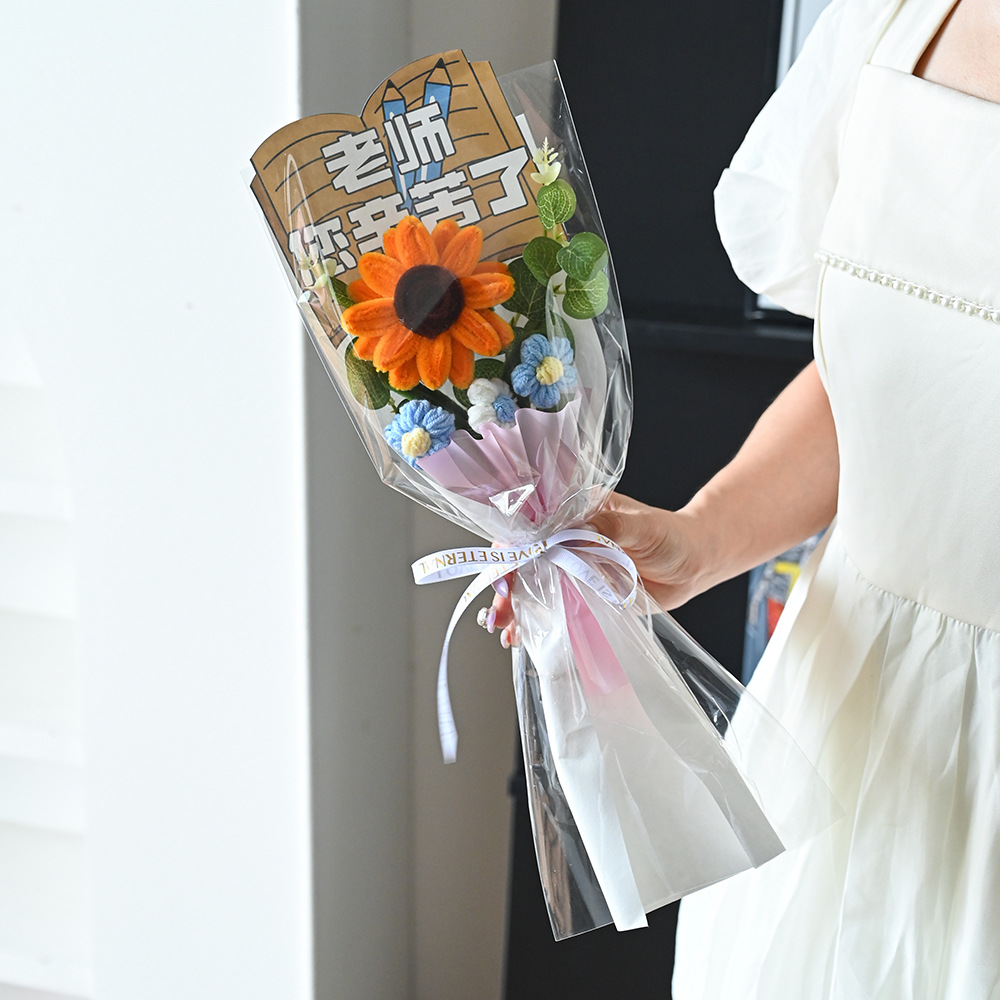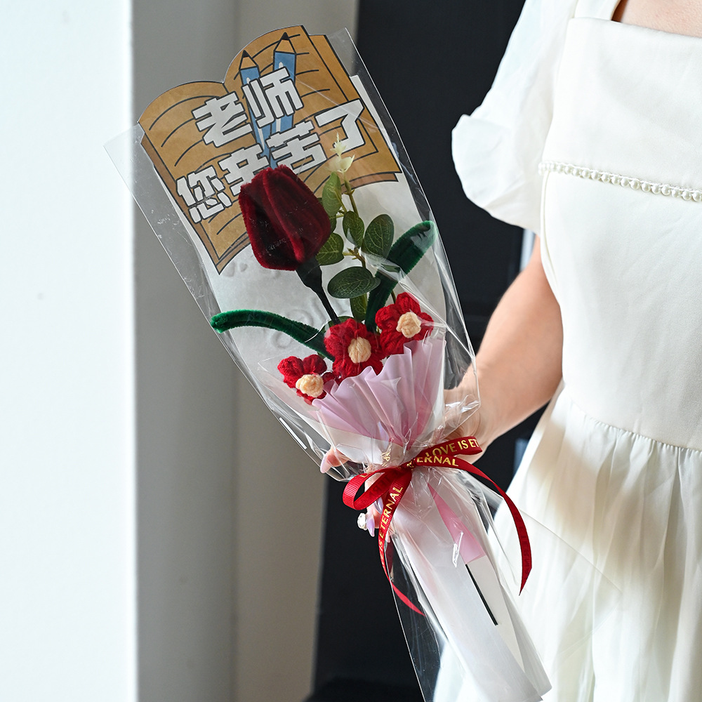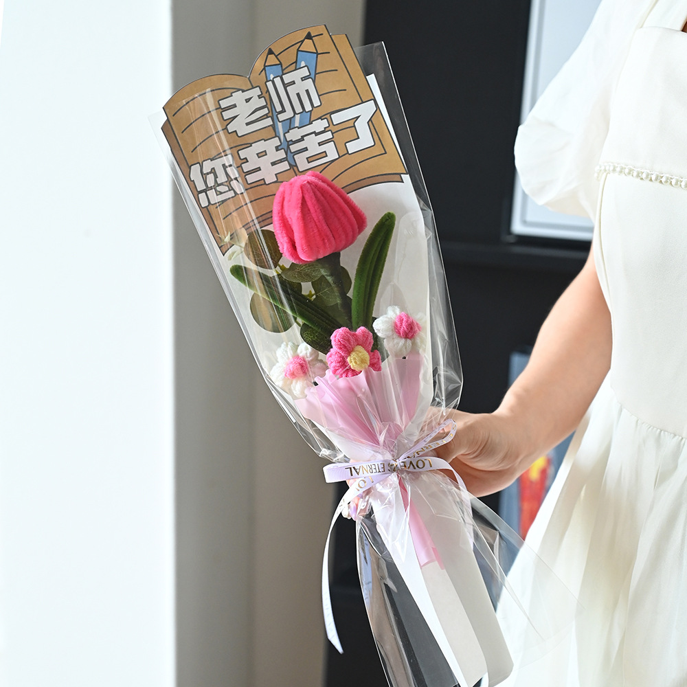 伴手礼仿真花扭扭棒针织太阳花玫瑰郁金香花束配饰批发小礼品假花