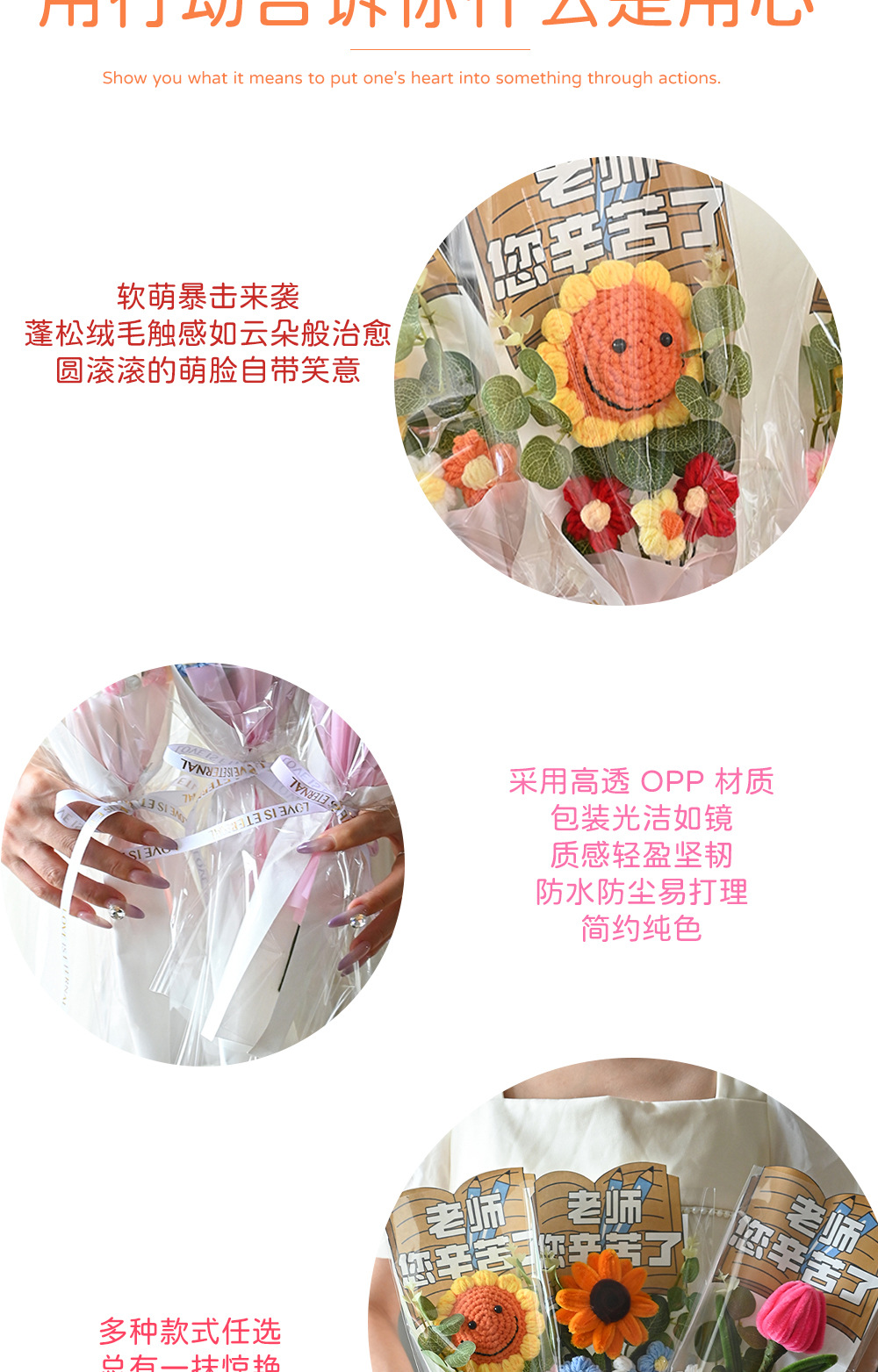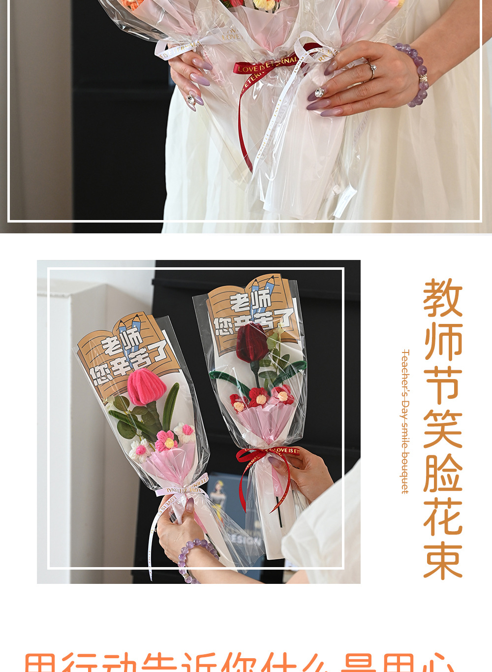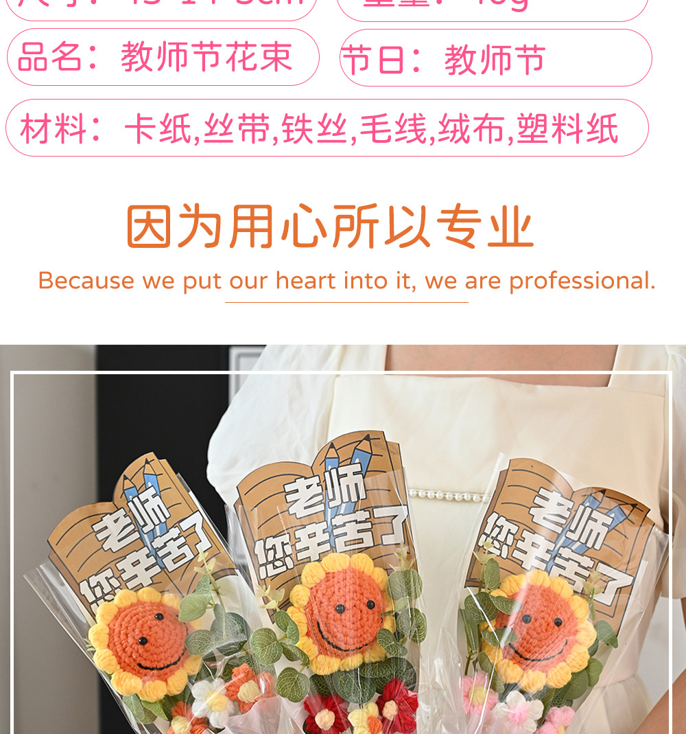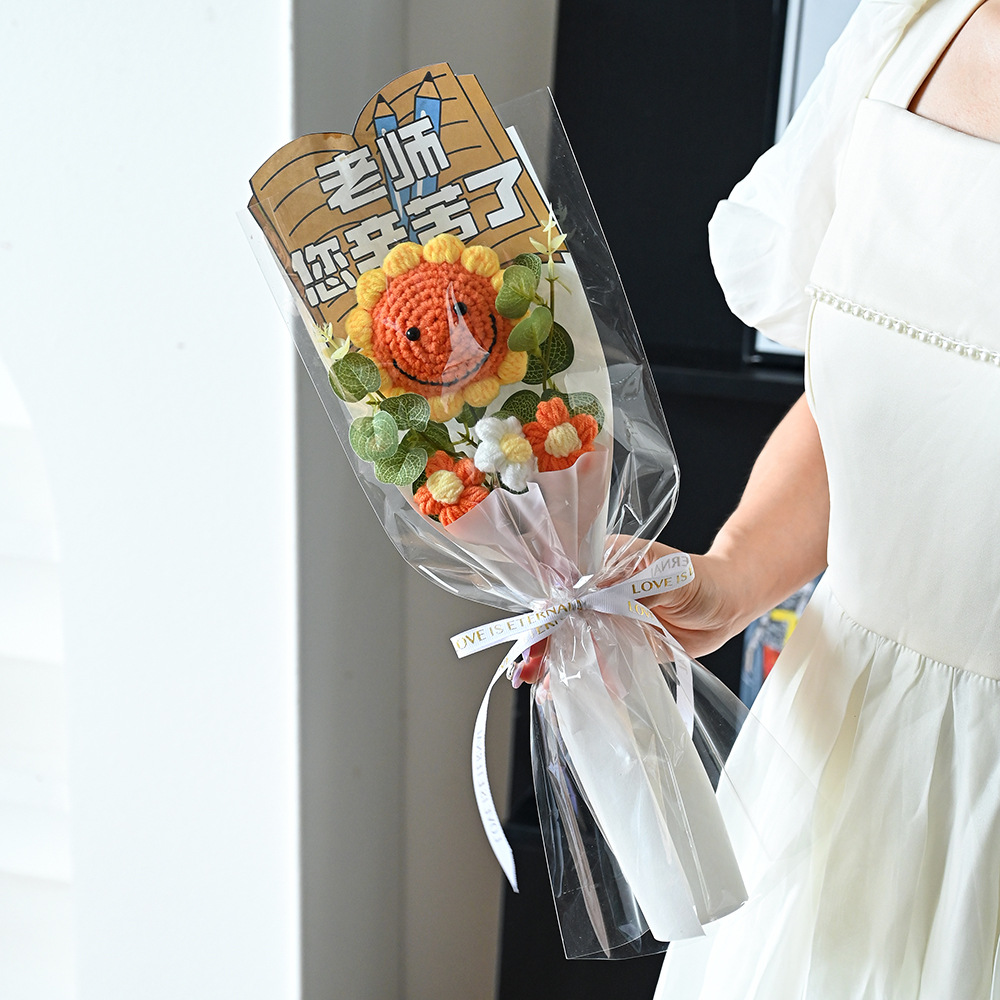 伴手礼仿真花扭扭棒针织太阳花玫瑰郁金香花束配饰批发小礼品假花