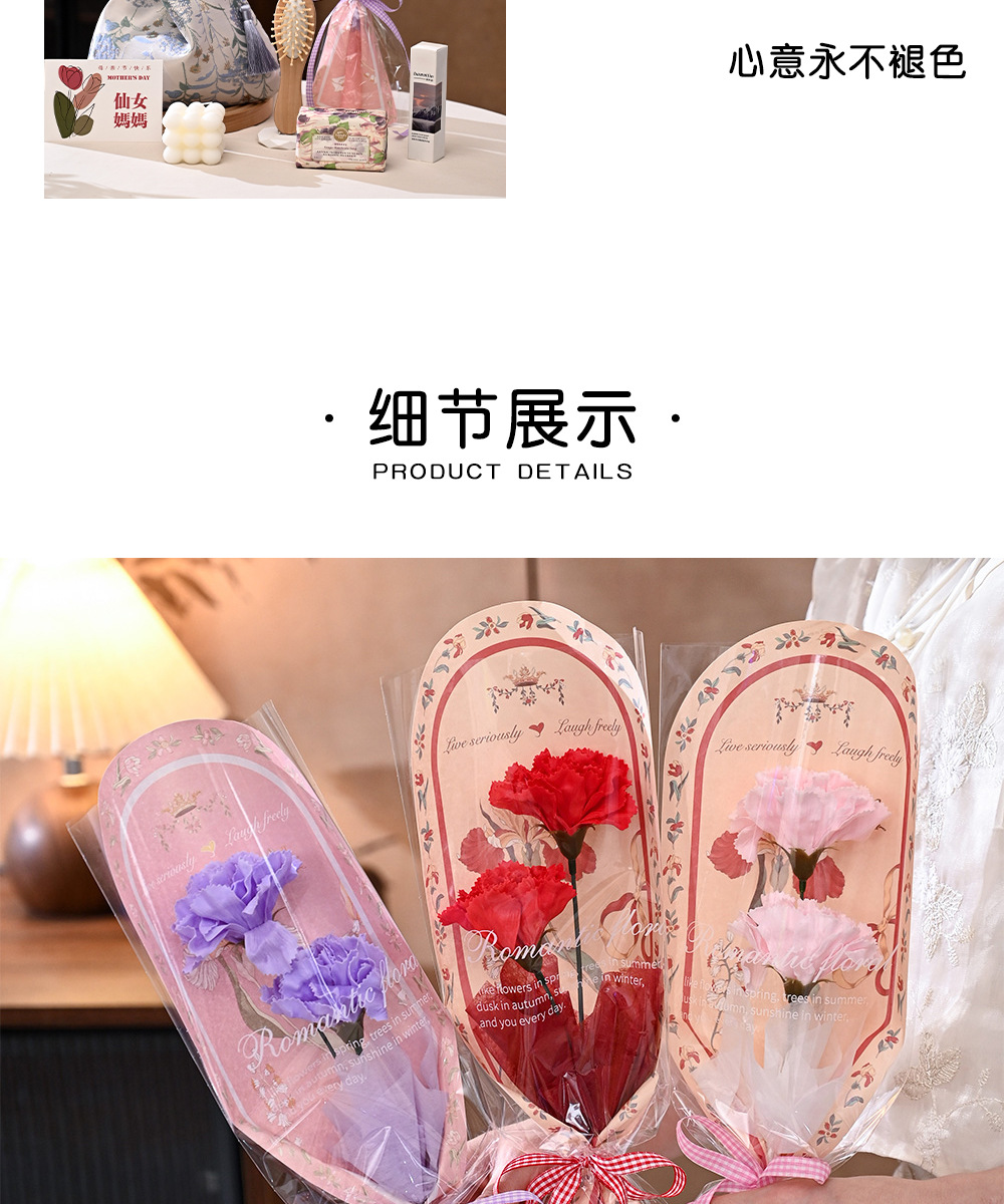 母亲节礼物康乃馨小花束永生香皂花装饰跨境批发仿真花假花伴手礼