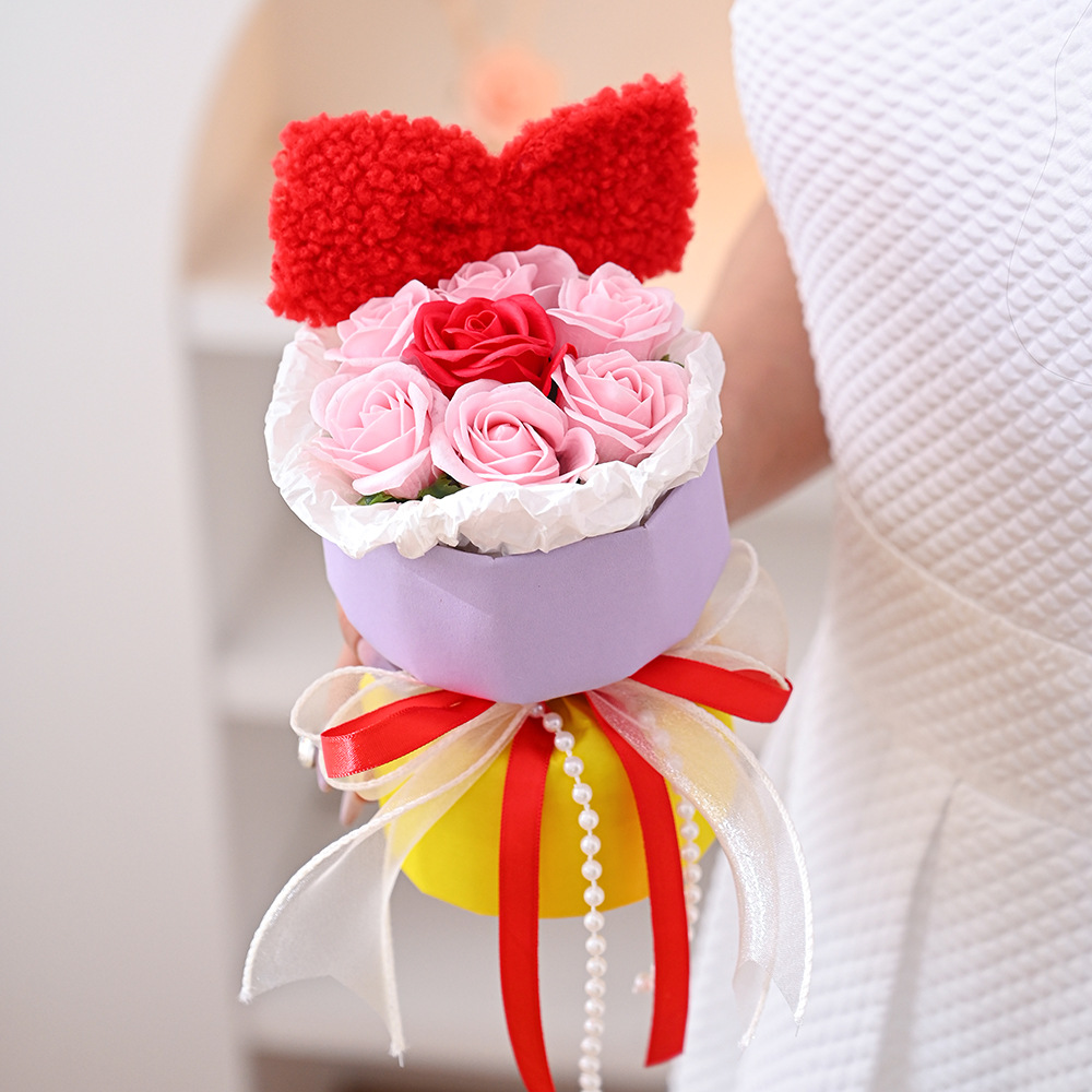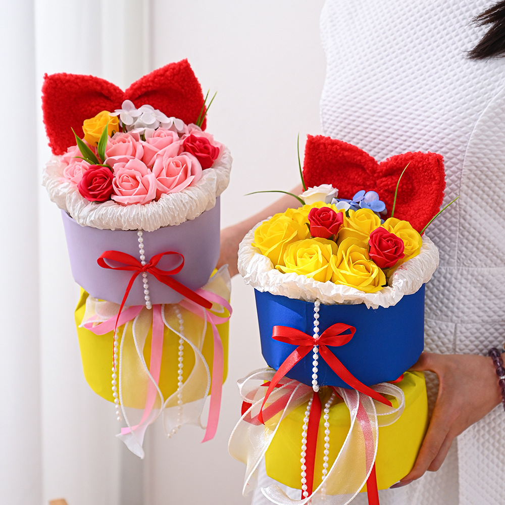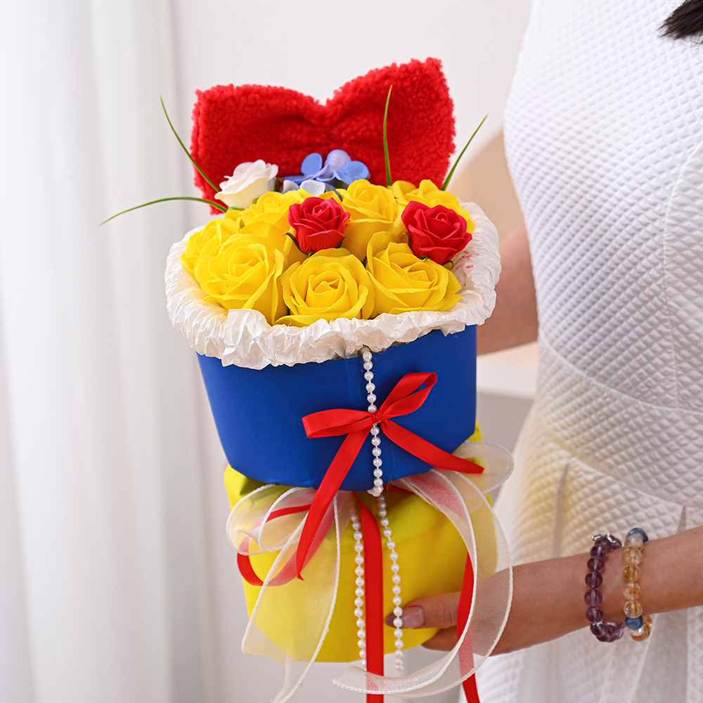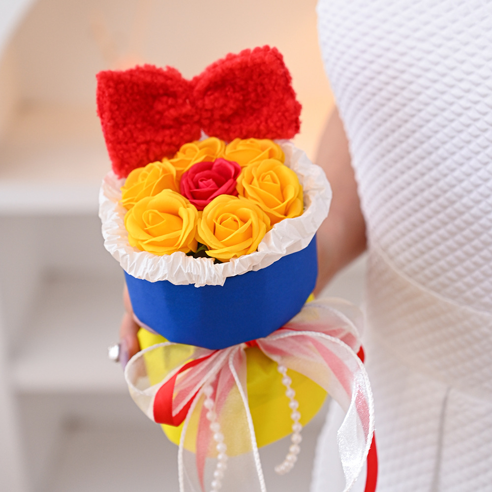 仿真花新款白雪公主玫瑰香皂花手捧花摆件跨境批发礼品假花伴手礼