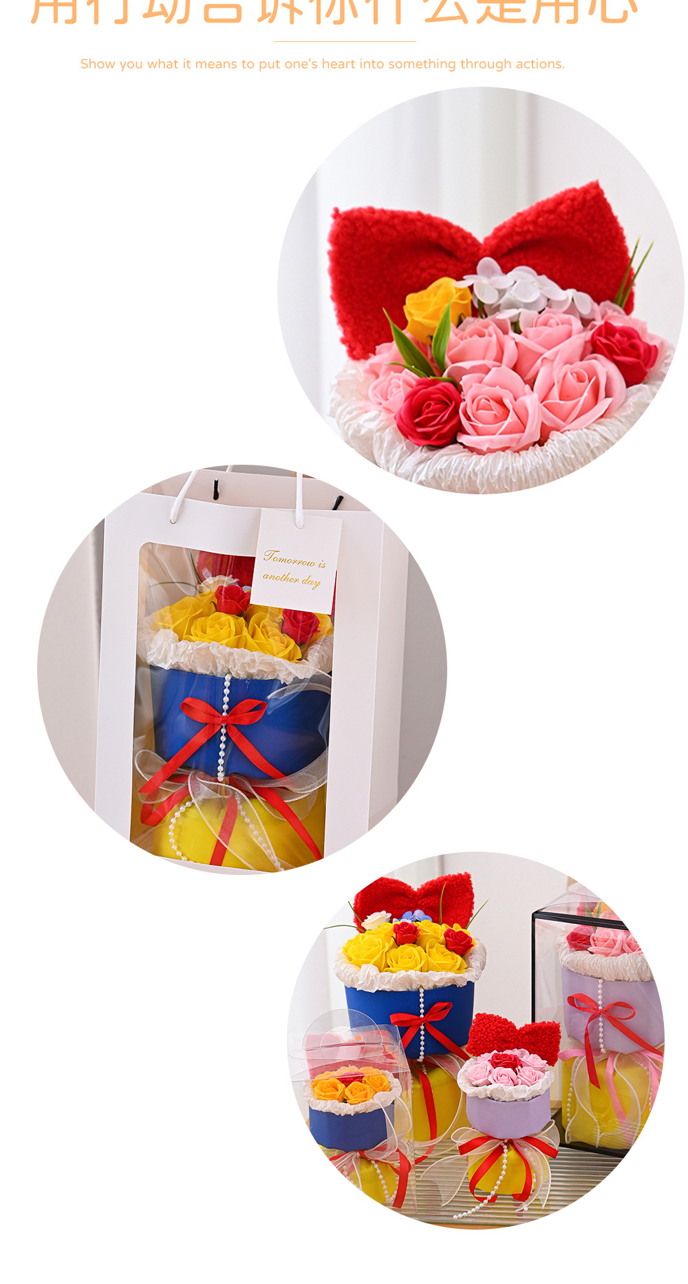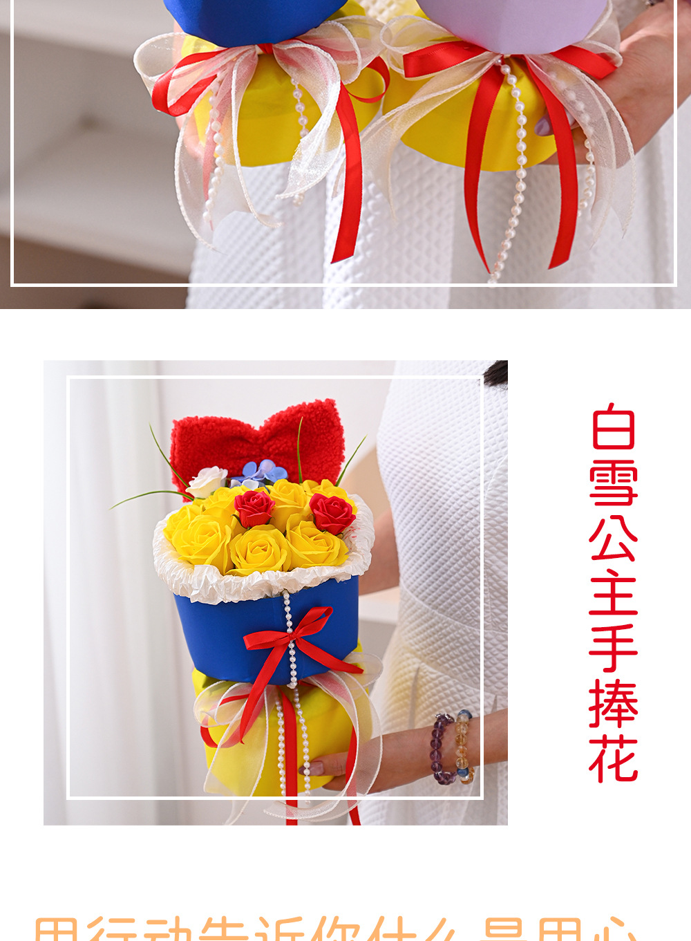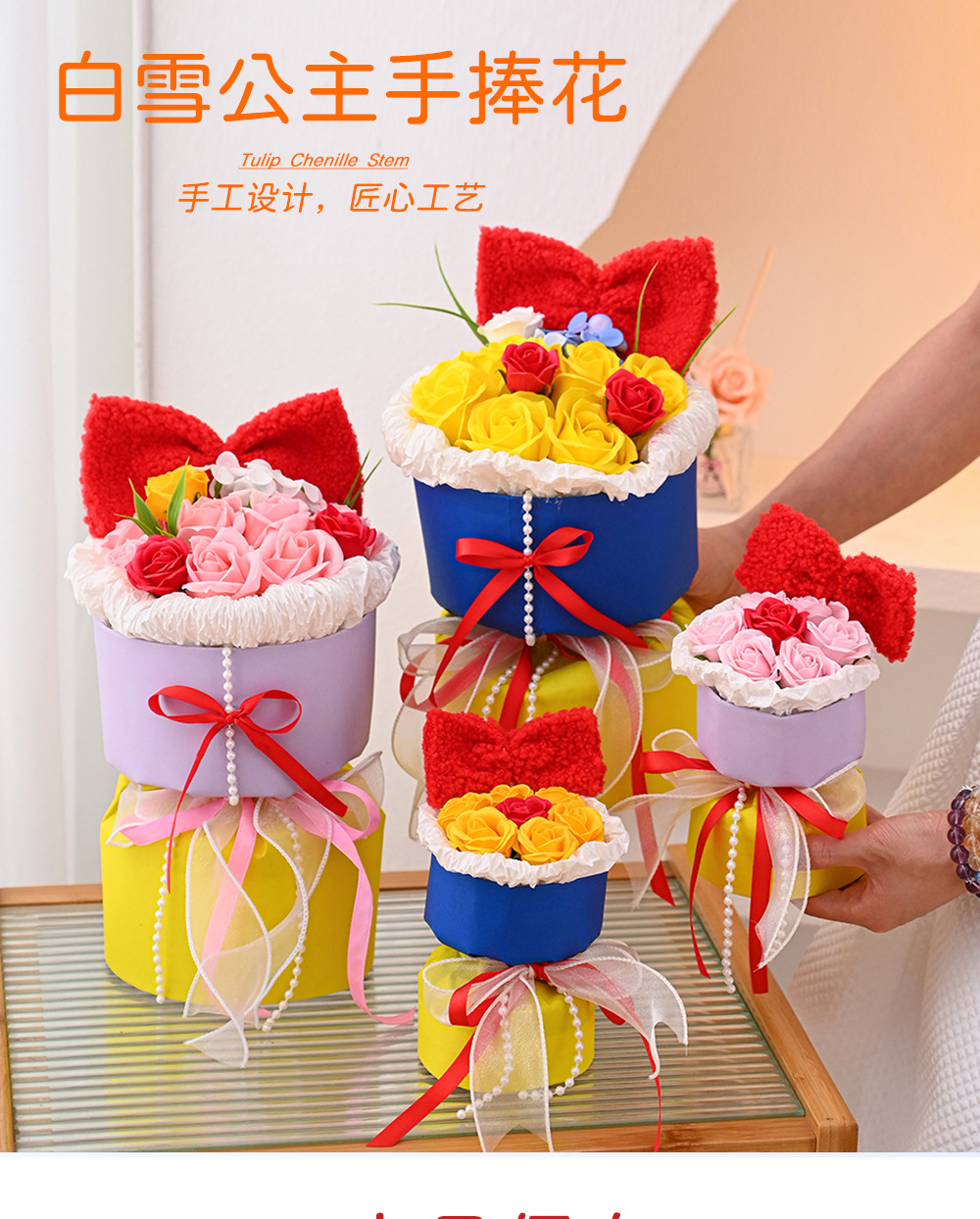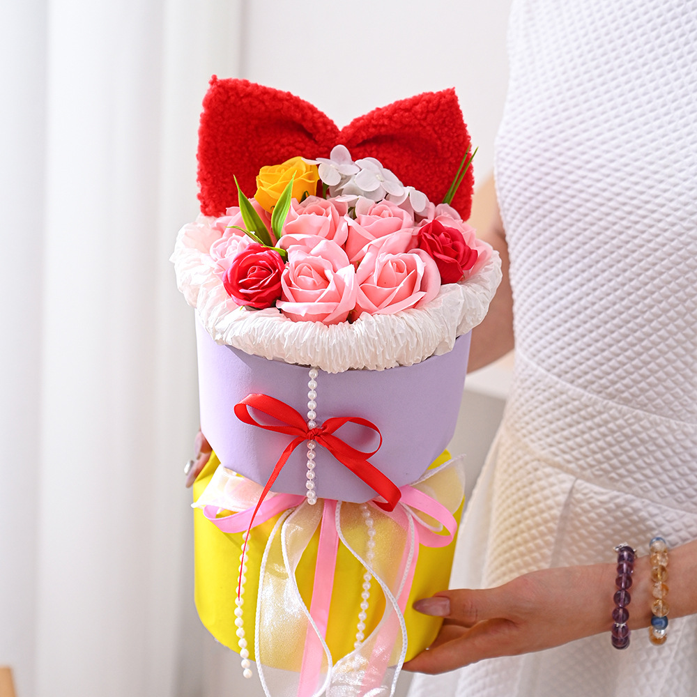 仿真花新款白雪公主玫瑰香皂花手捧花摆件跨境批发礼品假花伴手礼