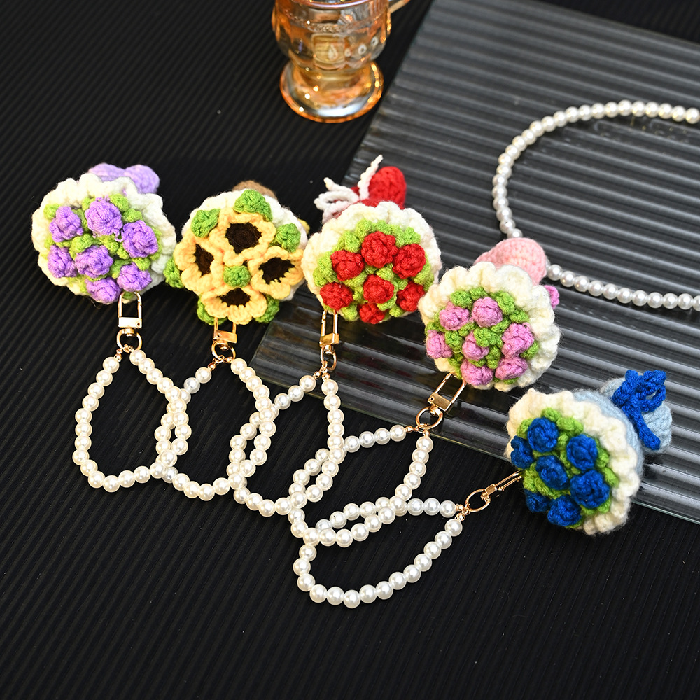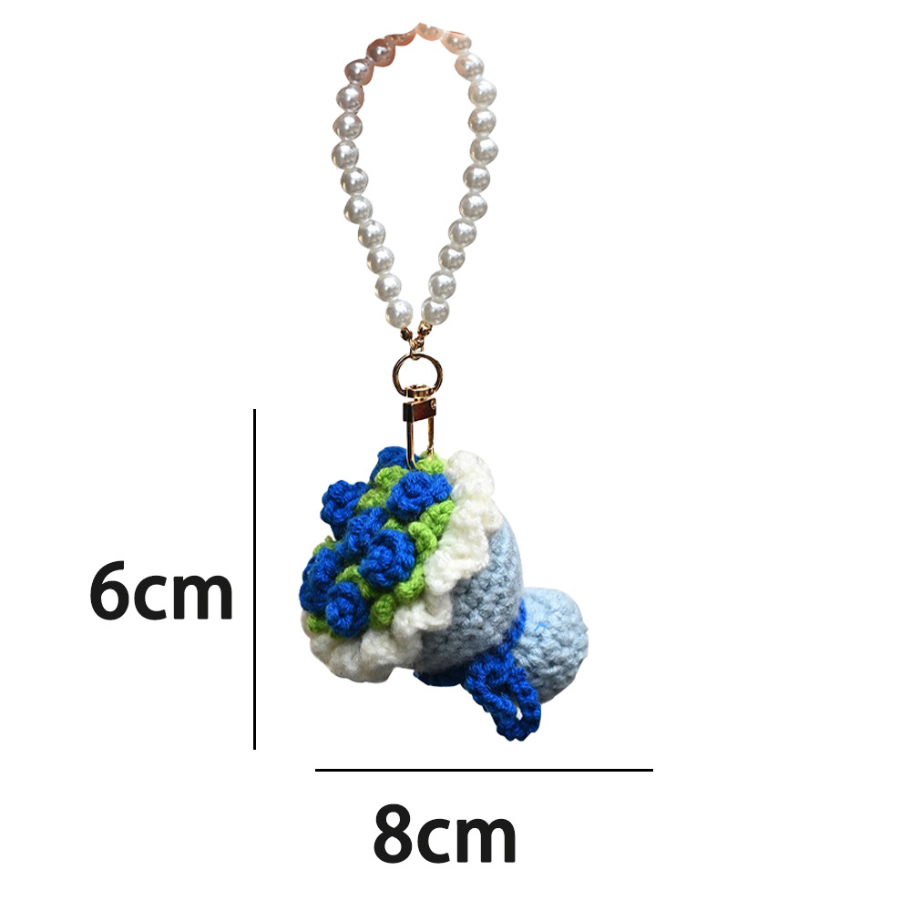 迷你针织成品手捧花创意钥匙扣毛线编织玫瑰花花束包包挂饰小礼品
