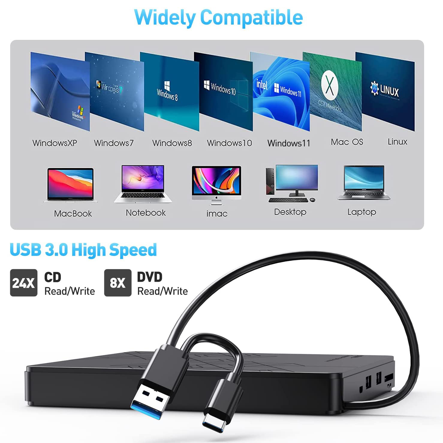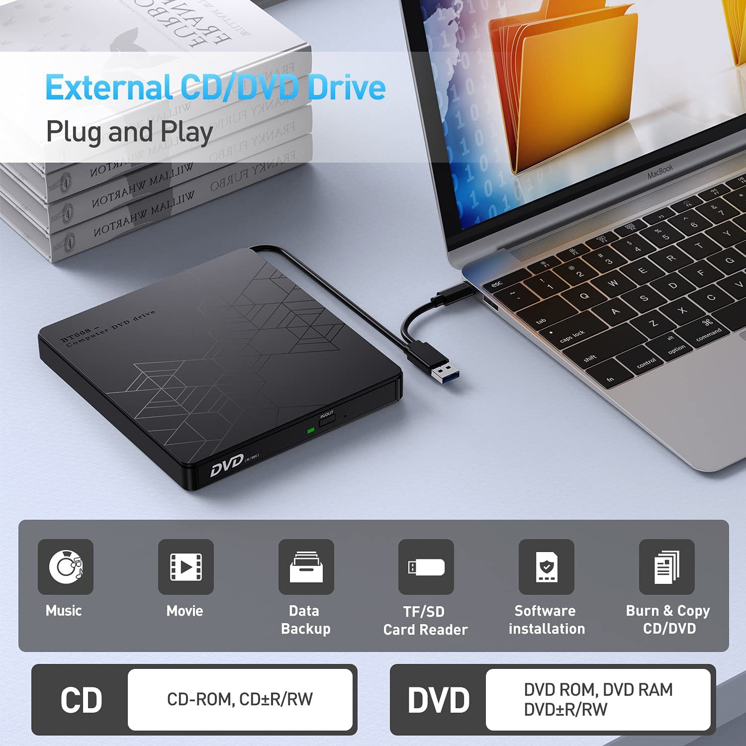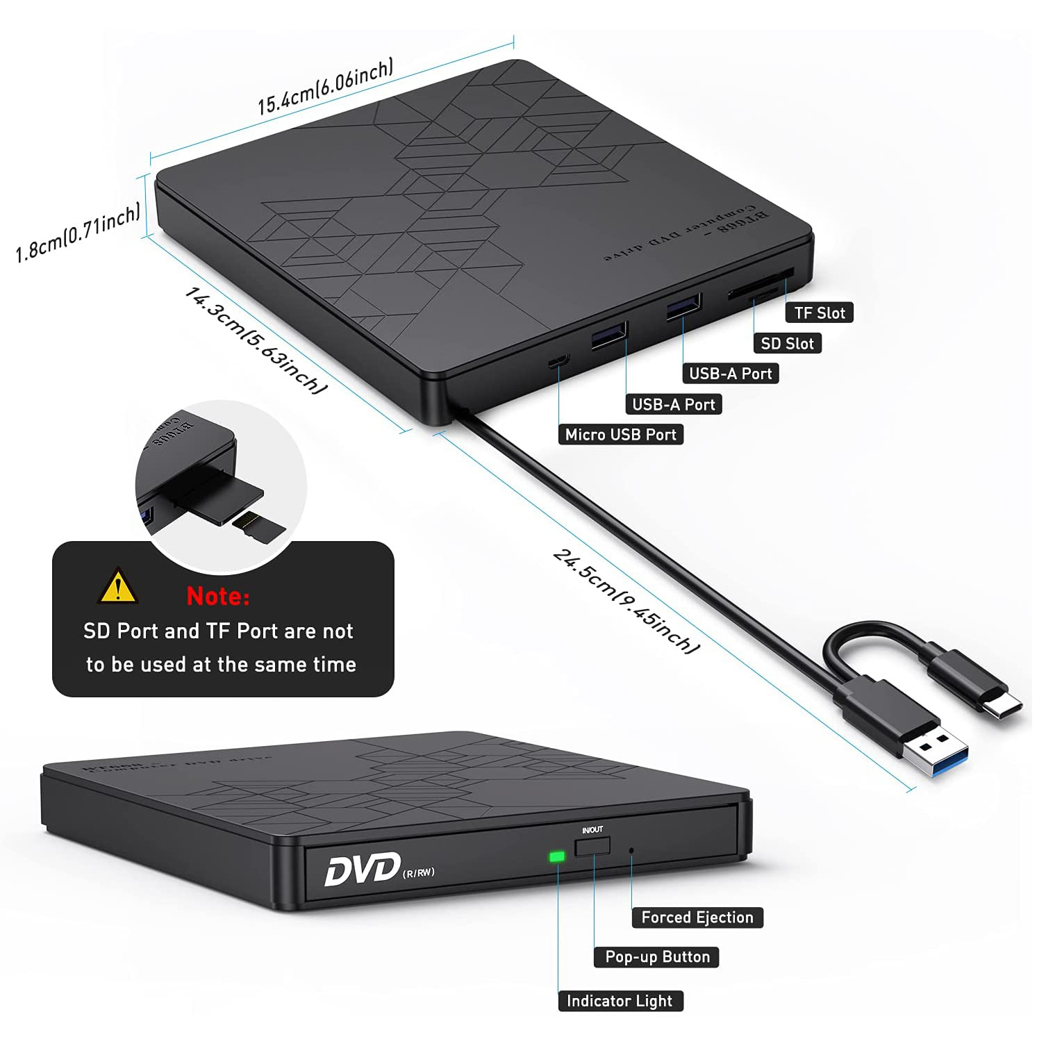 多功能插卡光驱笔记本台式电脑外置光驱刻录机5合1外接光盘刻录机