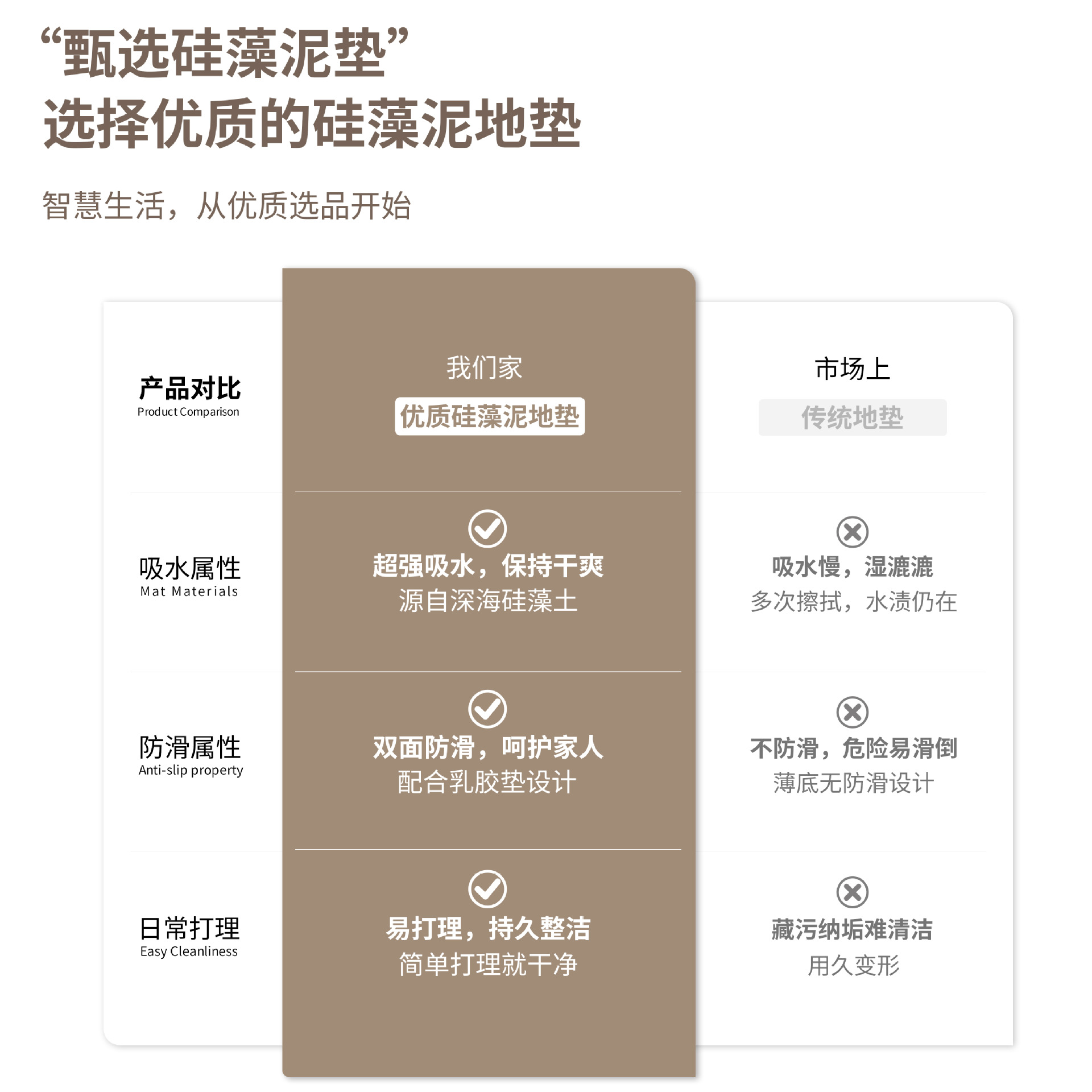 跨境定制厂家批发硅藻泥地垫浴室防滑硅藻土硬地垫跨境入户门地垫