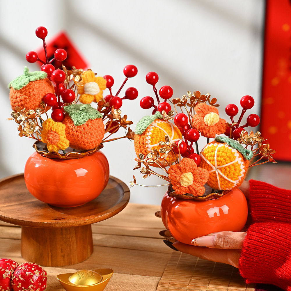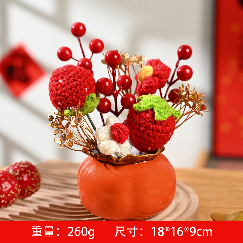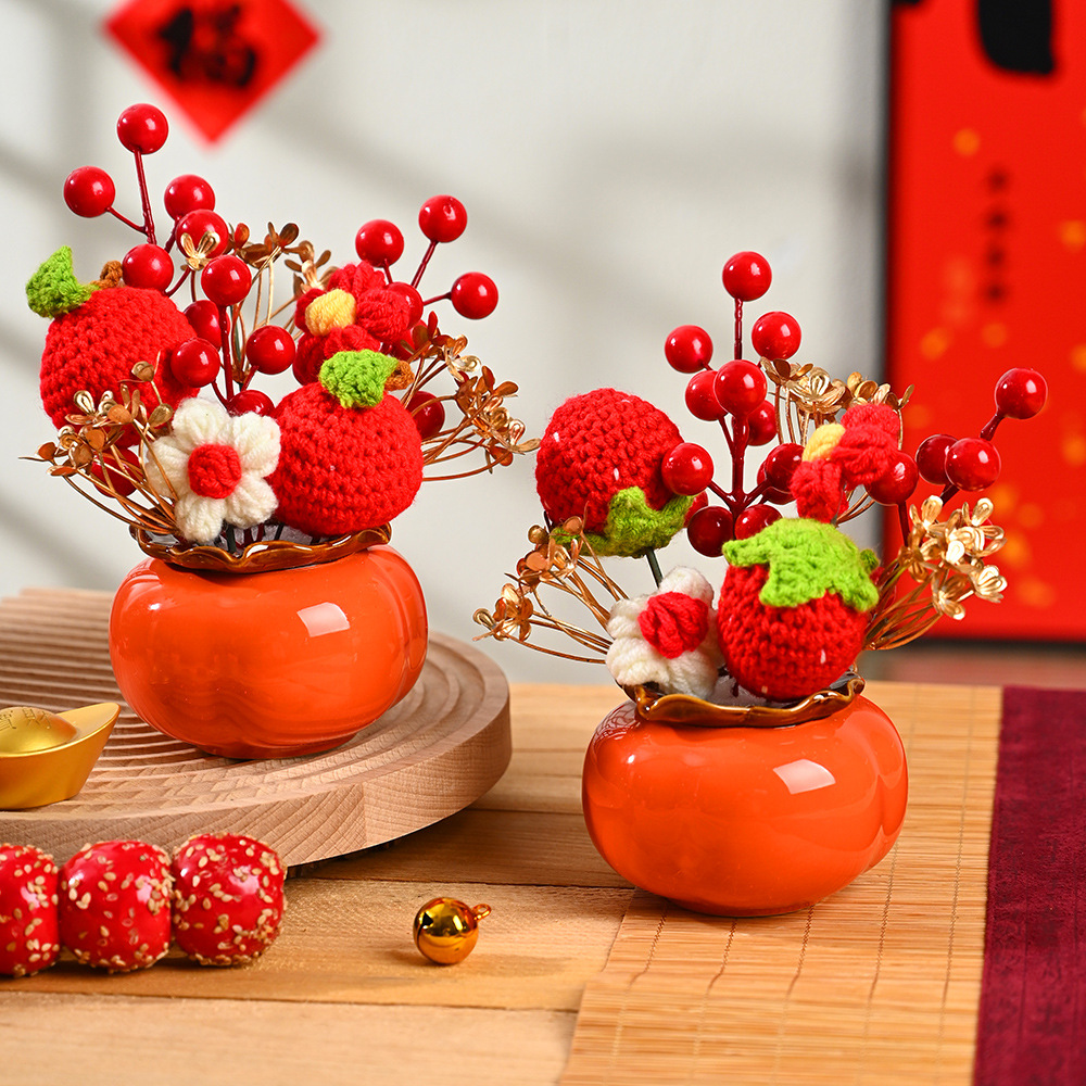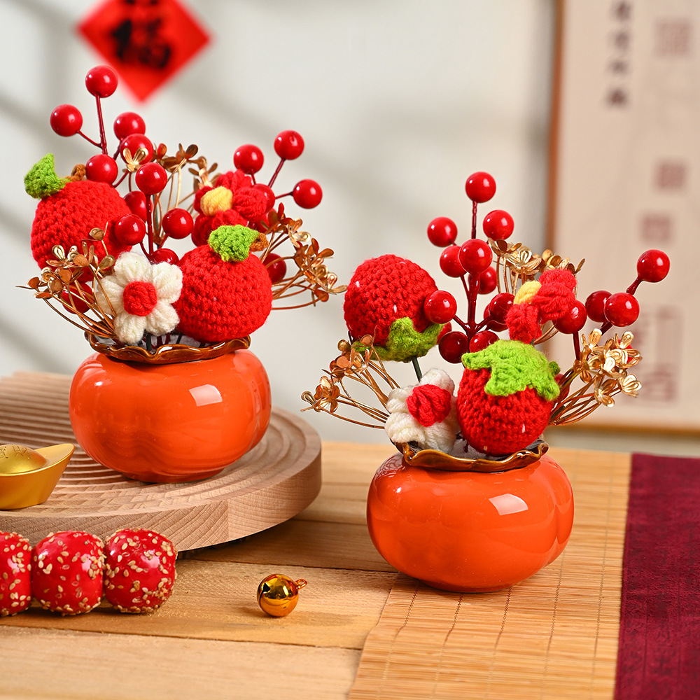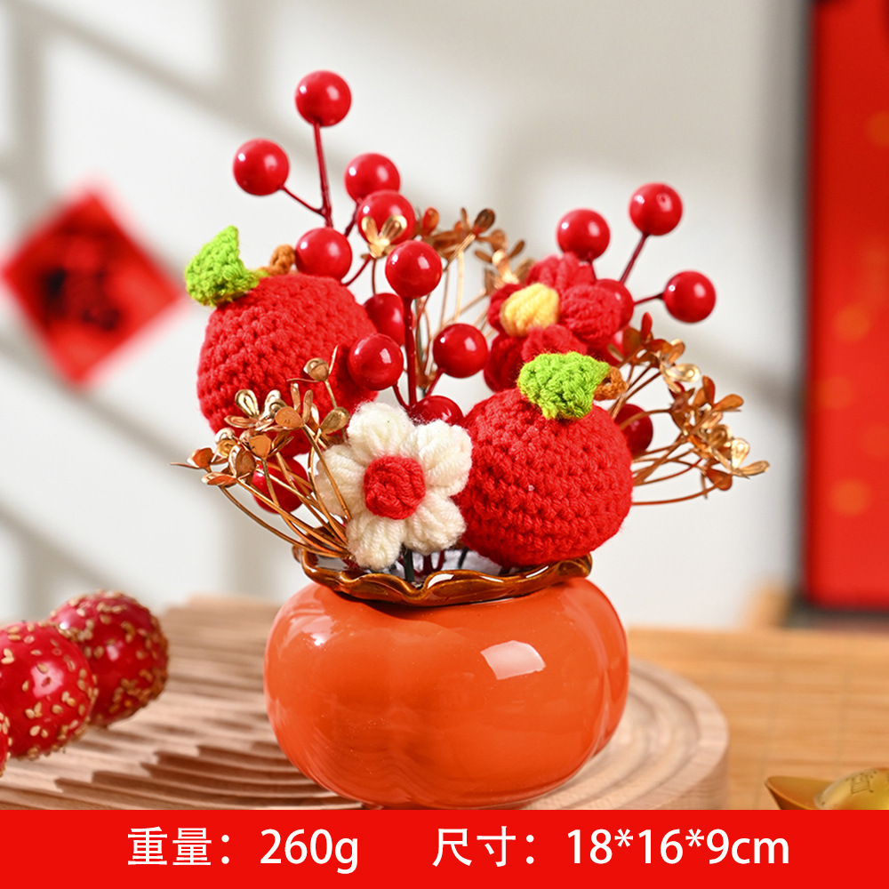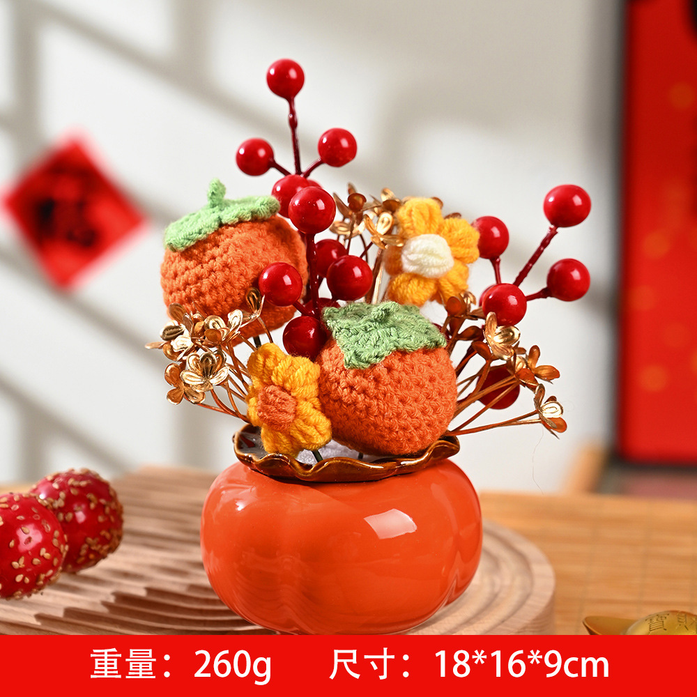 新年年货乔迁之喜针织毛线柿柿如意陶瓷摆件客厅结婚布置礼物批发