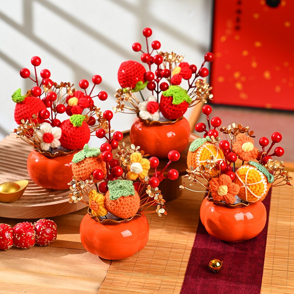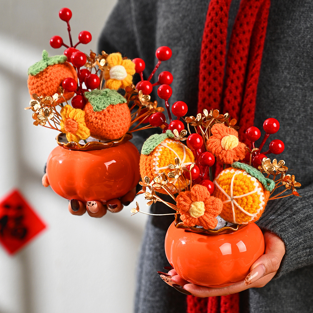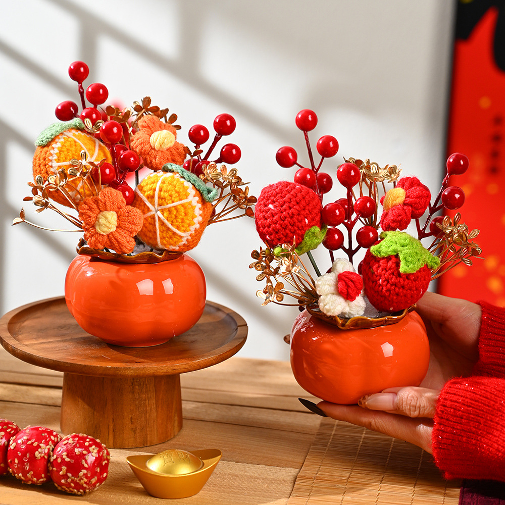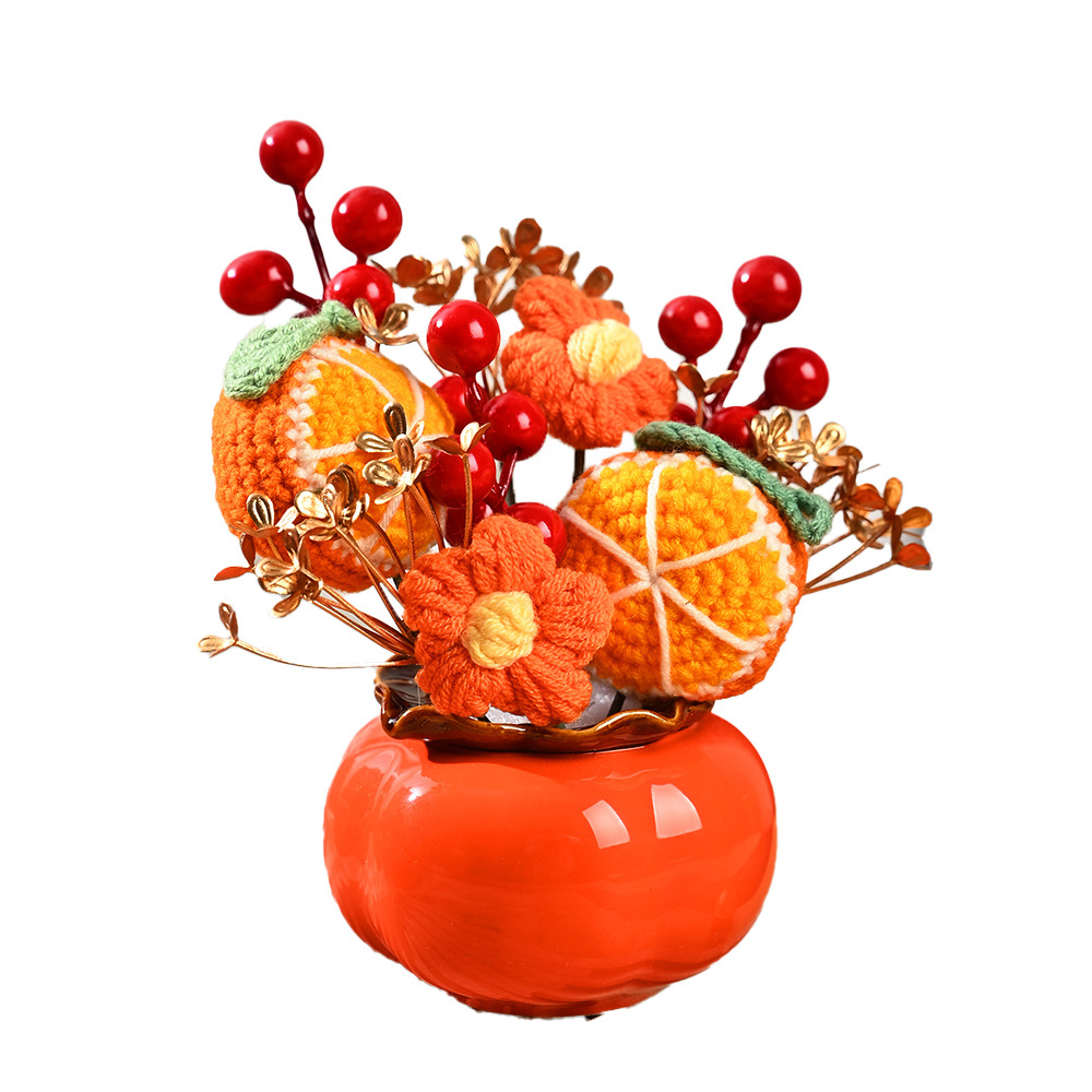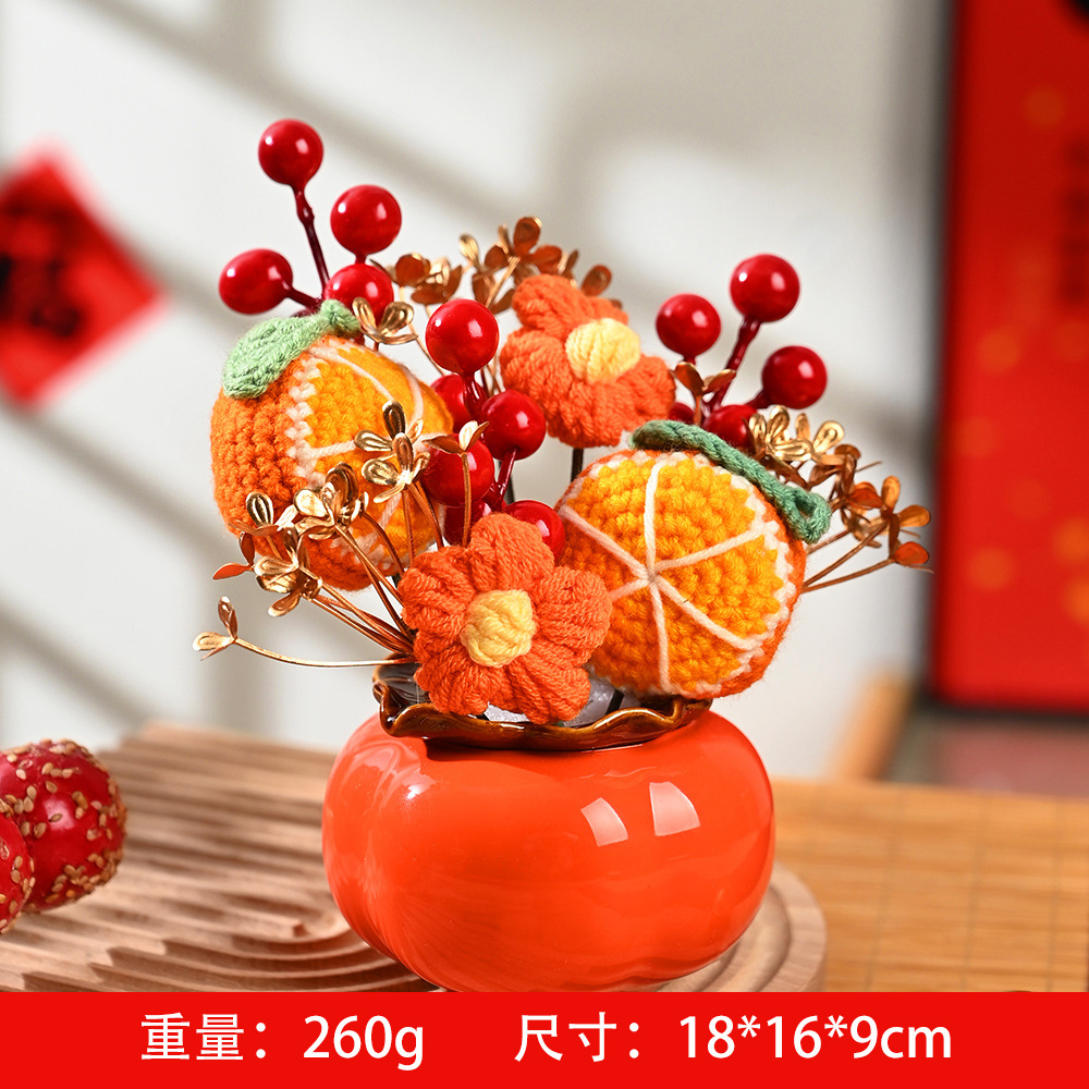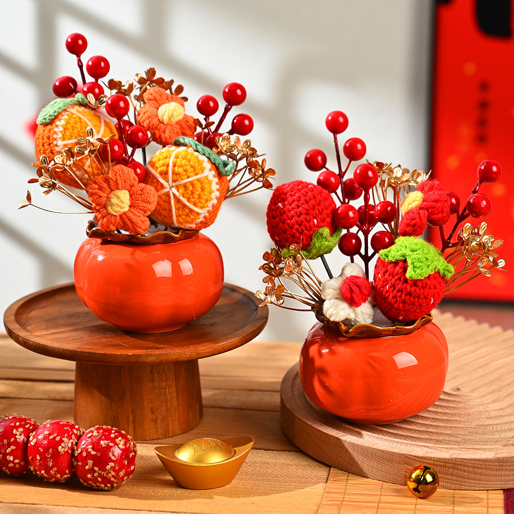 新年年货乔迁之喜针织毛线柿柿如意陶瓷摆件客厅结婚布置礼物批发