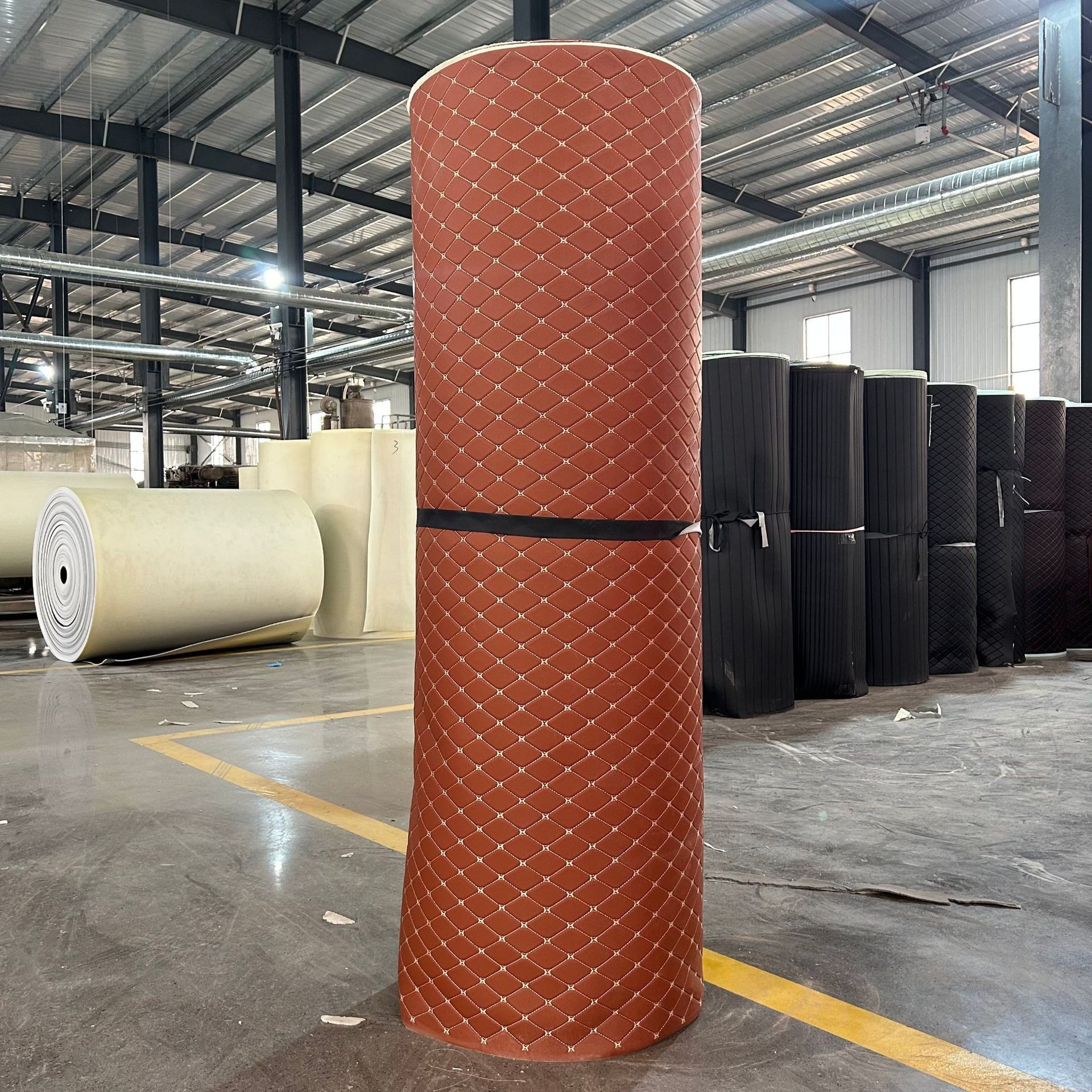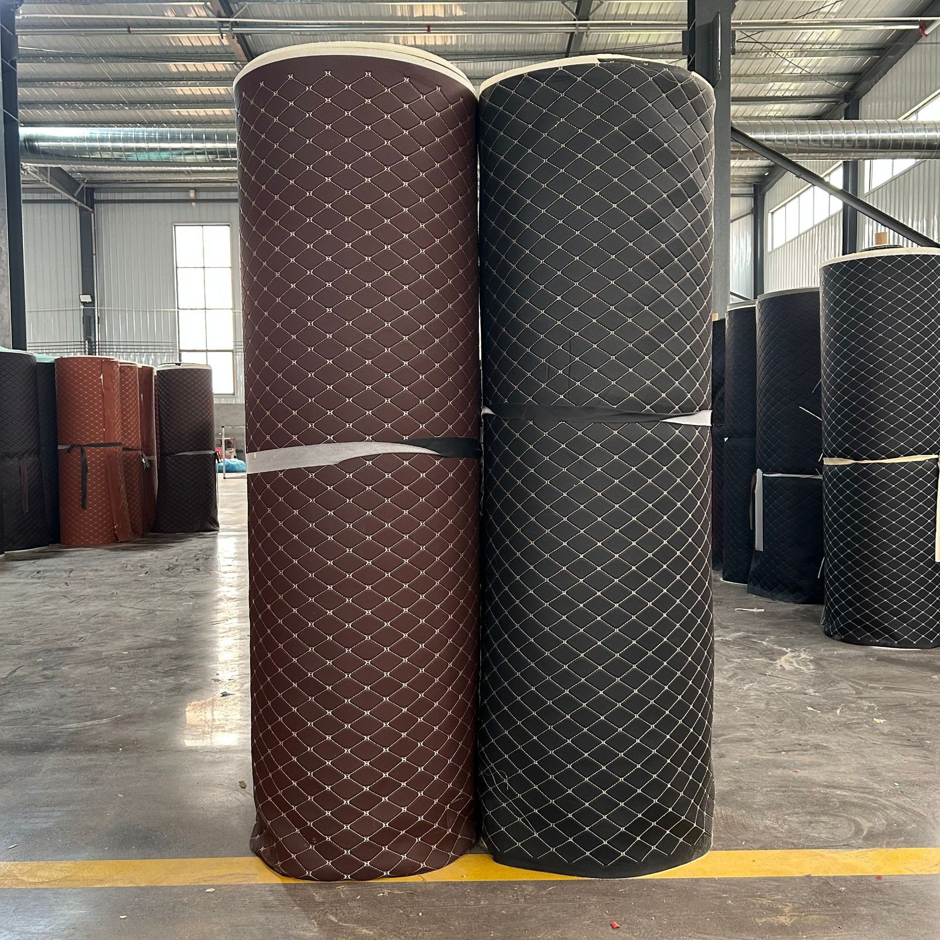 皮革卷材汽车脚垫复合海绵绗绣花型货车卧铺软包原材料座椅