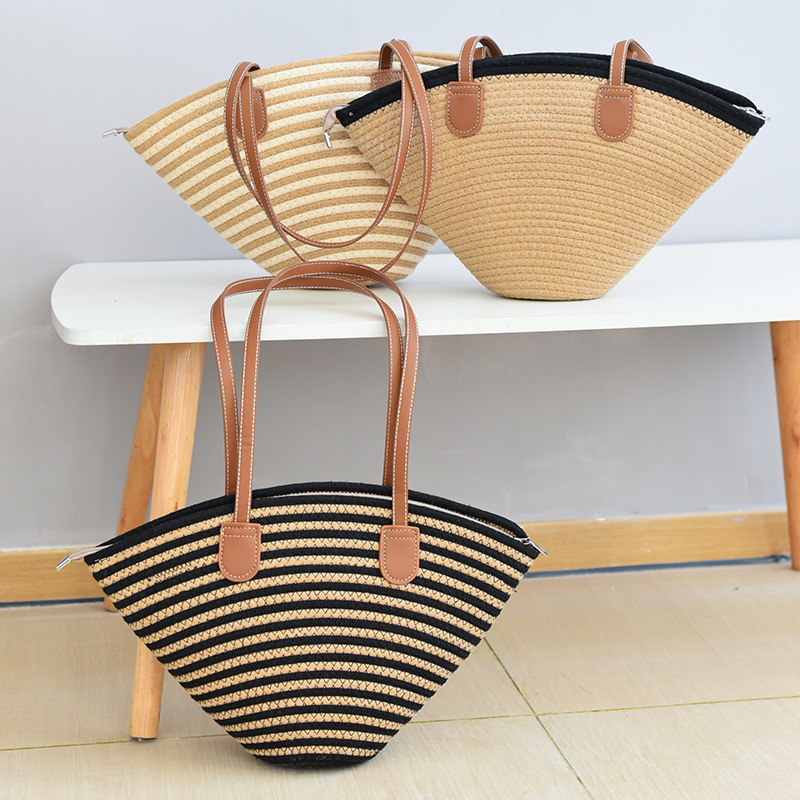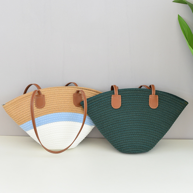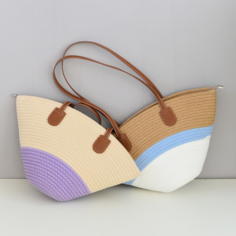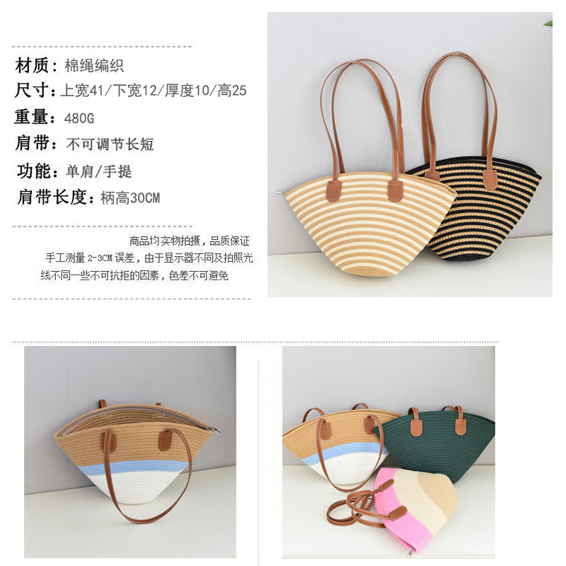 夏季百搭棉线编织包INS单肩包通勤休闲高级洋气沙滩包旅游度假包
