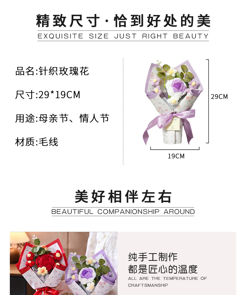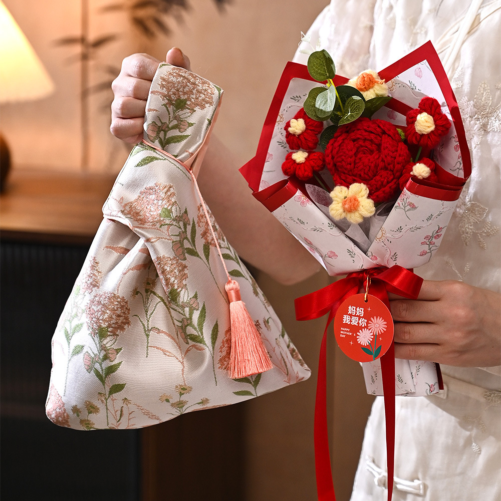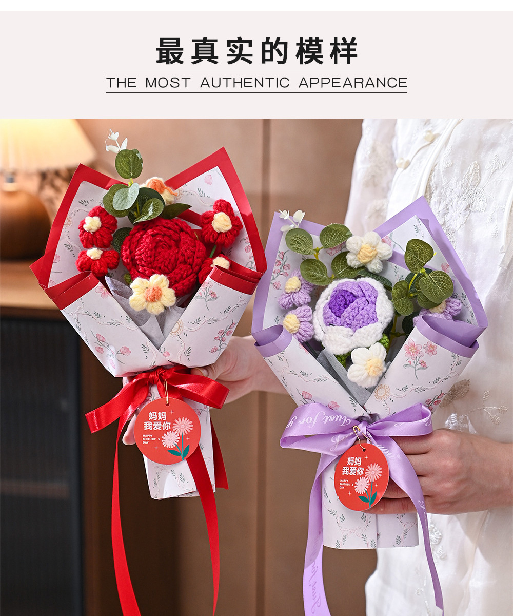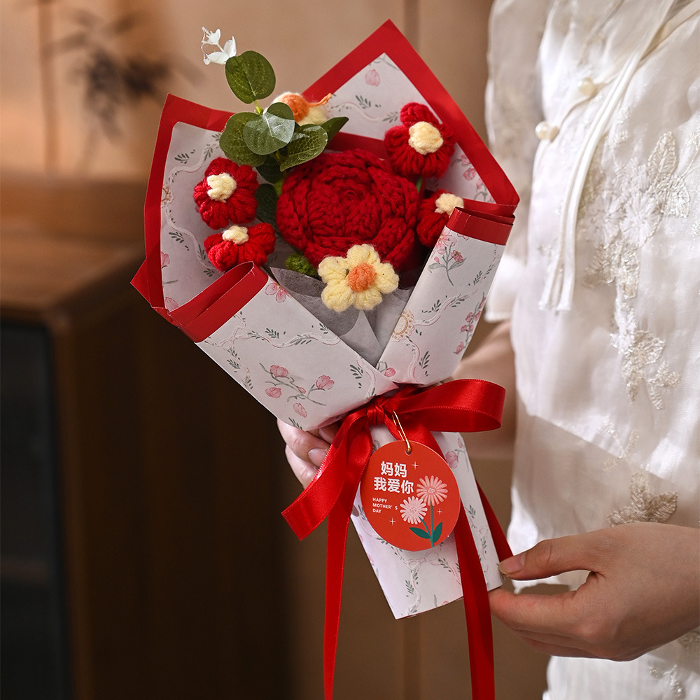 母亲节礼物毕业季针织玫瑰手捧花束仿真花创意生日礼物伴手礼批发