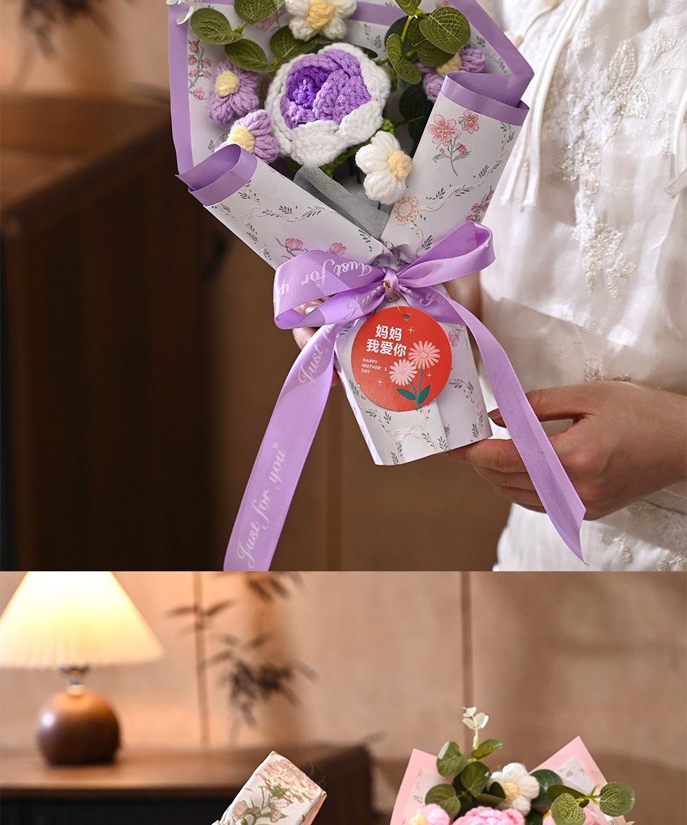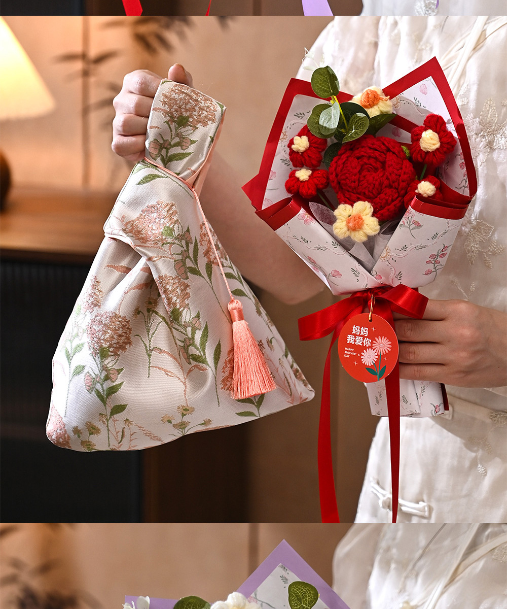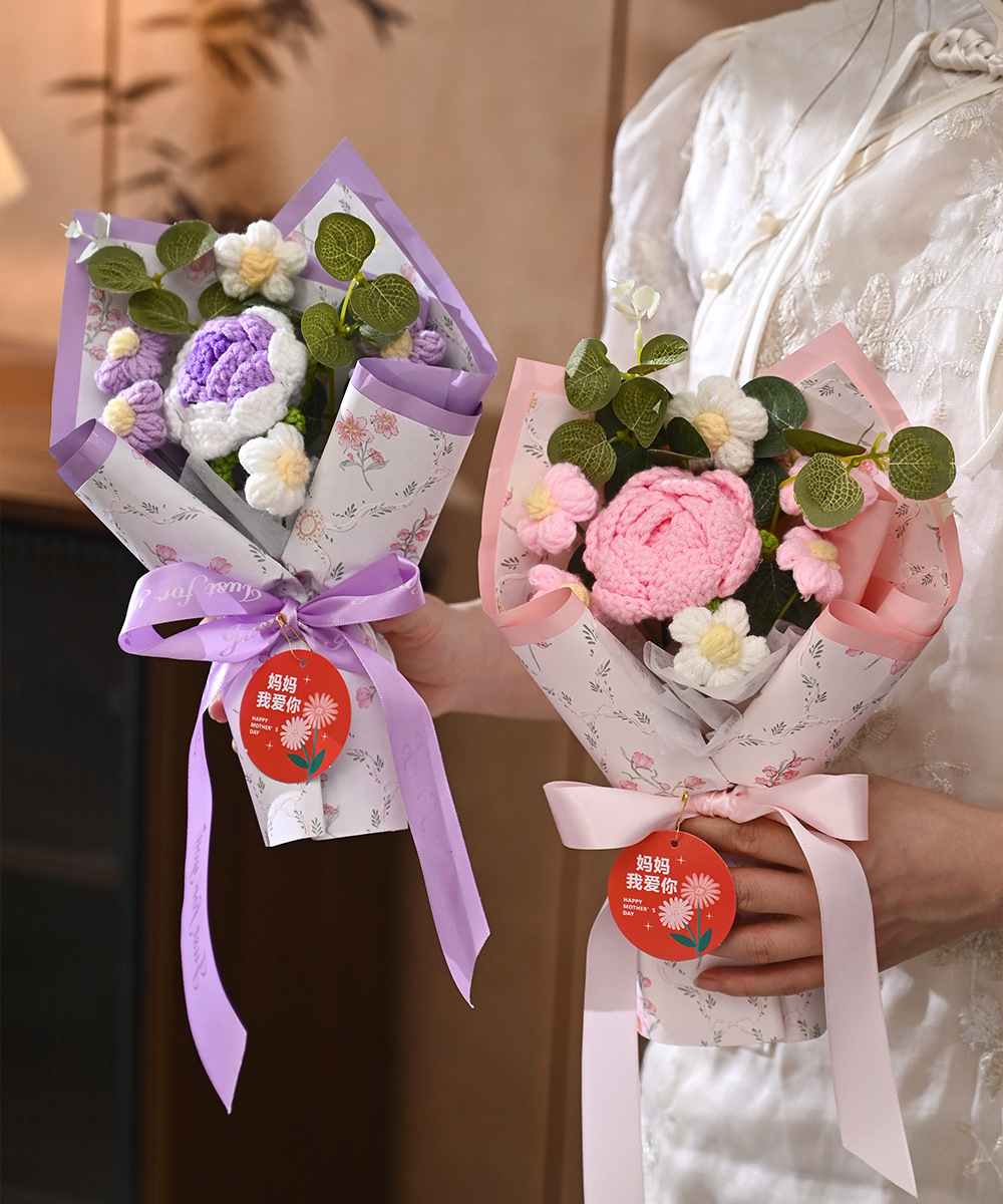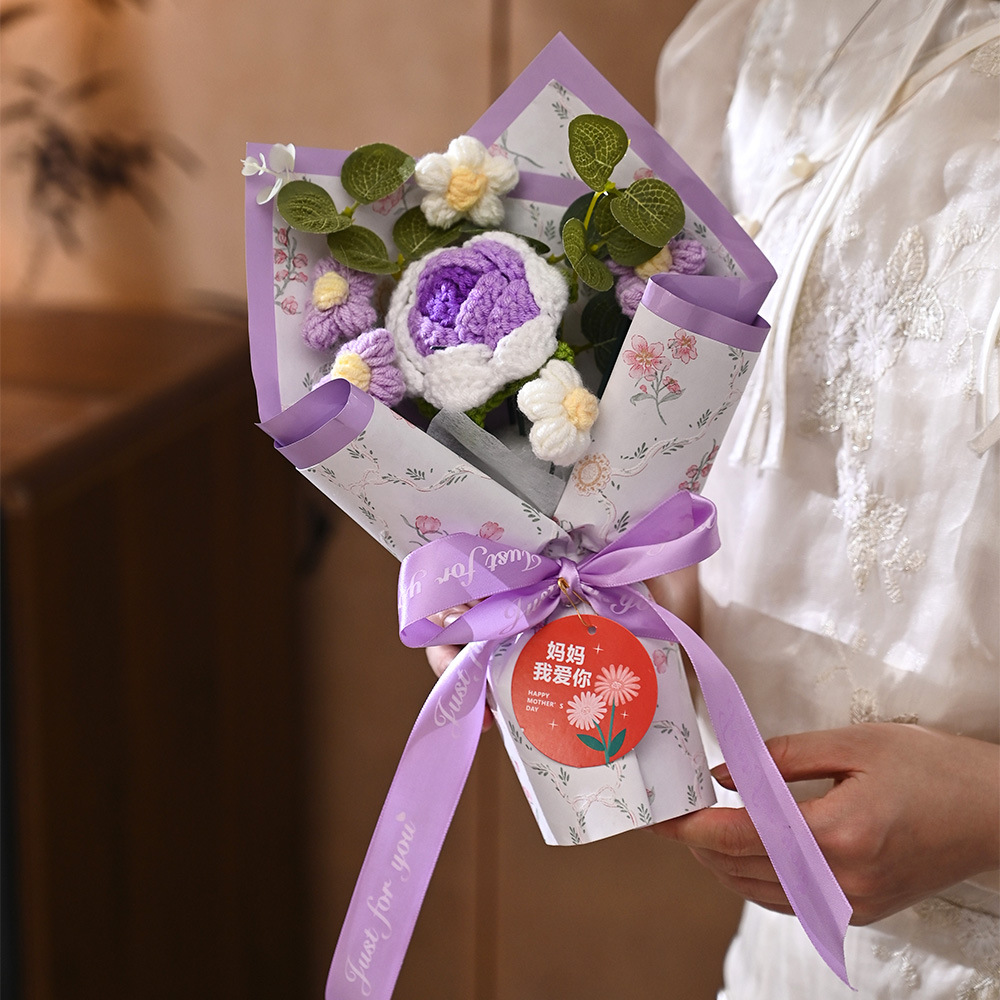 母亲节礼物毕业季针织玫瑰手捧花束仿真花创意生日礼物伴手礼批发