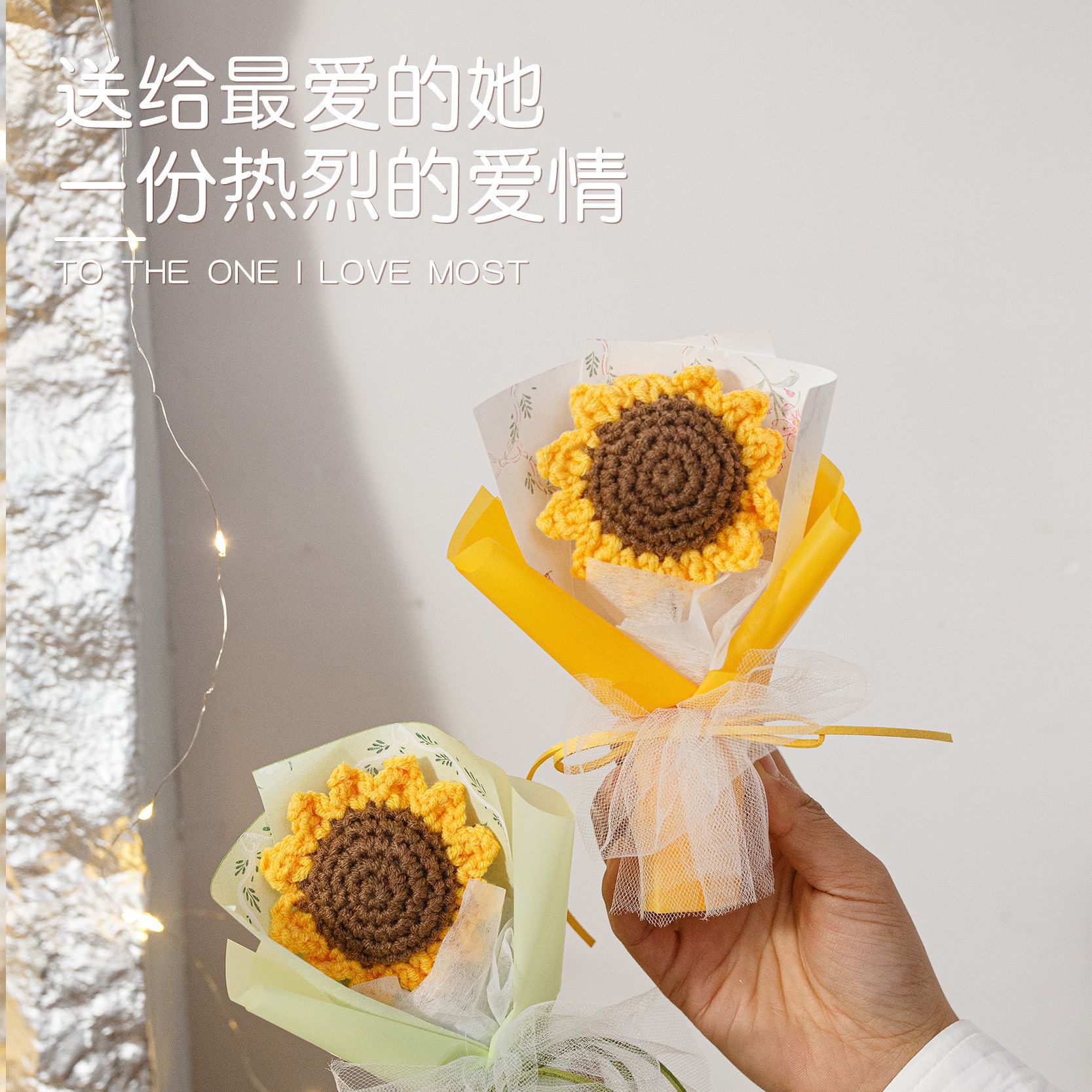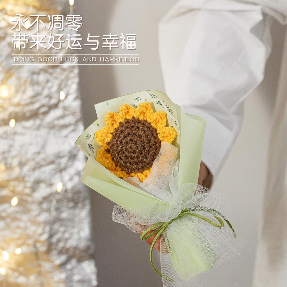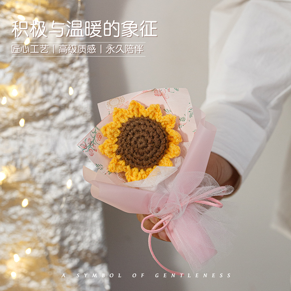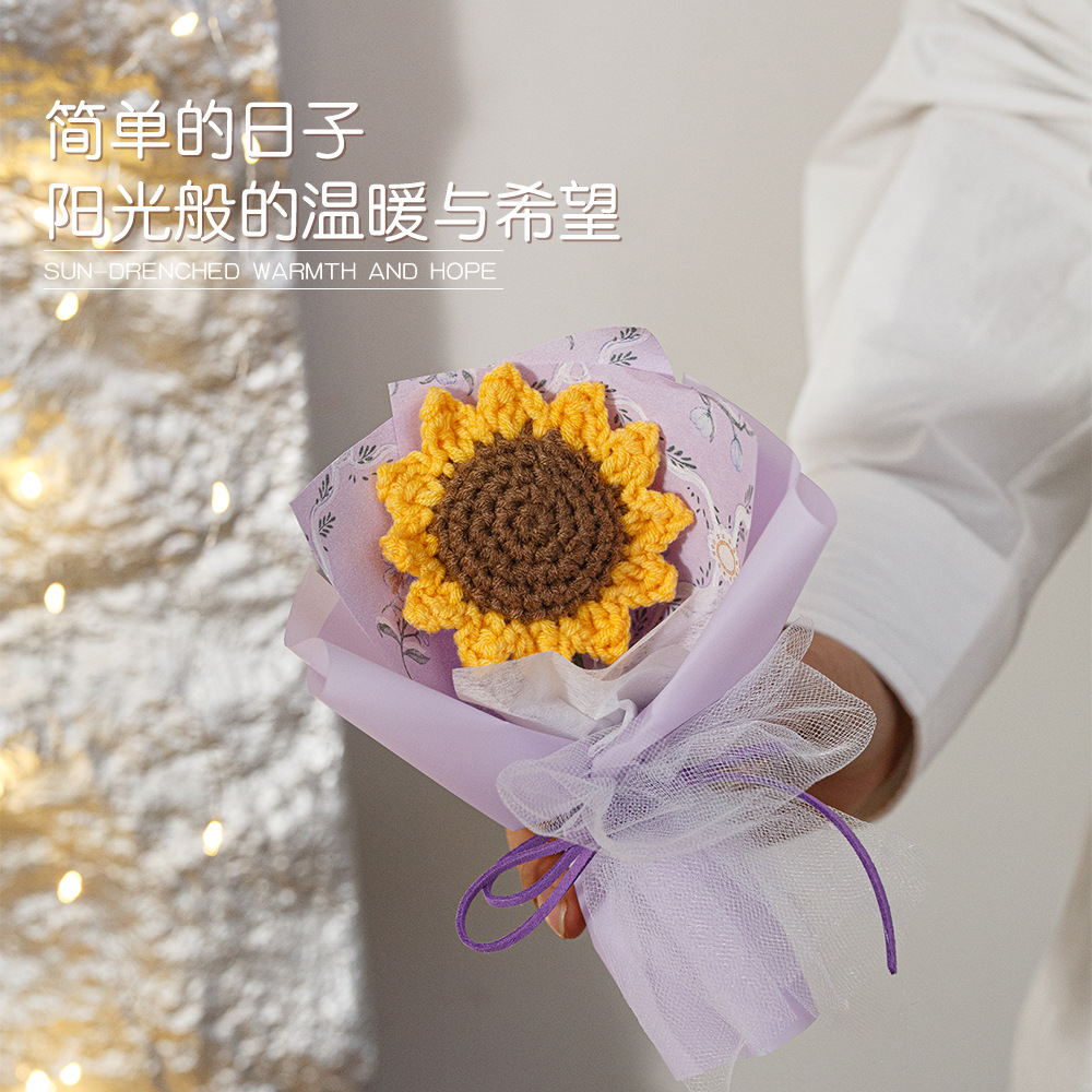 伴手礼假花新款高级感仿太阳花针织花束配饰跨境批发小礼品仿真花