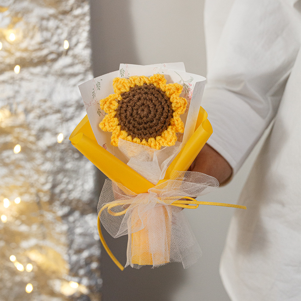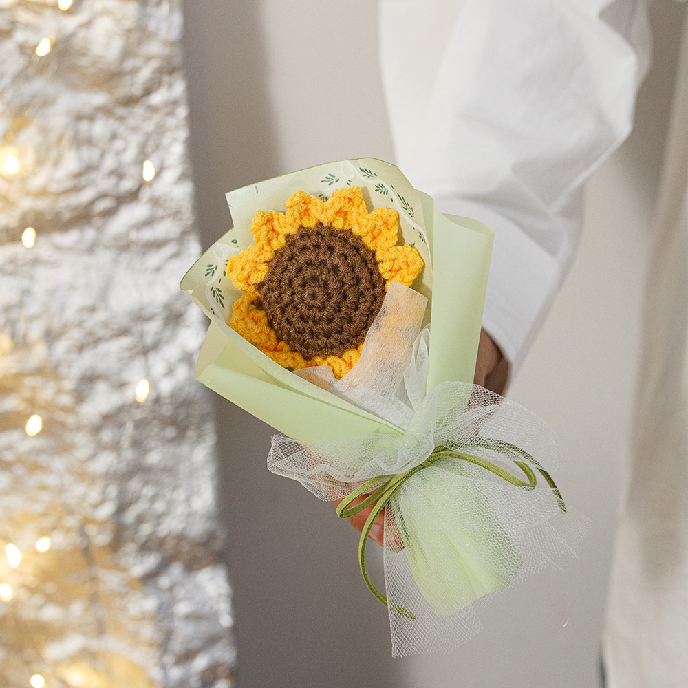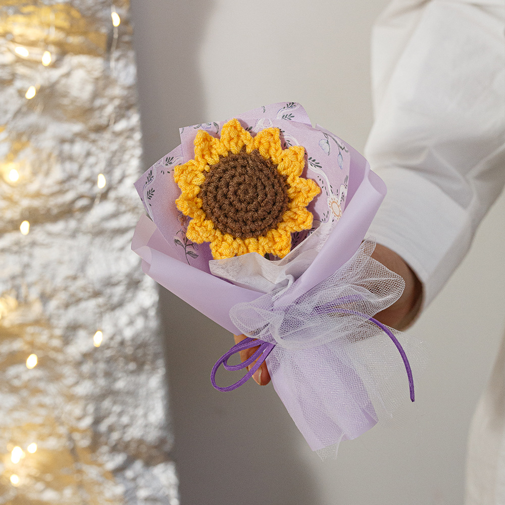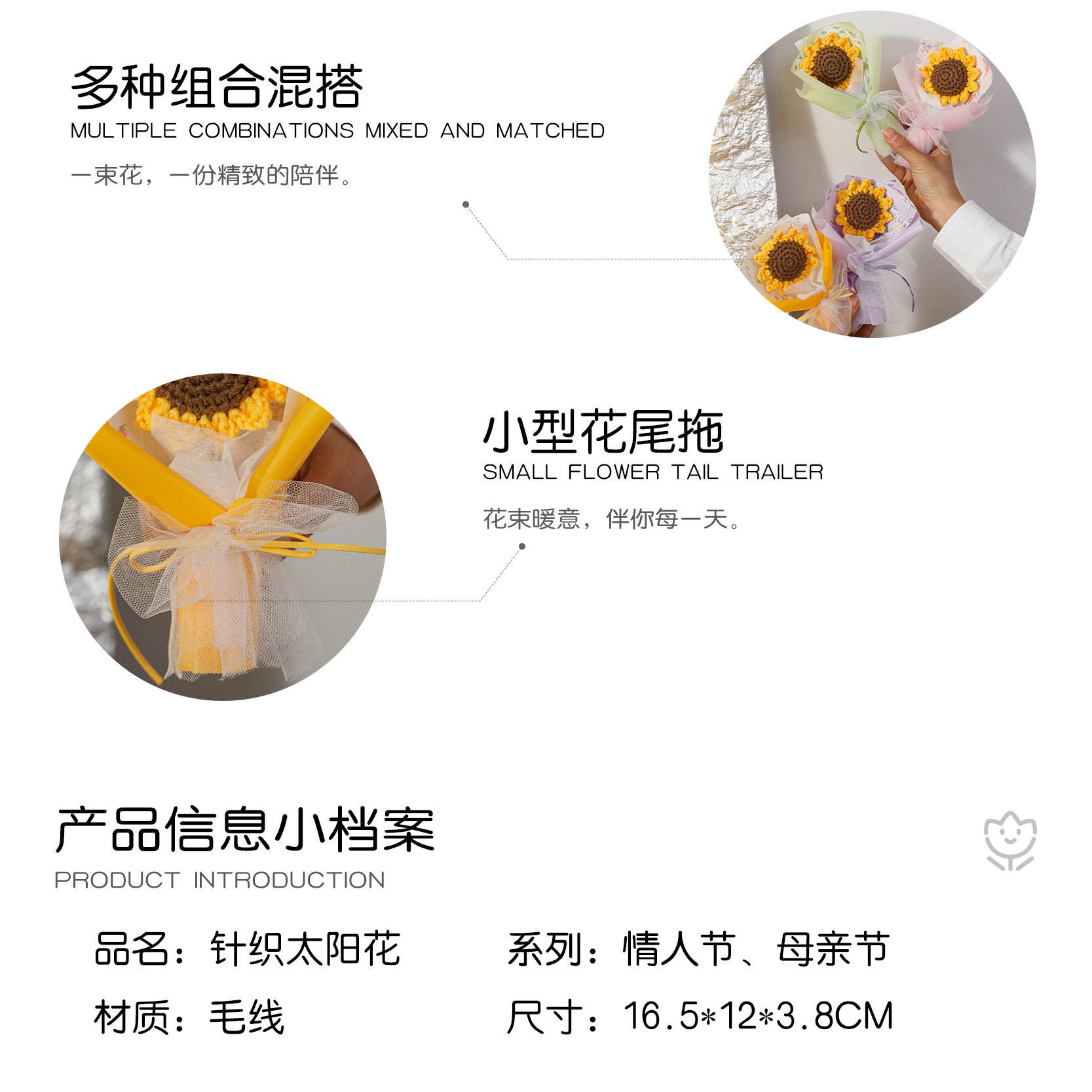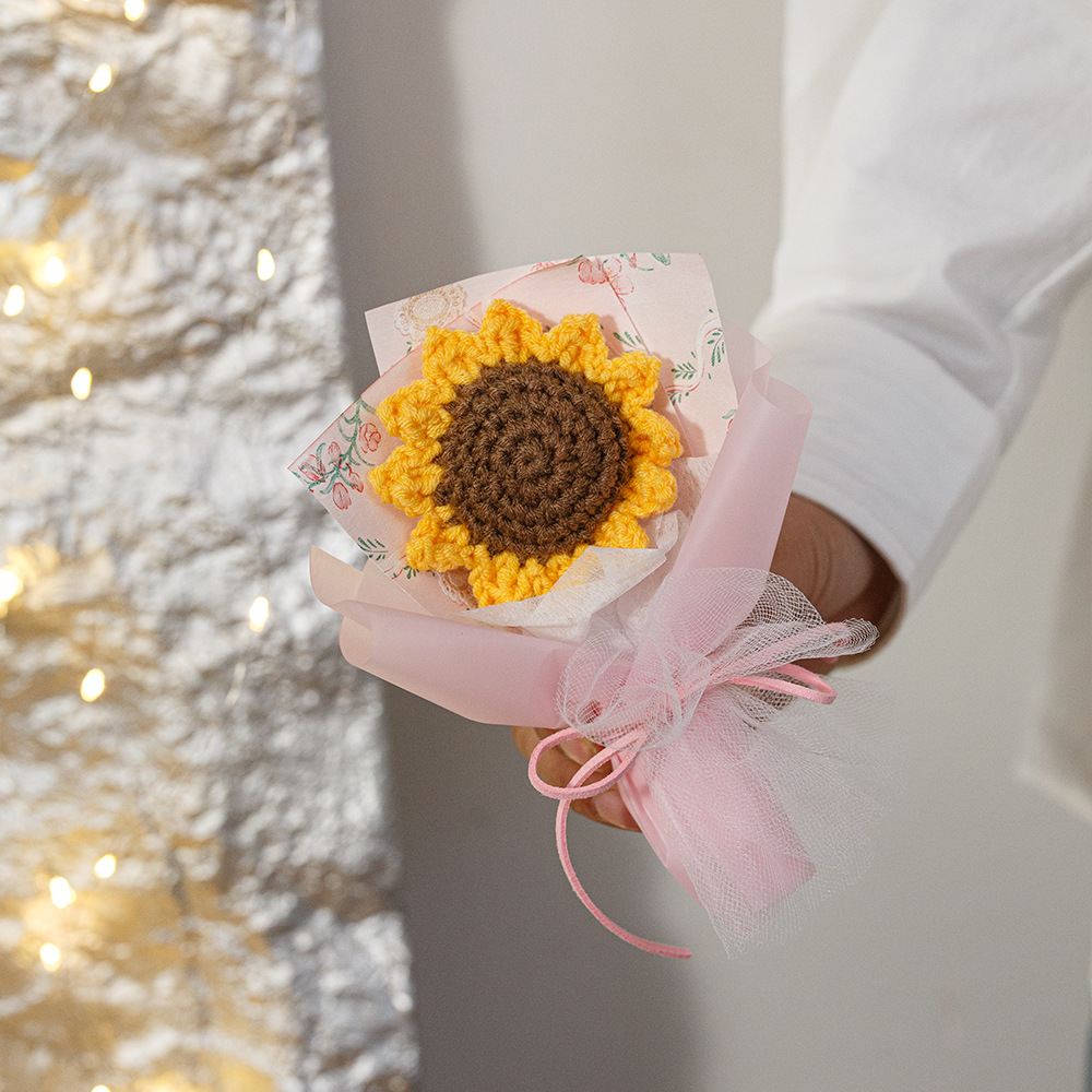 伴手礼假花新款高级感仿太阳花针织花束配饰跨境批发小礼品仿真花