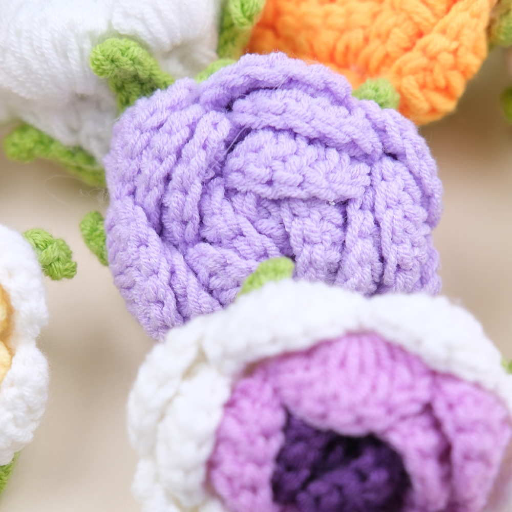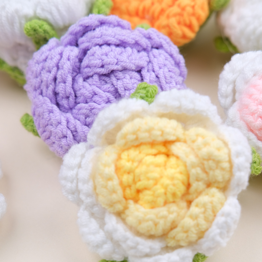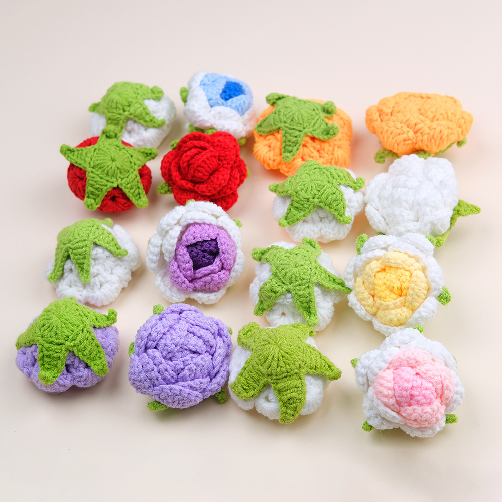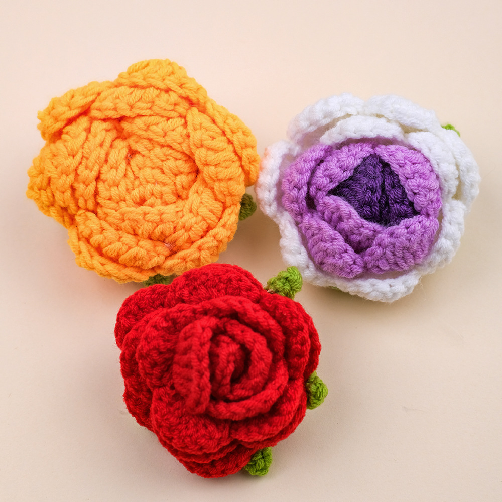 仿真花手工钩织针织花玫瑰花头装饰diy配饰成品跨境厂家批发零售