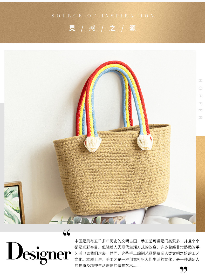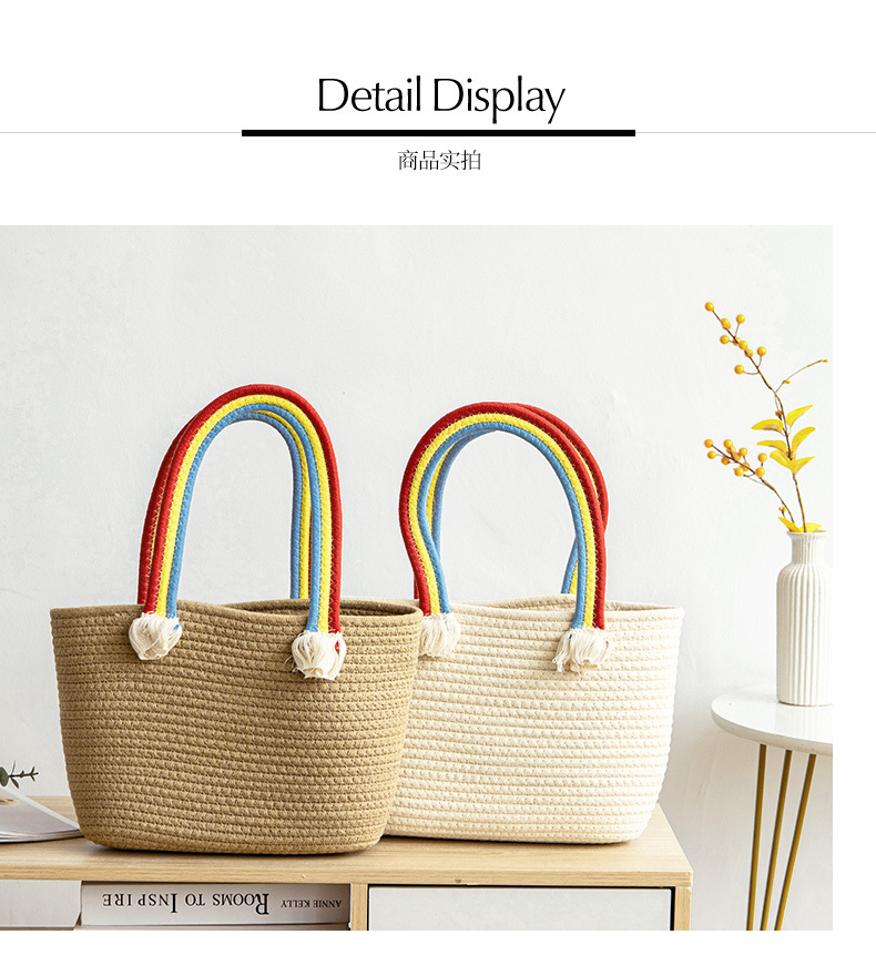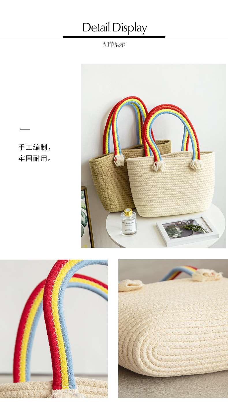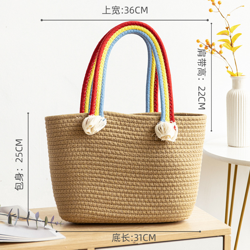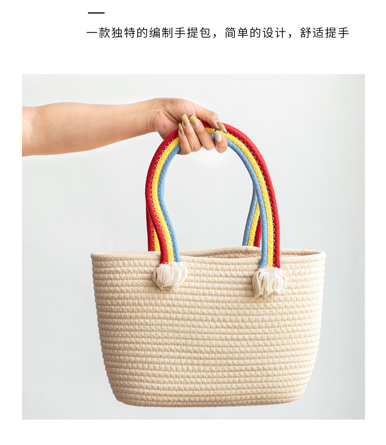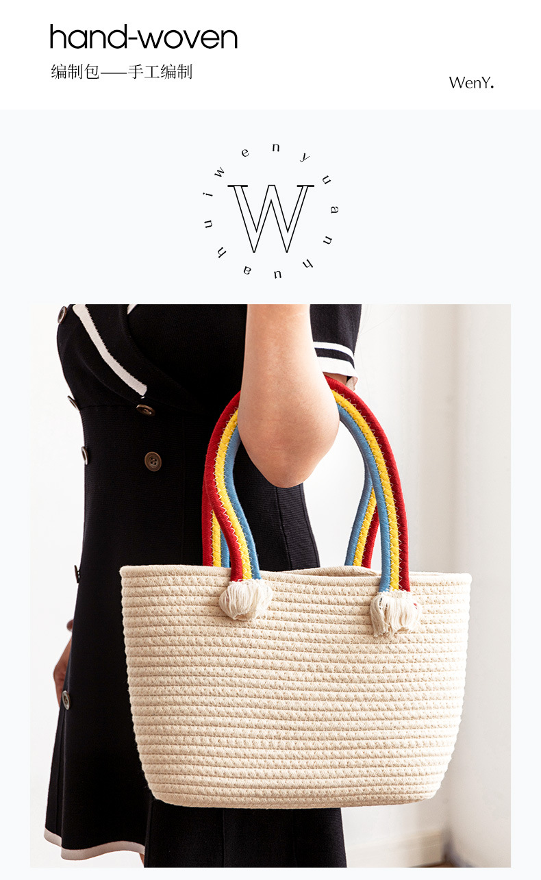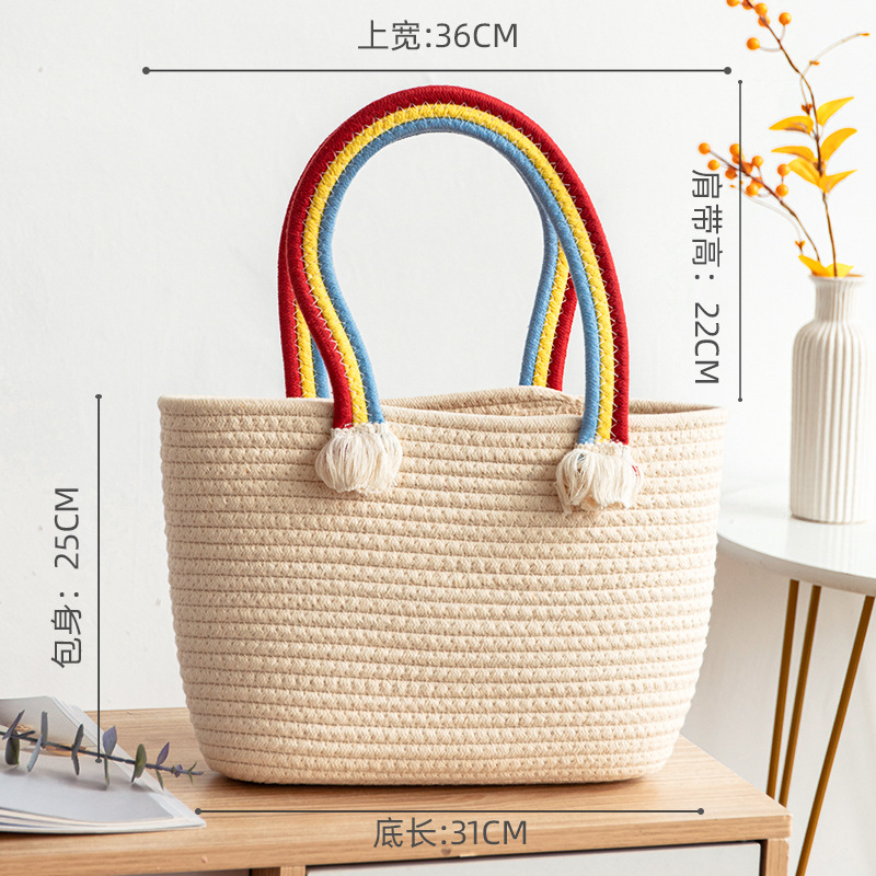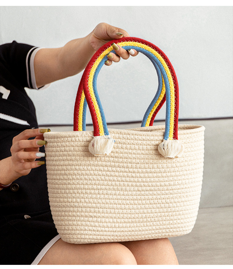 手拎包新款棉线编织包草编包沙滩流行流苏彩虹包批发纯色可爱女包