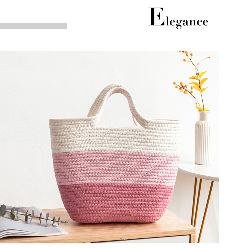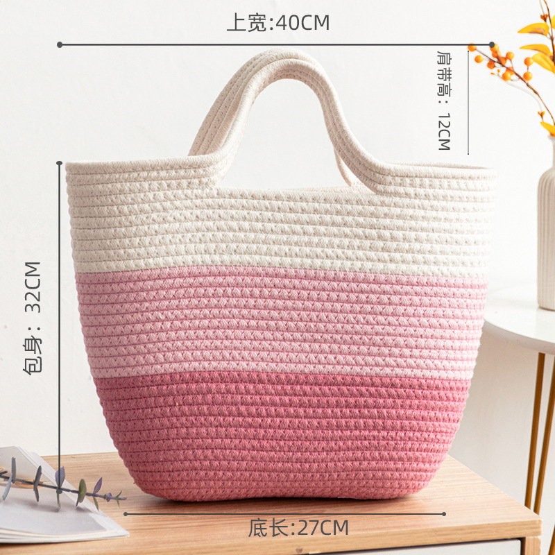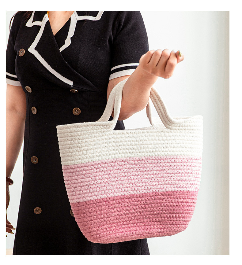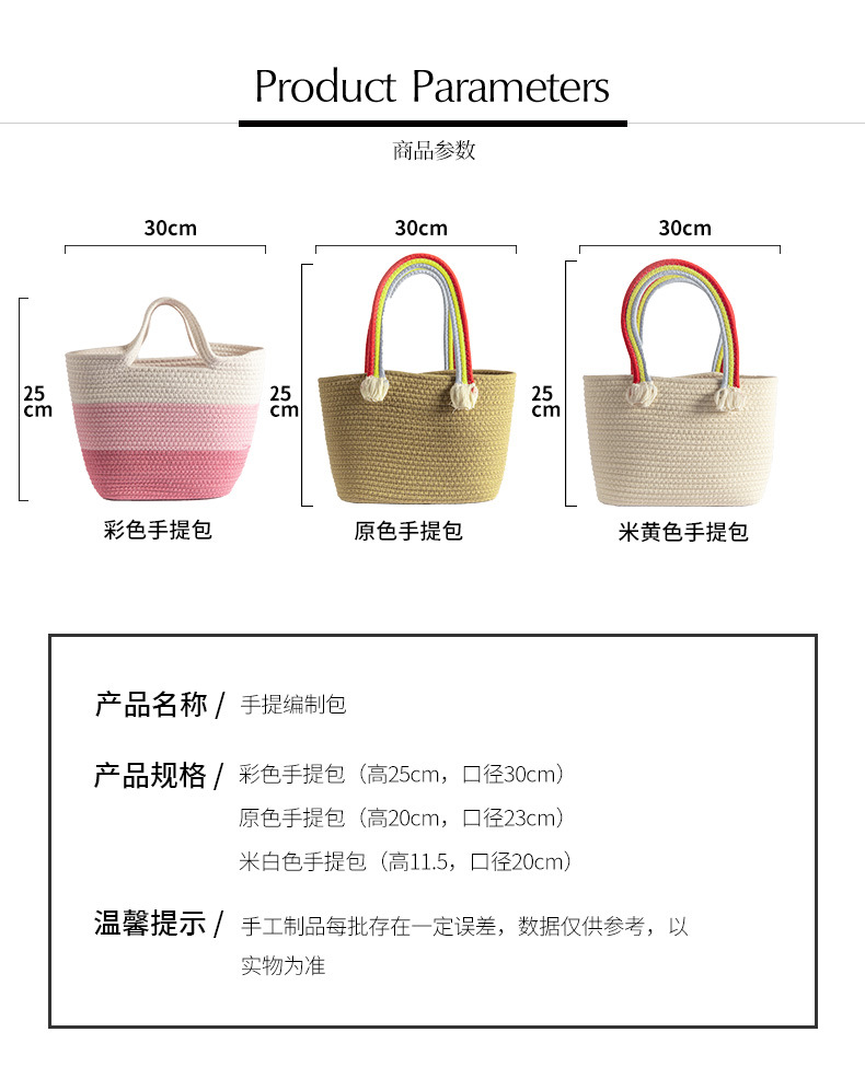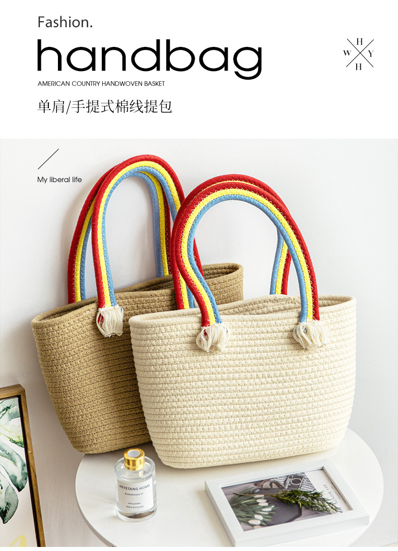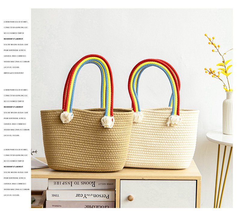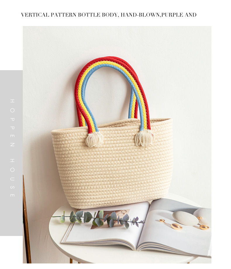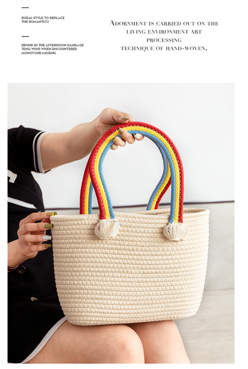 手拎包新款棉线编织包草编包沙滩流行流苏彩虹包批发纯色可爱女包