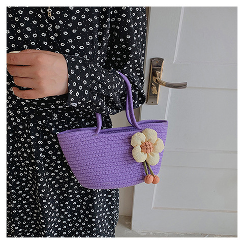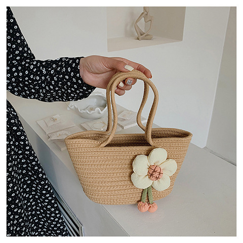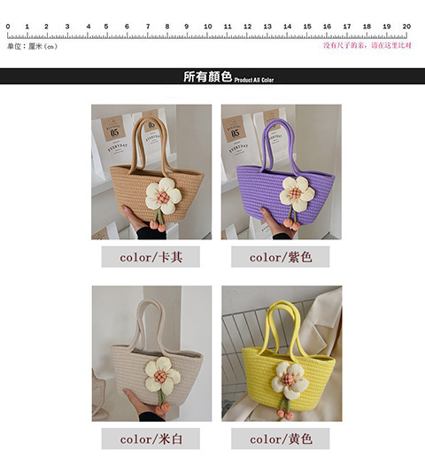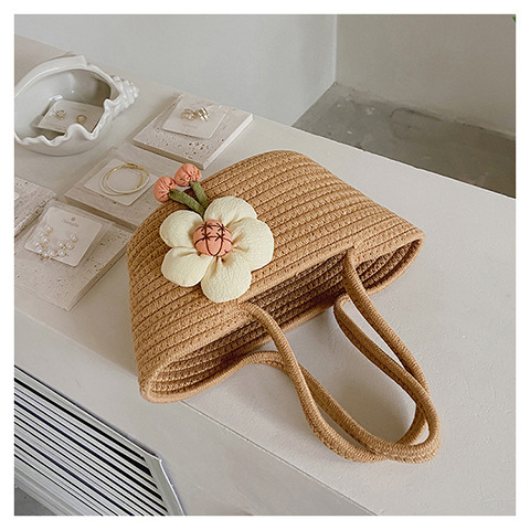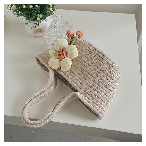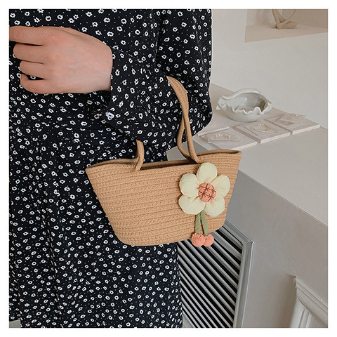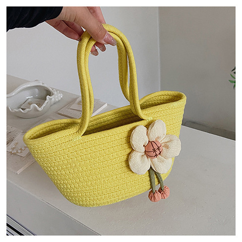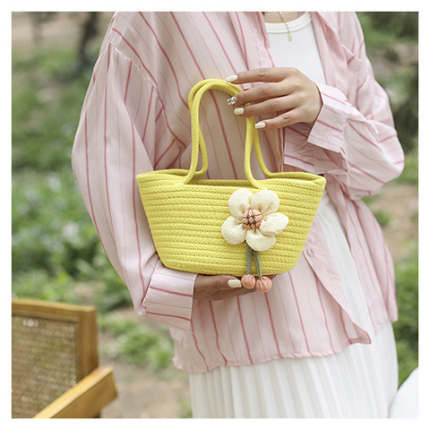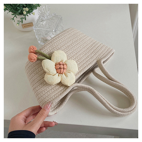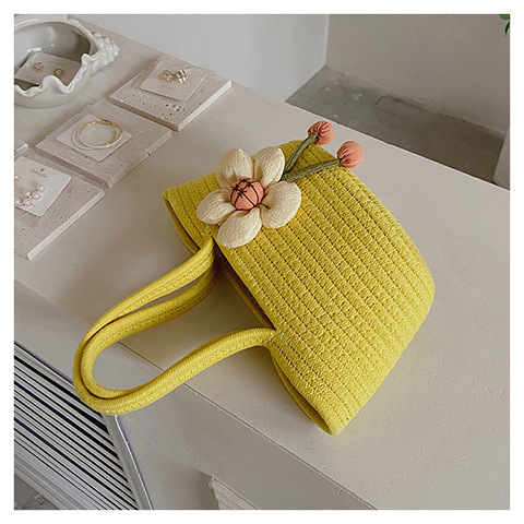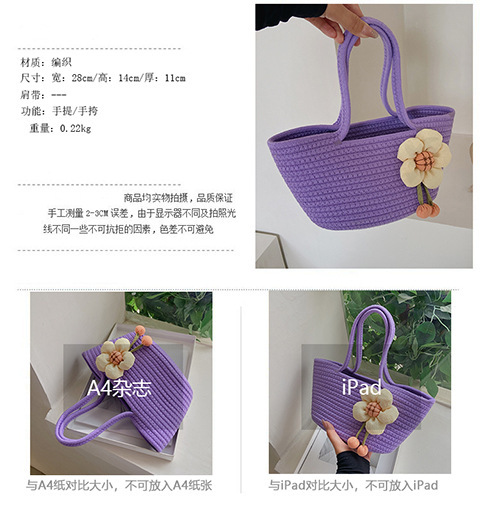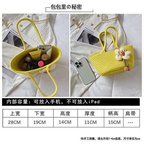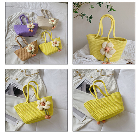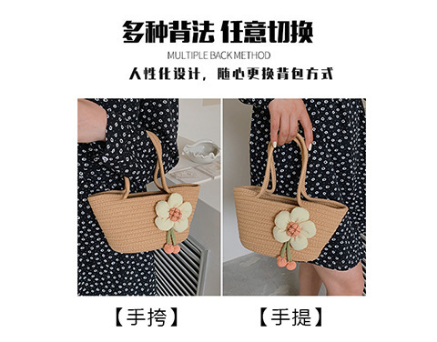 女包休闲棉线肩包草编包可爱花朵斜挎手提包编织包拎包度假沙滩包