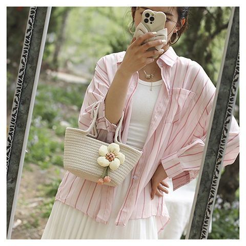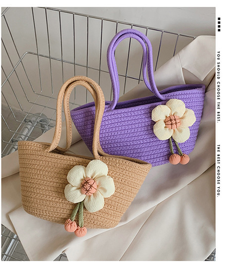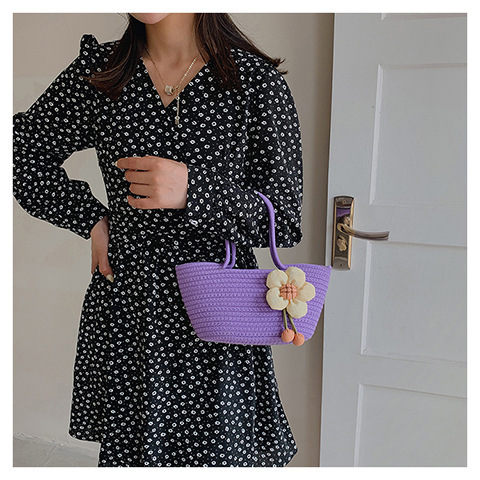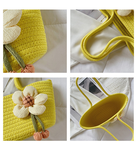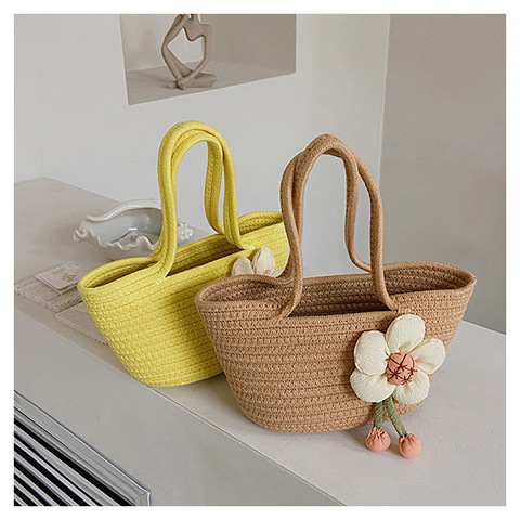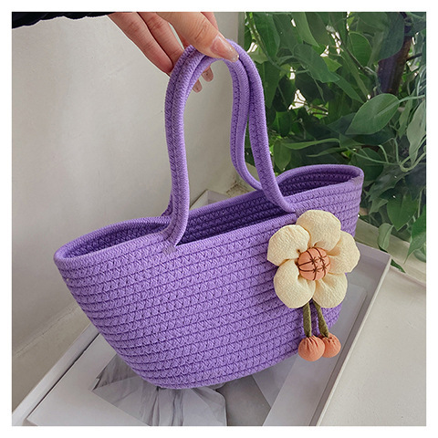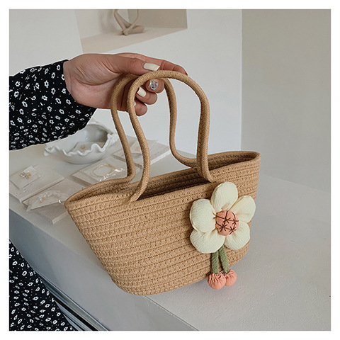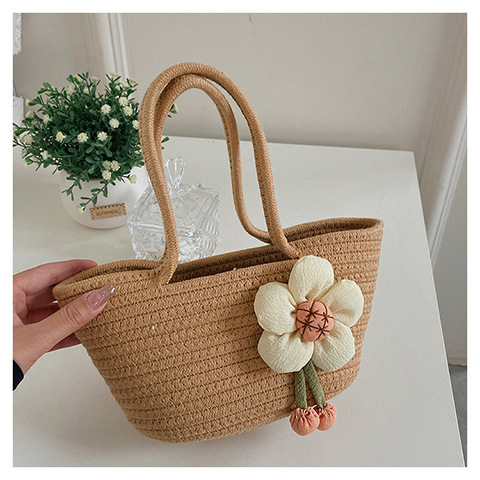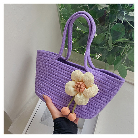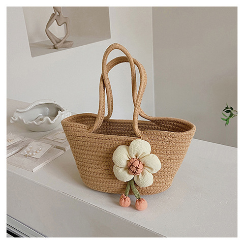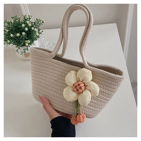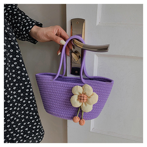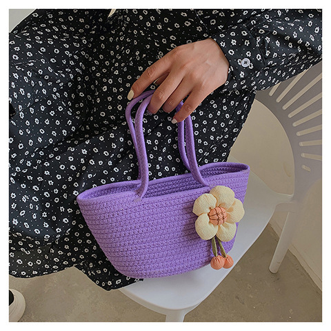 女包休闲棉线肩包草编包可爱花朵斜挎手提包编织包拎包度假沙滩包