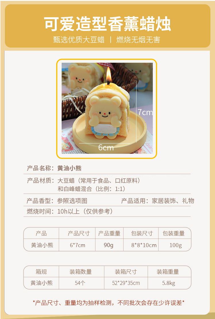 黄油小熊芝士土司香薰蜡烛礼盒生日礼物女生闺蜜情侣物伴手礼